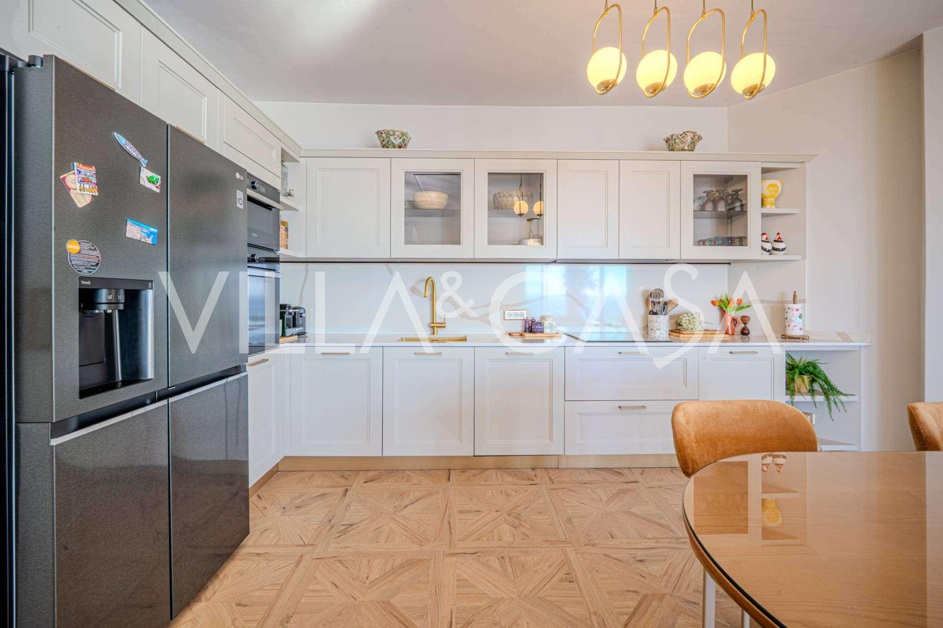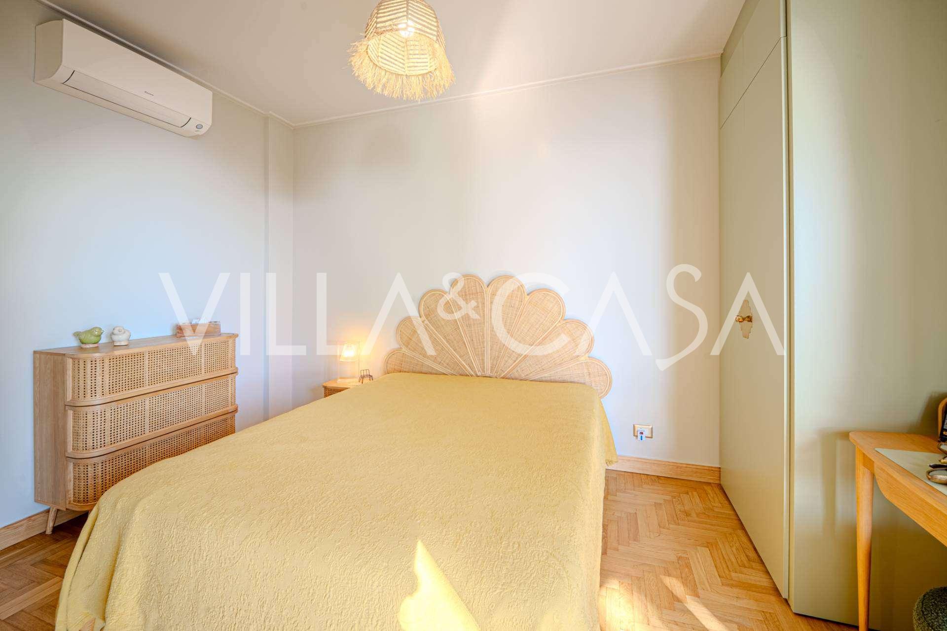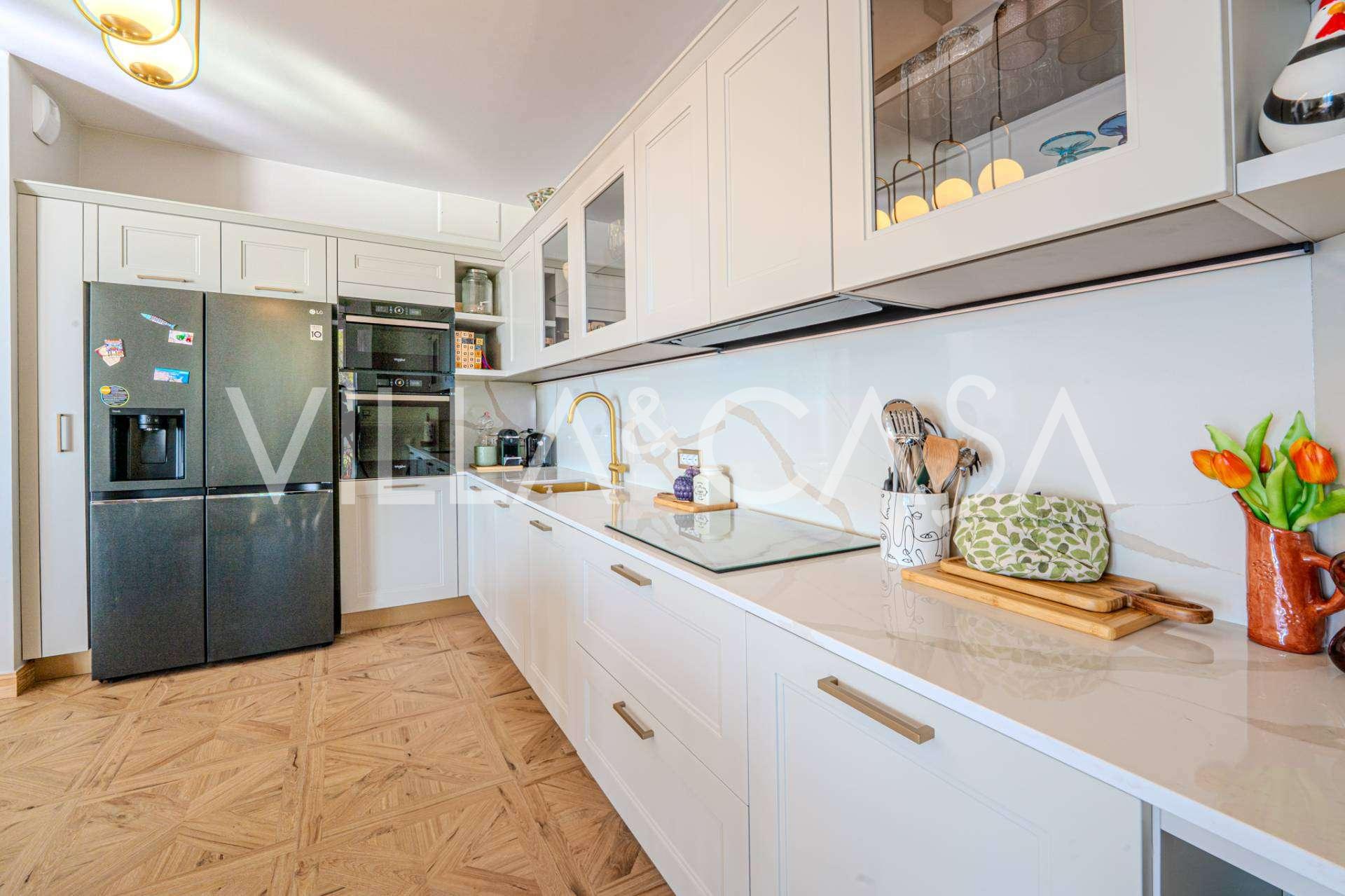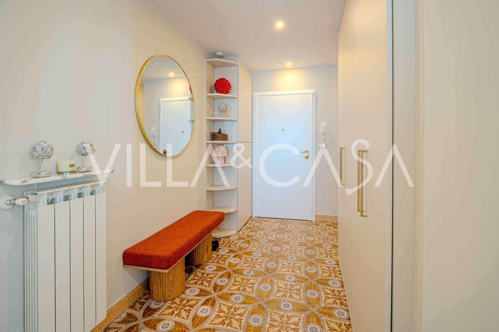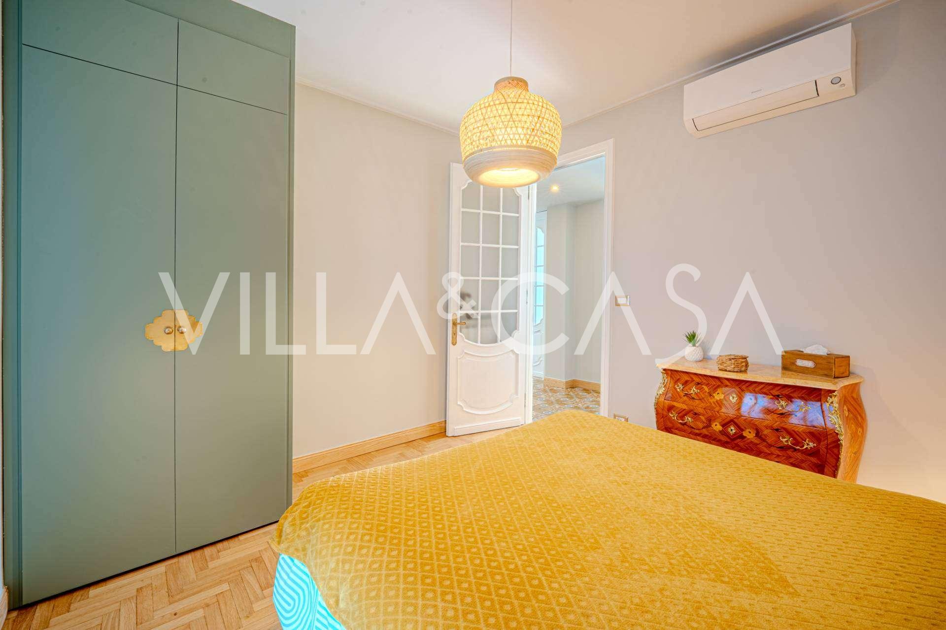 The apartment has been fully renovated: plumbing and electrical systems have been completely replaced. The interior is equipped with new designer furniture and modern premium appliances, with air conditioning, alarm system, and individual heating in every room.