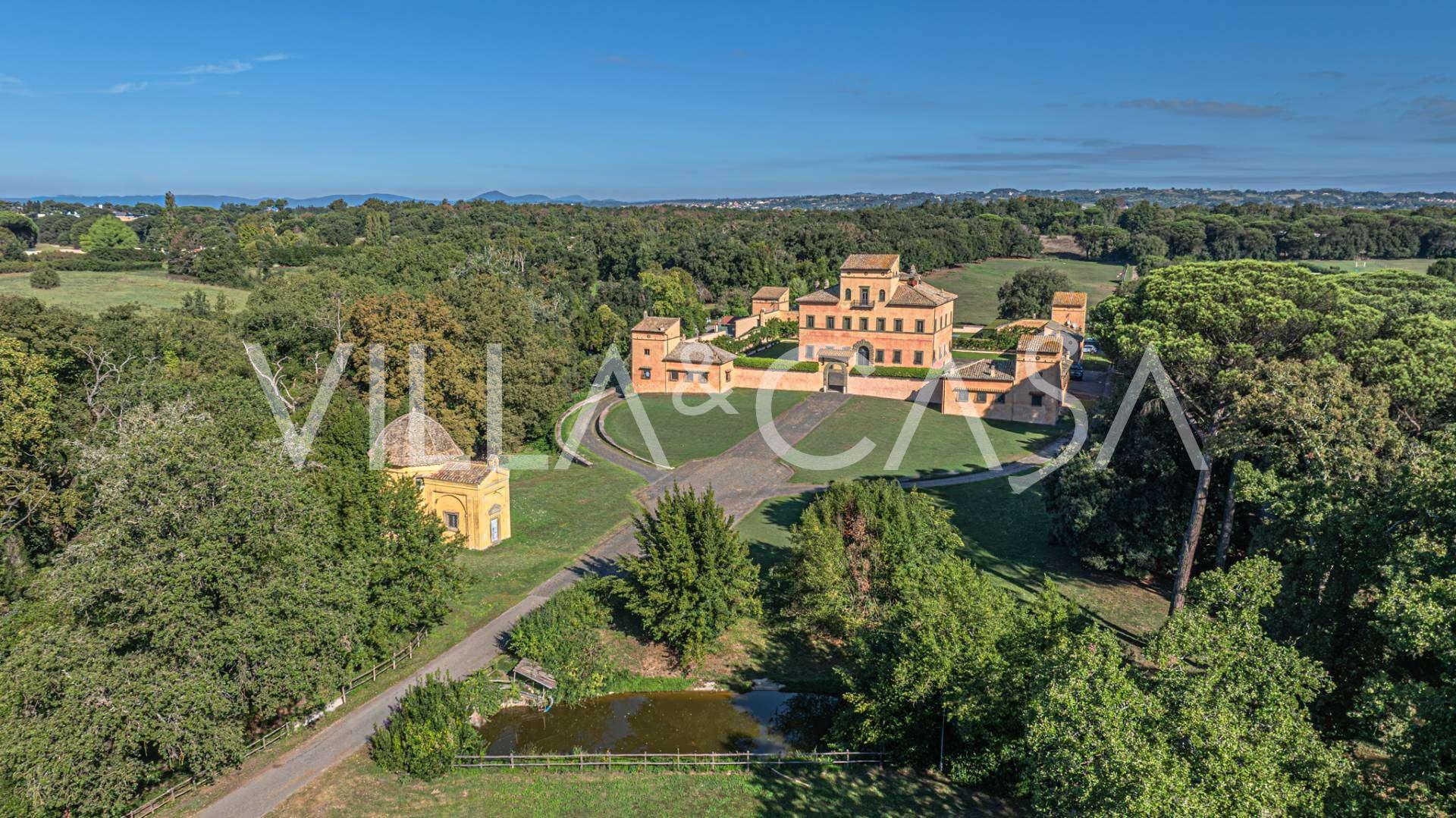 Located just twenty kilometers north of Rome, the castle is surrounded by thirty hectares of well-maintained meadows and ancient forests, creating an atmosphere of complete seclusion and harmony with nature. The legendary racehorse Ribot was born here. The equestrian facilities meet the highest international standards: two stables with twenty-three and twenty-five stalls are equipped with tack rooms, grooming areas, and cozy apartments for staff. The grounds also feature an indoor arena, a training area, a covered carousel, and an open field for training and competitions. The castle is adjacent to one of the most prestigious golf clubs in Europe and has its own helipad. Ancient Etruscan caves located on the estate add a special charm and historical significance to the place.