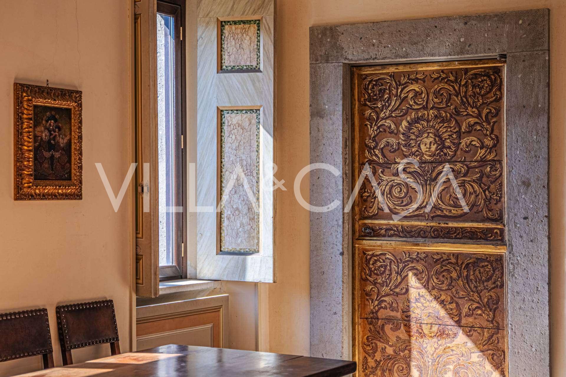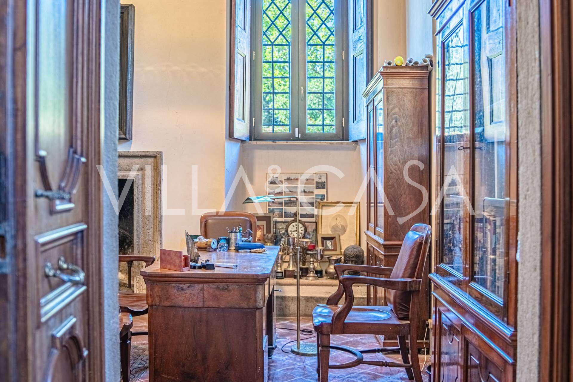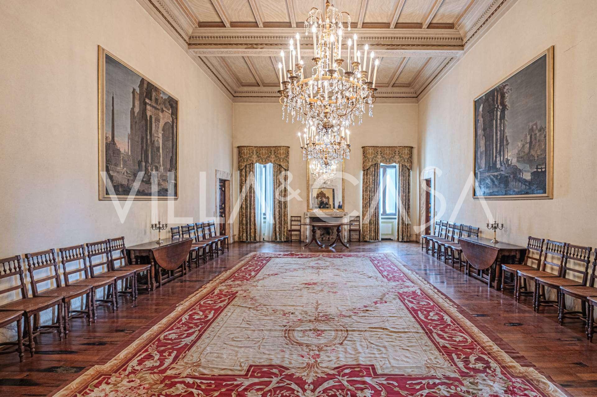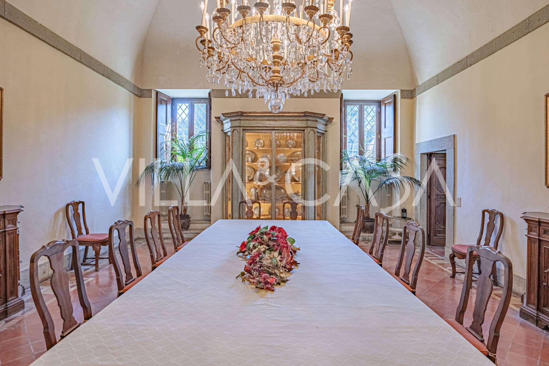 The castle is equipped with an elevator, a security system, a wine cellar, a spacious garage, a fitness room, a main and mini pool, as well as ample parking.