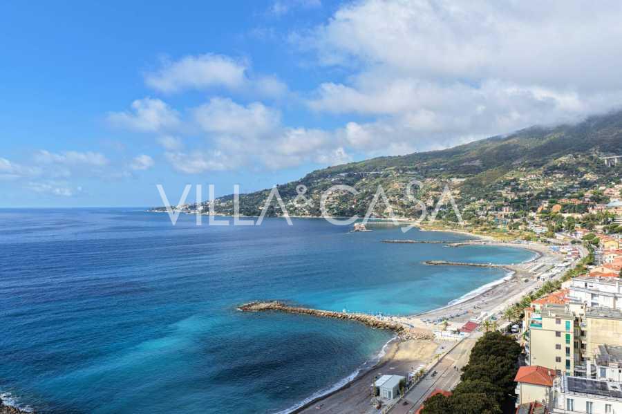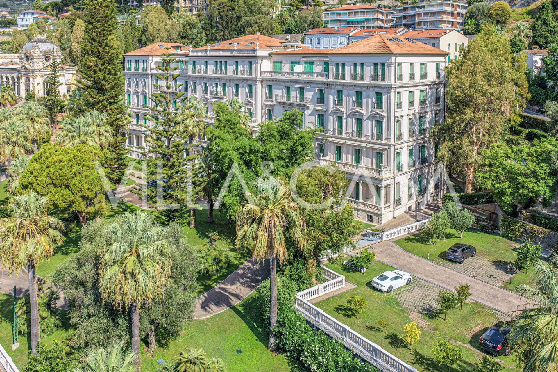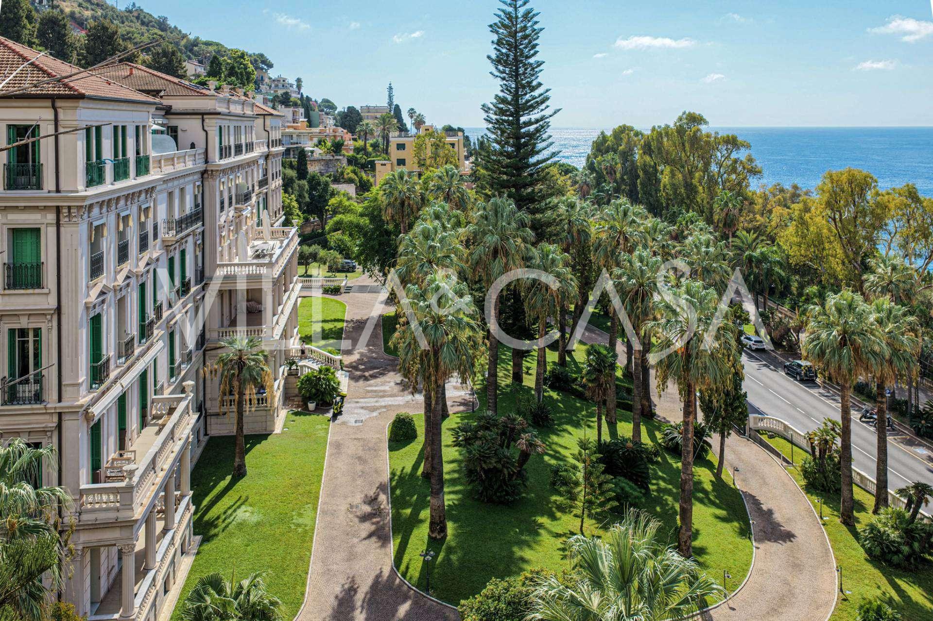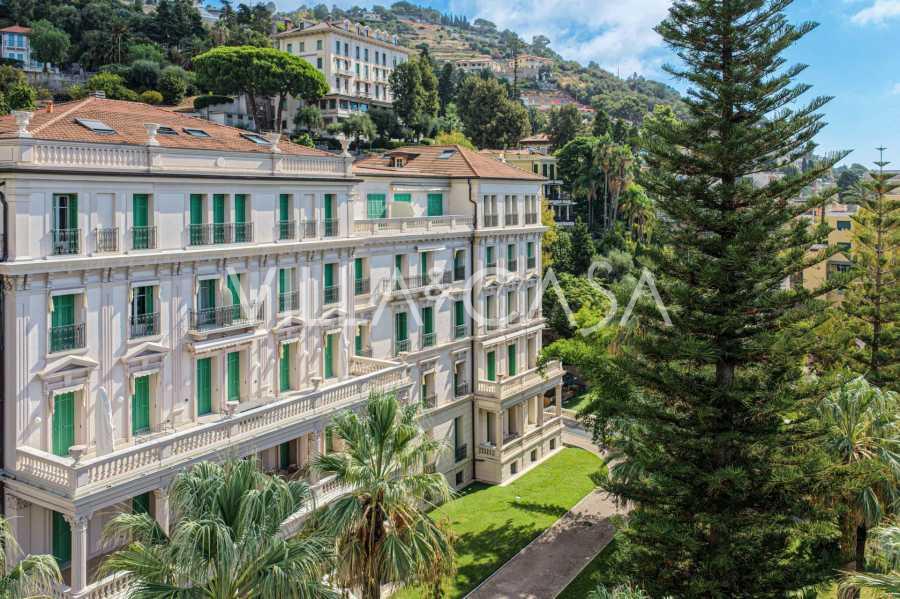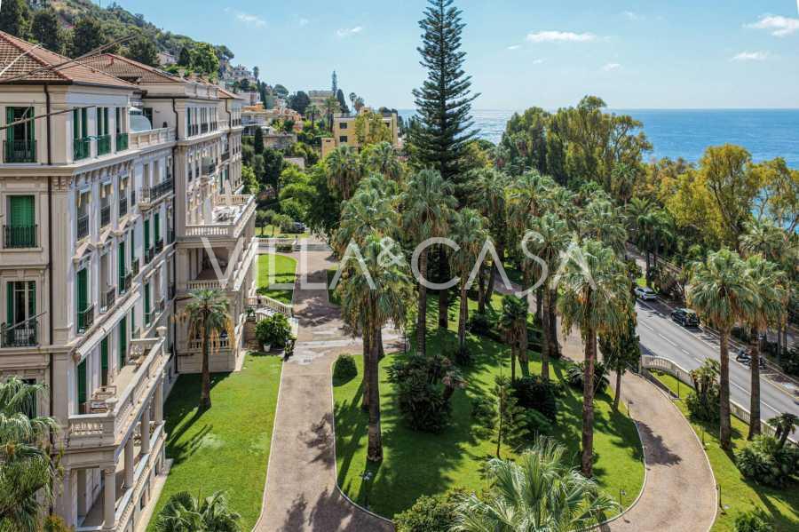 In the heart of charming Ospedaletti, within the renowned residential complex "REGINA," built on the site of the former "Grand Hotel de la Reine" and fully renovated in 2007, a unique penthouse covering 205 m² is offered, embodying impeccable style and comfort.
