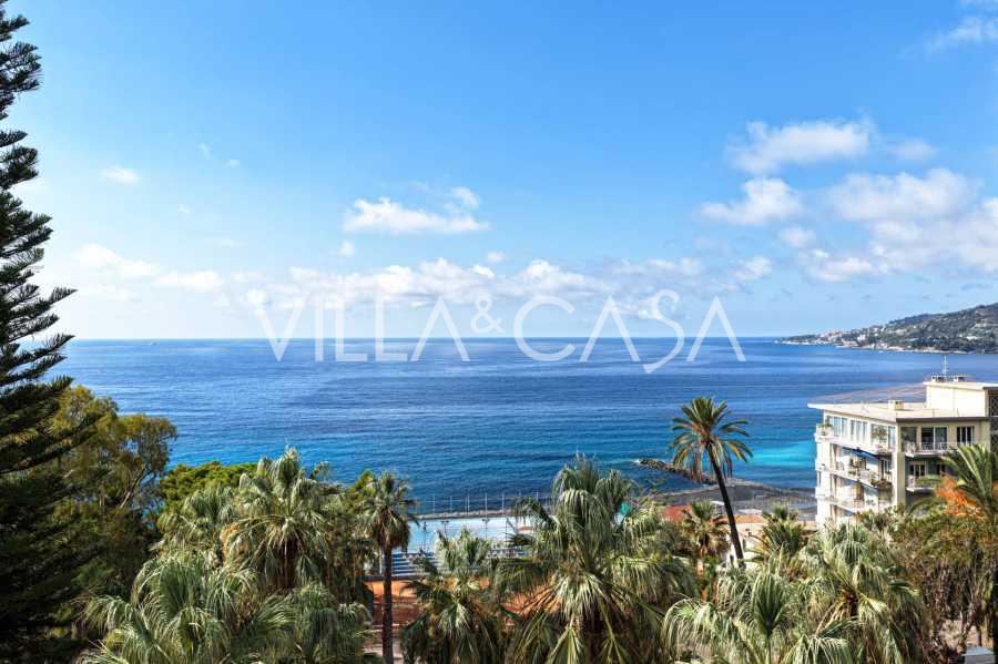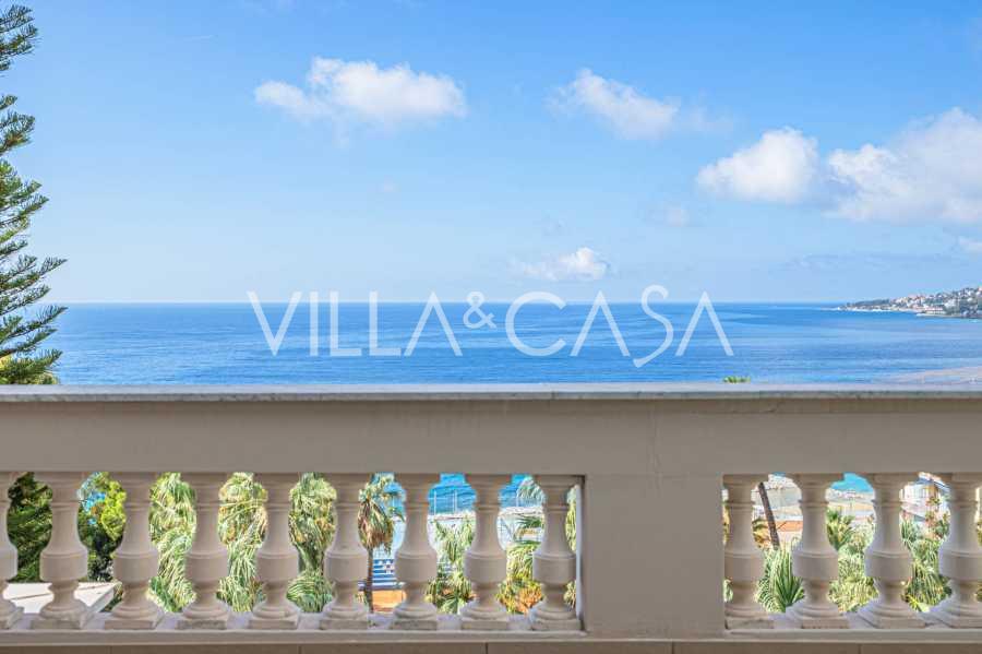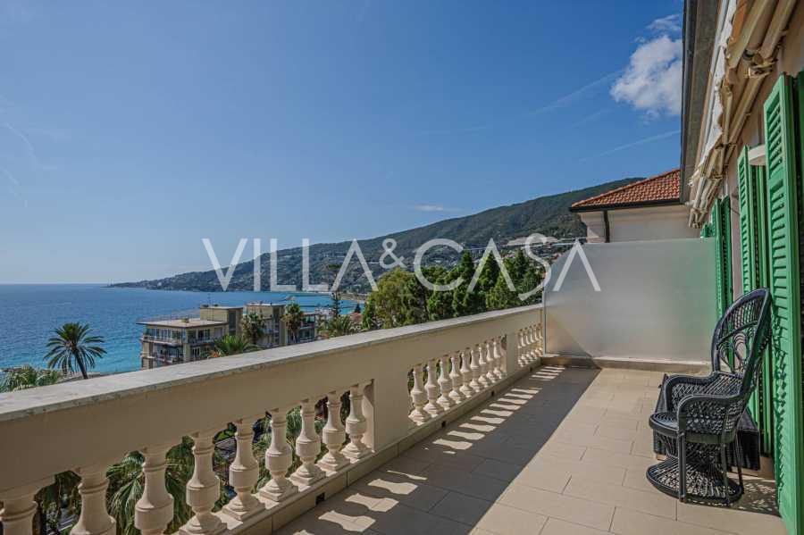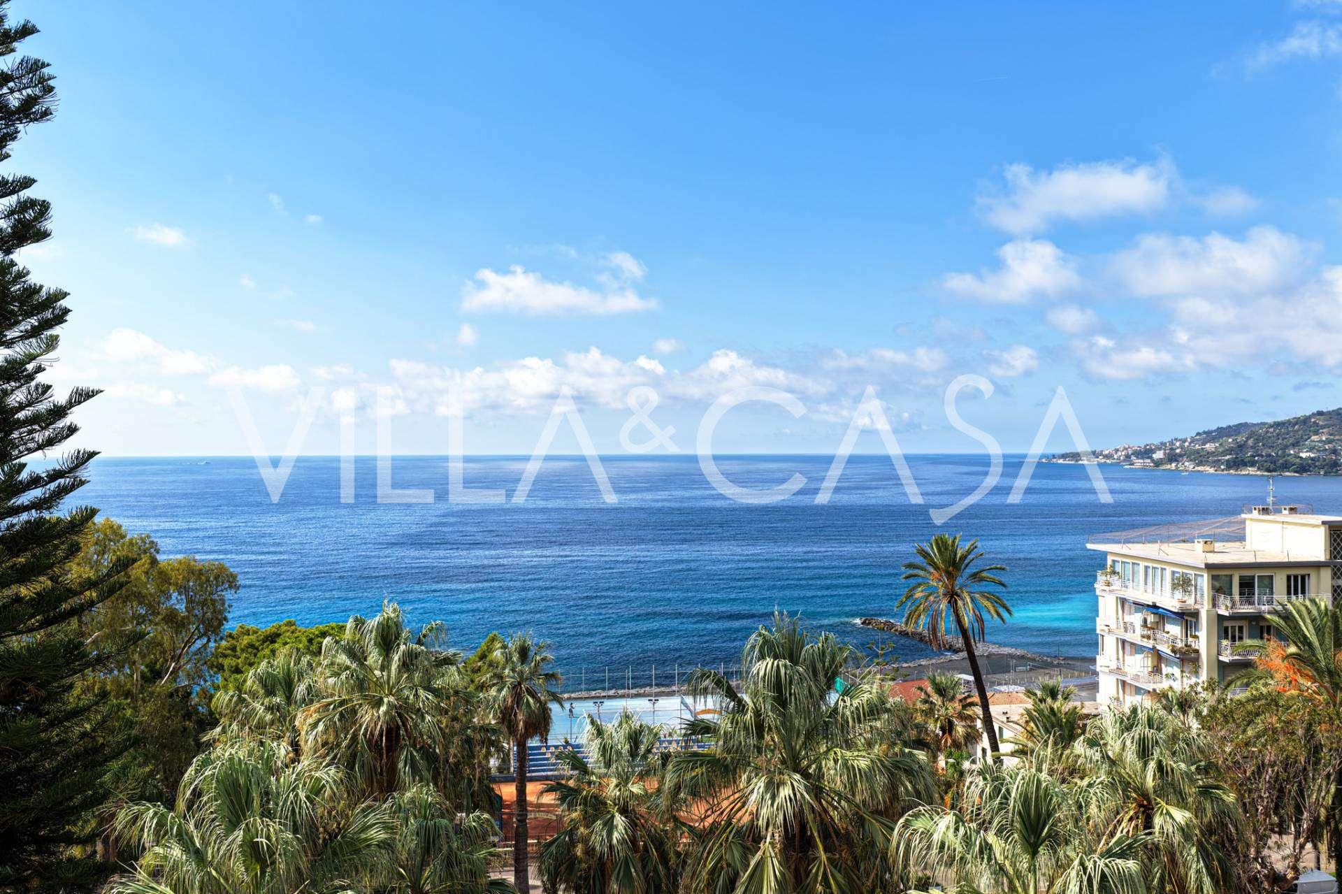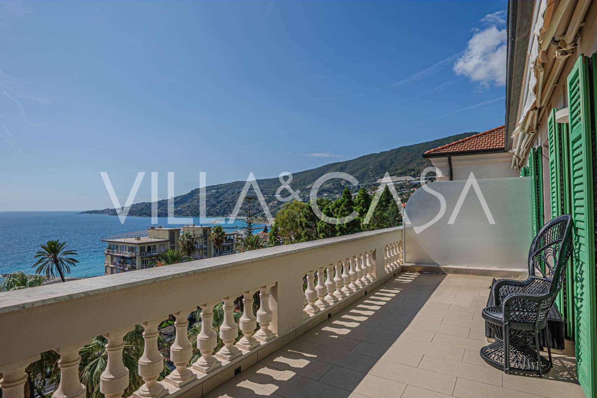 In the heart of charming Ospedaletti, within the renowned residential complex "REGINA," built on the site of the former "Grand Hotel de la Reine" and fully renovated in 2007, a unique penthouse covering 205 m² is offered, embodying impeccable style and comfort.