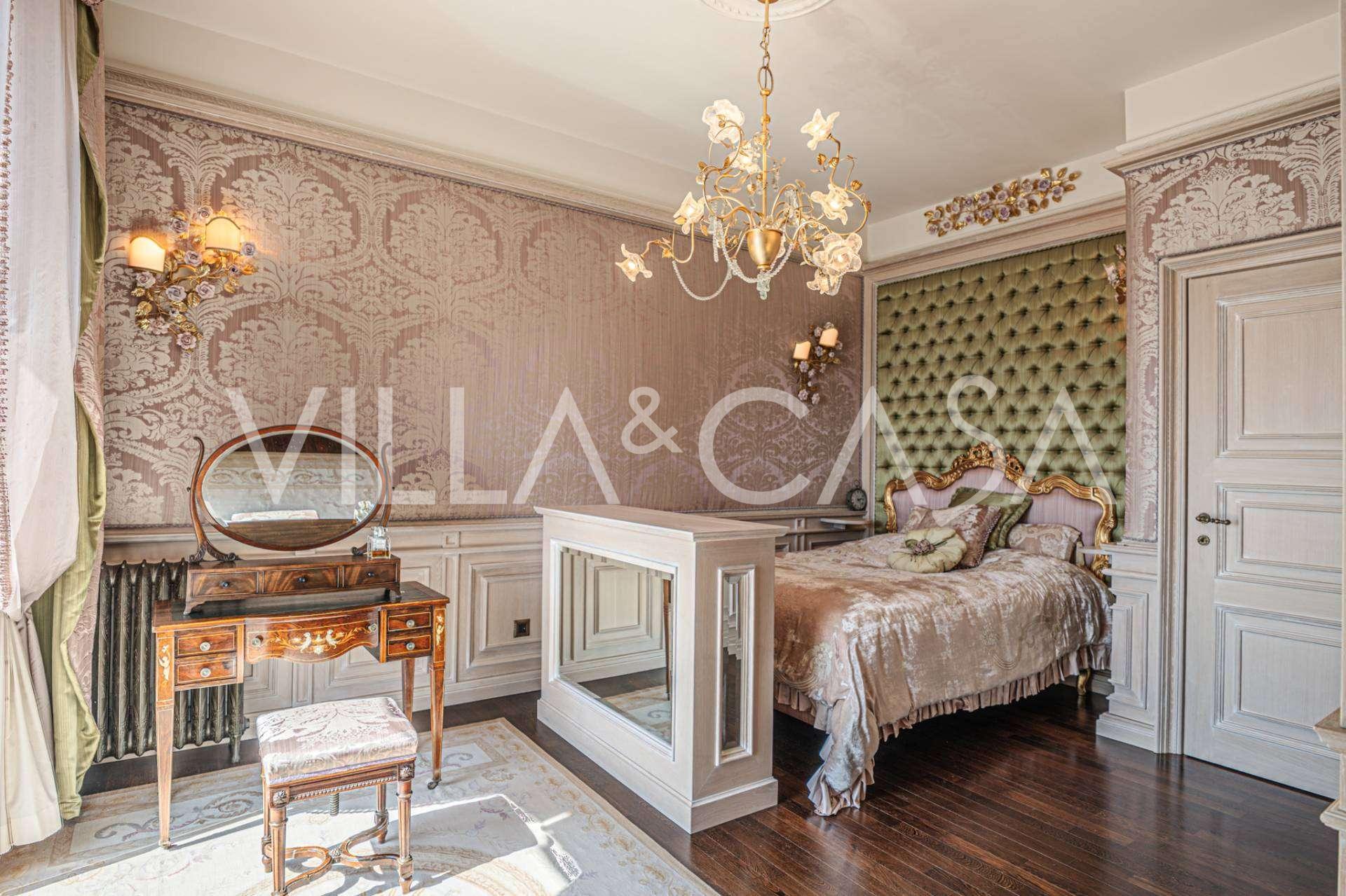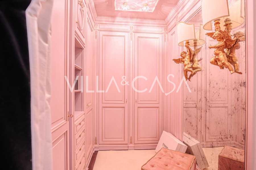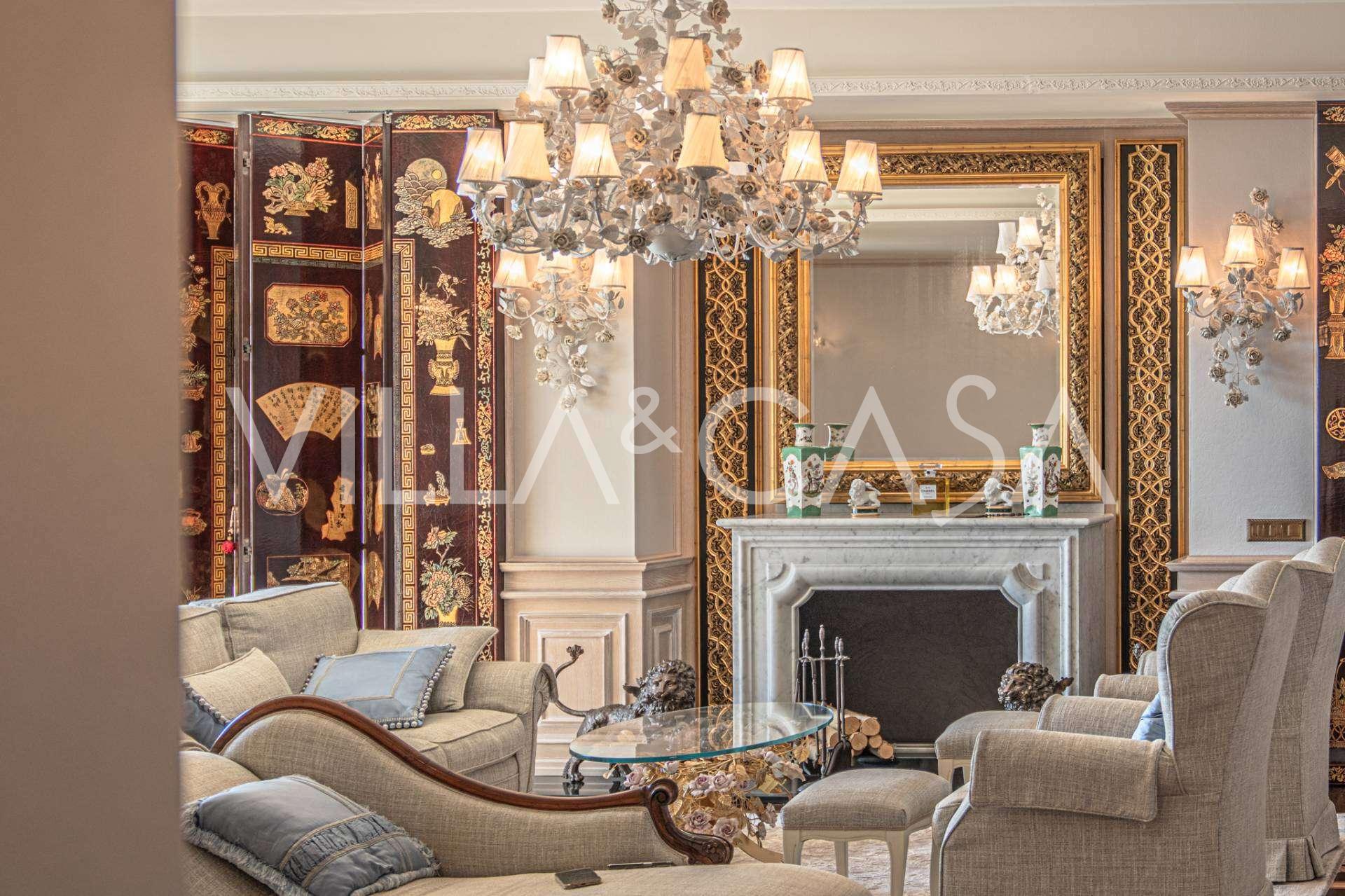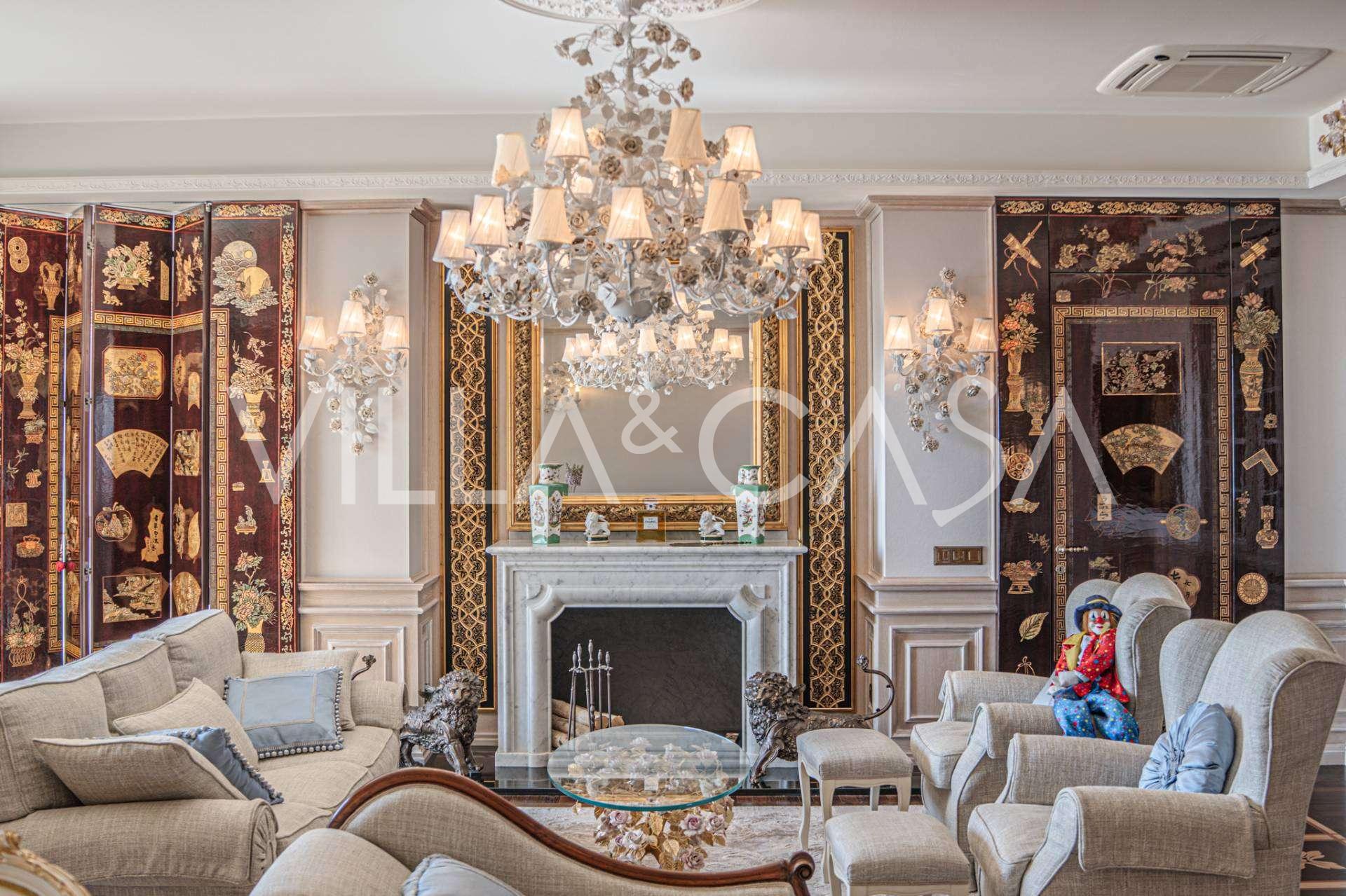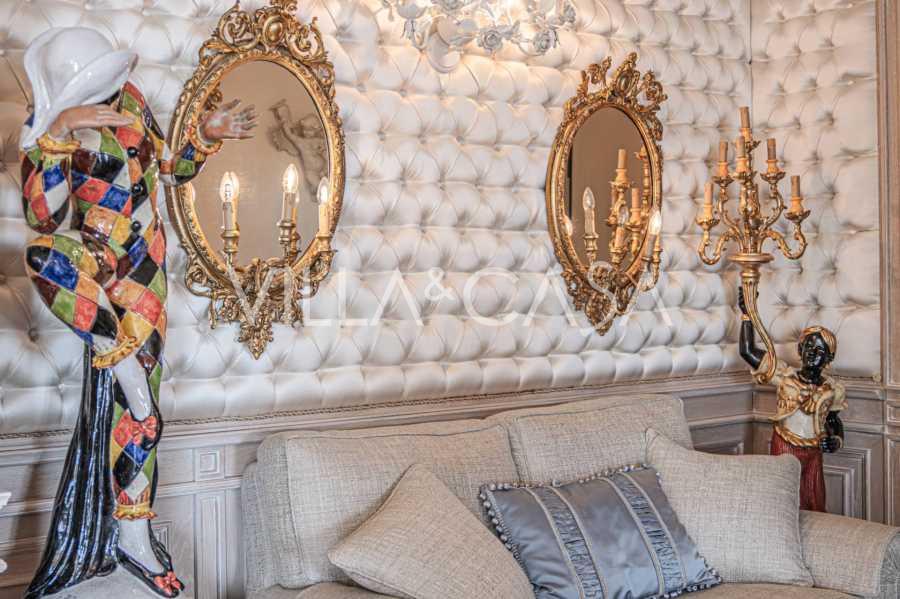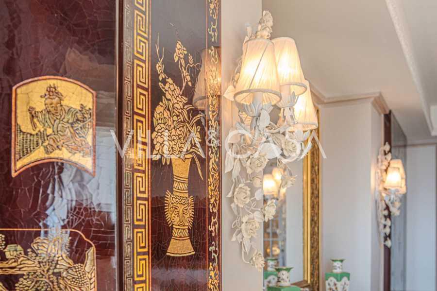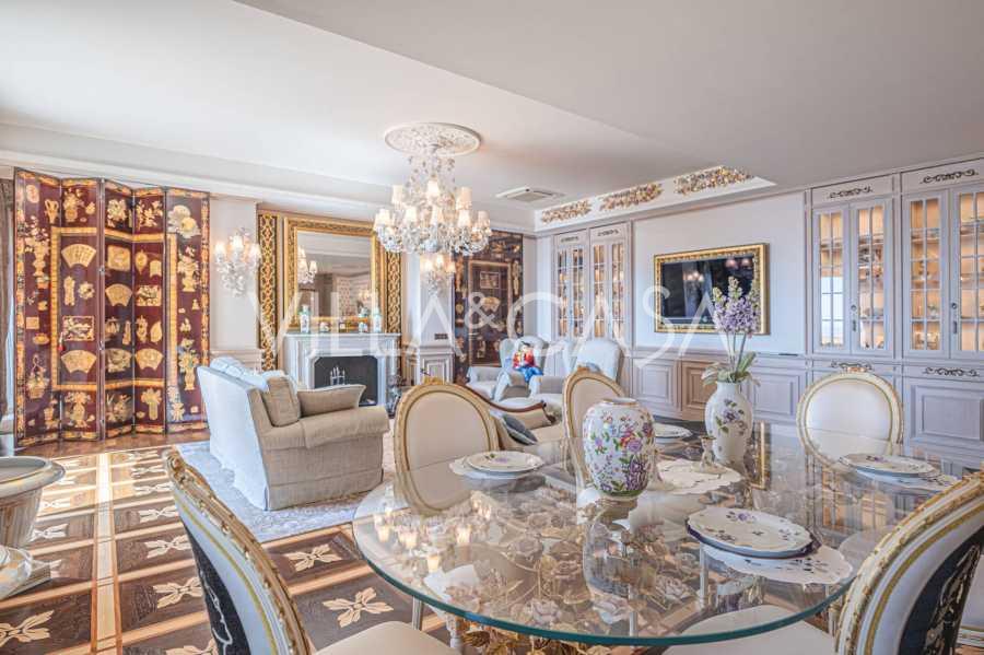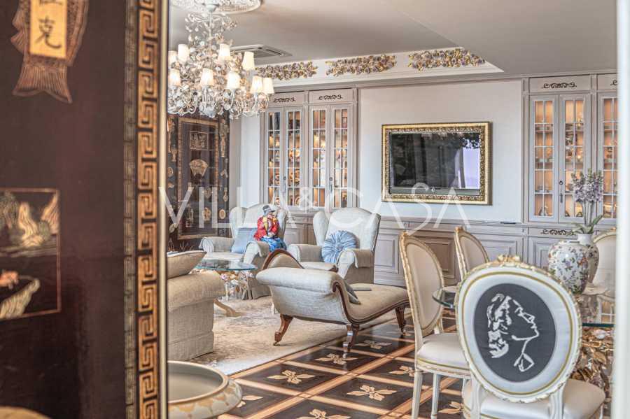 The finishes are executed with exceptional attention to detail: inlaid parquet in the living room, warm parquet boards in the bedrooms, prestigious ceramics in the bathrooms, lacquered wooden shutters and double-glazed windows, Villari brand chandeliers and lighting fixtures, Franco Martinello brand wardrobes, doors from an art workshop in Paris, silk wallpapers, and silk carpets in the living room and bedroom ensuring silence and comfort. Modern heating and air conditioning systems guarantee comfort at any time of the year.