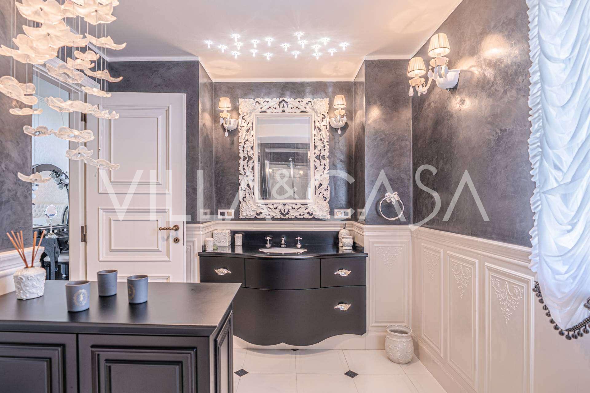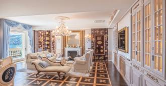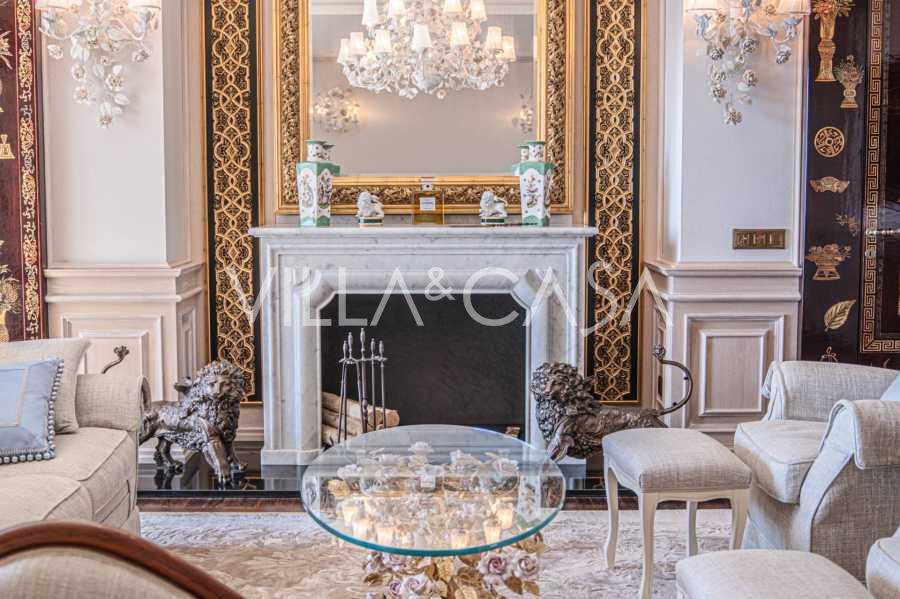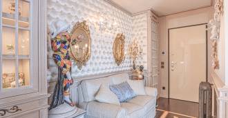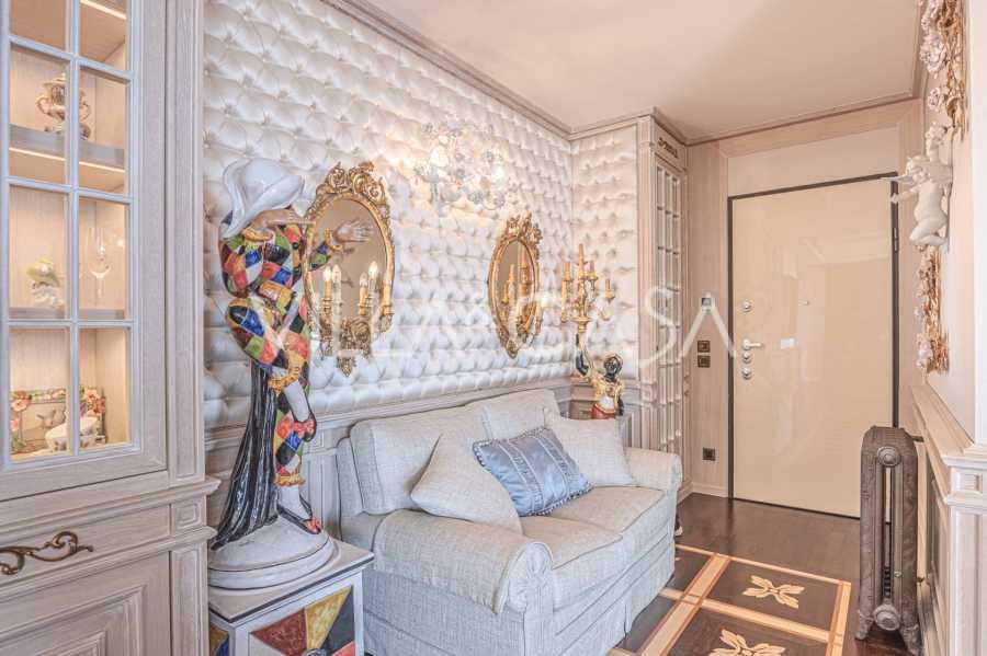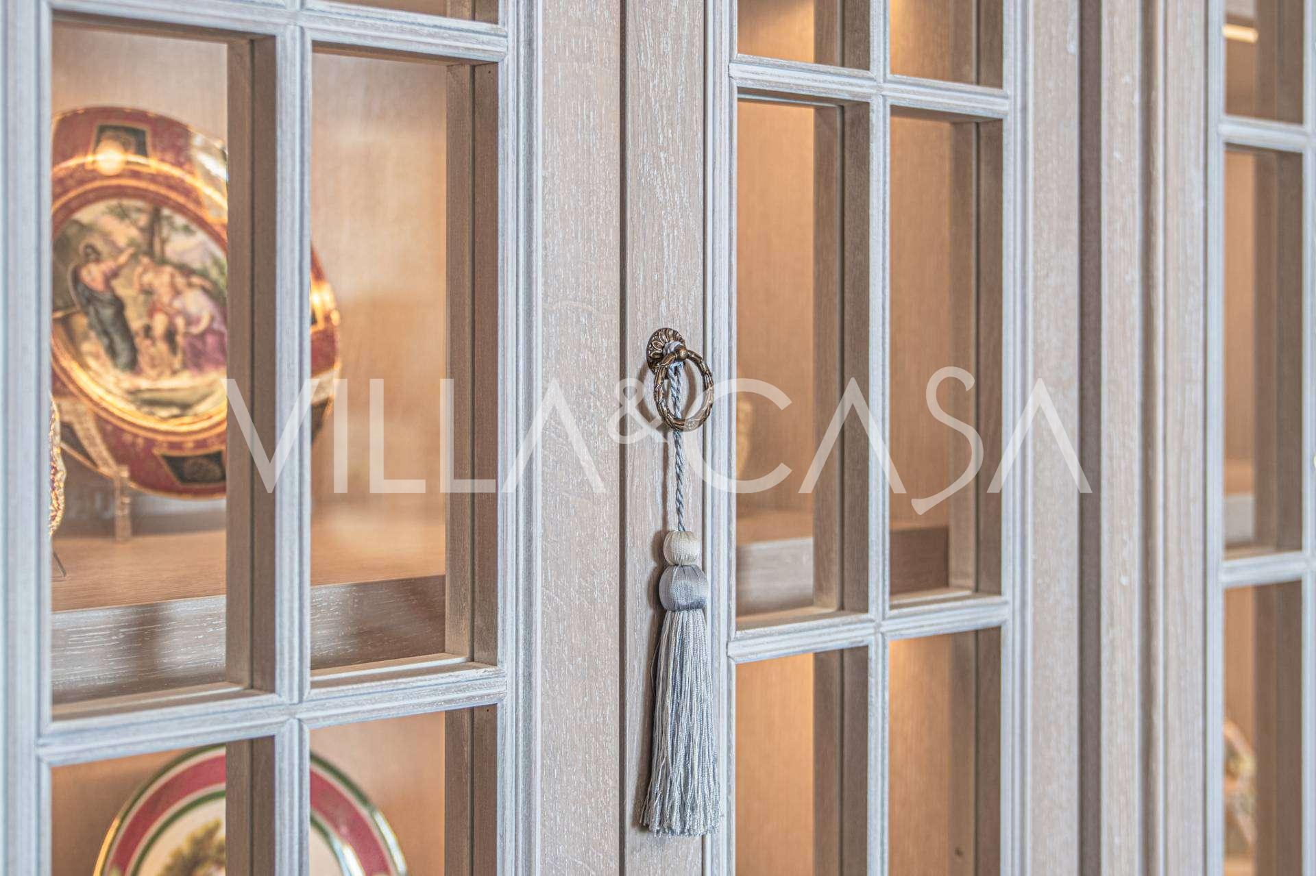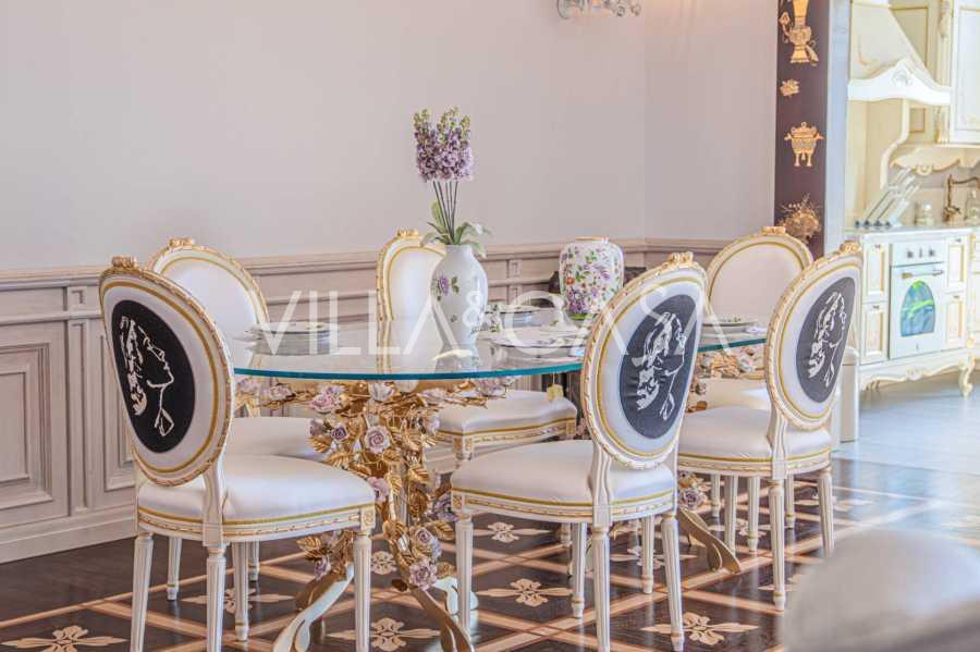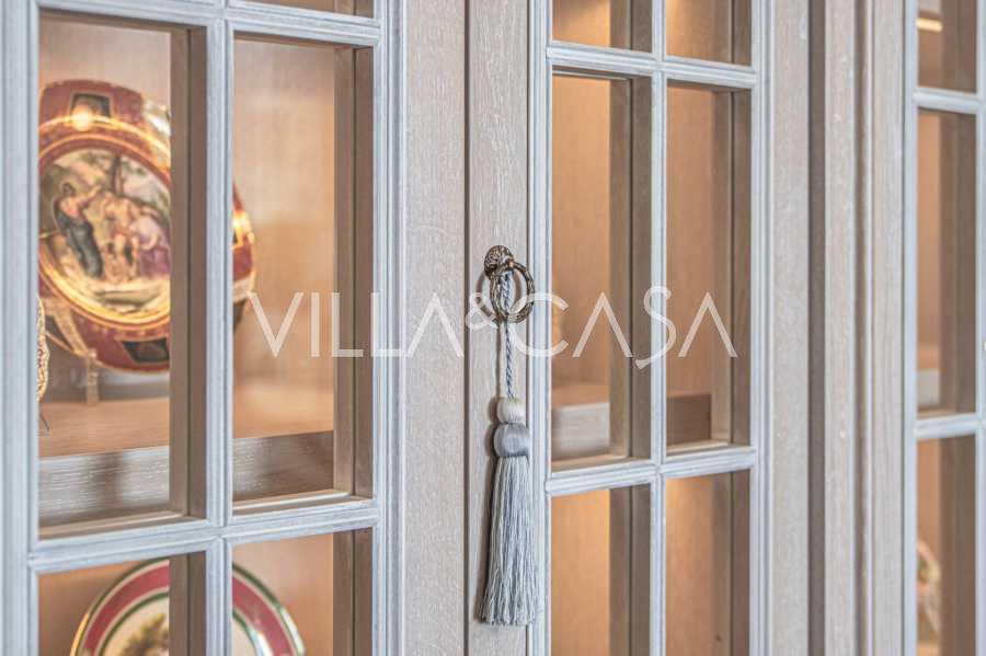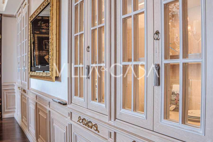 The finishes are executed with exceptional attention to detail: inlaid parquet in the living room, warm parquet boards in the bedrooms, prestigious ceramics in the bathrooms, lacquered wooden shutters and double-glazed windows, Villari brand chandeliers and lighting fixtures, Franco Martinello brand wardrobes, doors from an art workshop in Paris, silk wallpapers, and silk carpets in the living room and bedroom ensuring silence and comfort. Modern heating and air conditioning systems guarantee comfort at any time of the year.