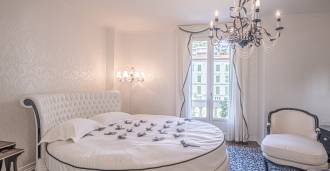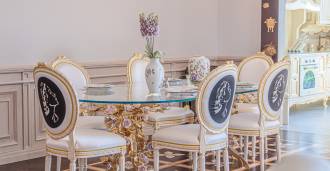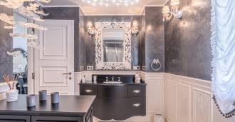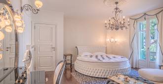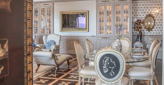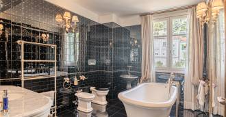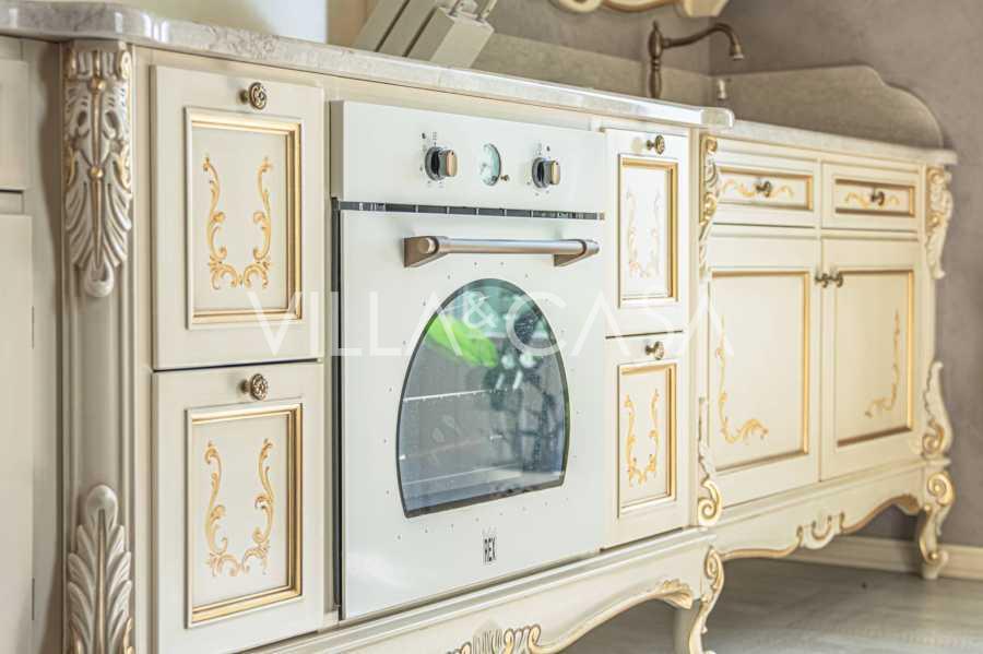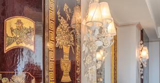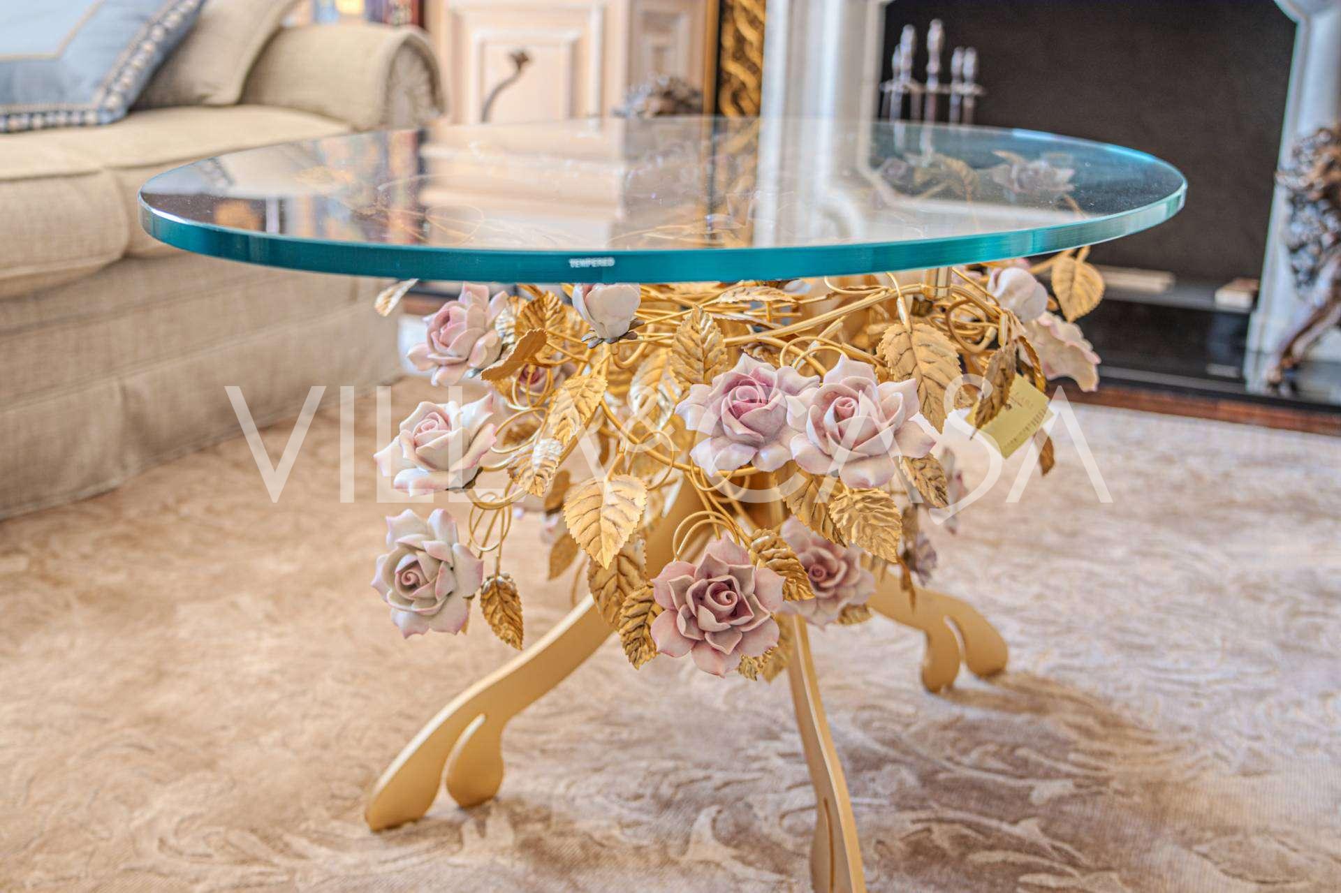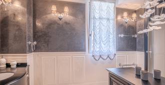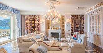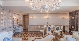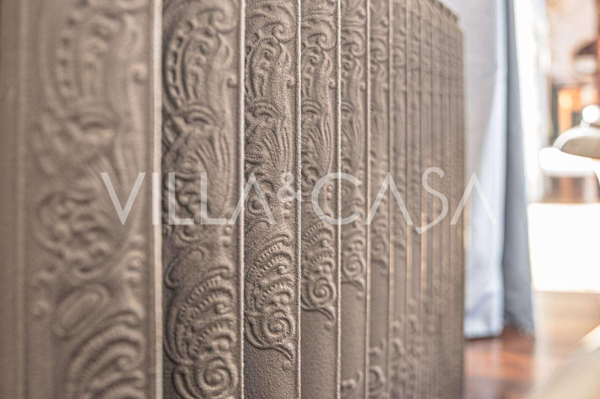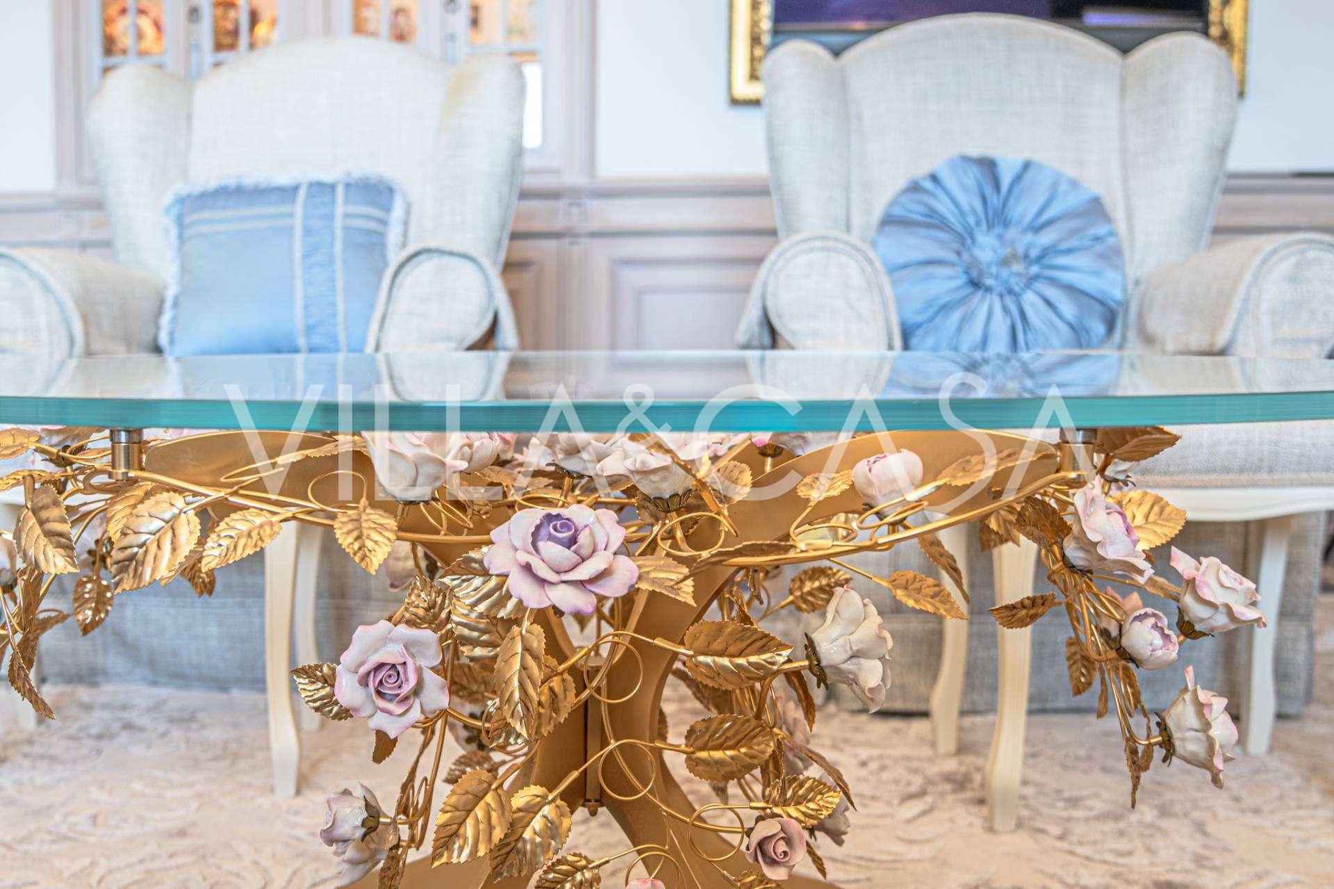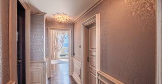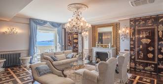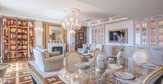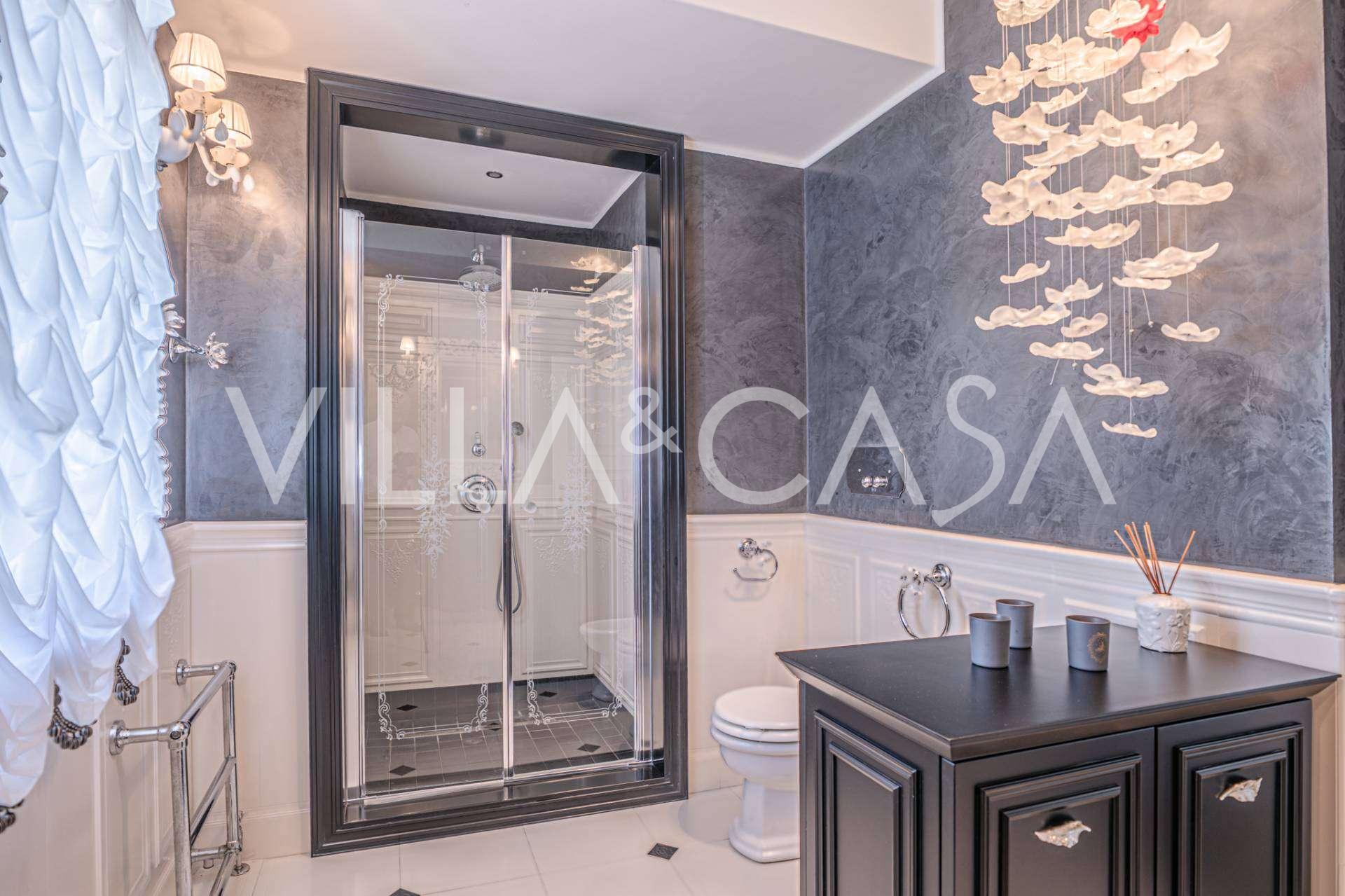 The finishes are executed with exceptional attention to detail: inlaid parquet in the living room, warm parquet boards in the bedrooms, prestigious ceramics in the bathrooms, lacquered wooden shutters and double-glazed windows, Villari brand chandeliers and lighting fixtures, Franco Martinello brand wardrobes, doors from an art workshop in Paris, silk wallpapers, and silk carpets in the living room and bedroom ensuring silence and comfort. Modern heating and air conditioning systems guarantee comfort at any time of the year.