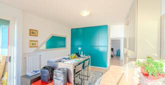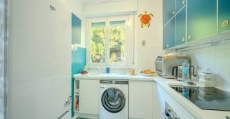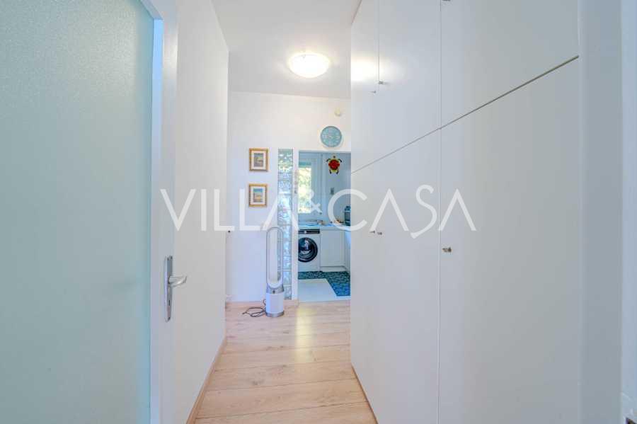 The layout includes: a living room, an office, two bedrooms, one of which overlooks the sea, a kitchen-dining room, two bathrooms with windows, an entrance hall, and a corridor. It has autonomous heating, the possibility of installing air conditioning, a 20 m² garage-box with a ceiling height of 3.50 m and the possibility of creating a mezzanine, and a spacious terrace for relaxation. There is no cellar, but the garage compensates for storage. The communal fees amount to 2000 € per year.