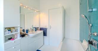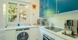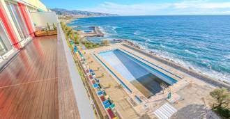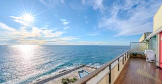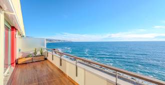 A penthouse with a spacious terrace of 143 m² (123 m² of living space + 20 m² garage) is offered directly on the seafront. This elegant penthouse, fully renovated in 2023, is located on the 5th floor of a building with a concierge. The apartment is south-east facing and features a large terrace, creating a bright and cozy atmosphere.