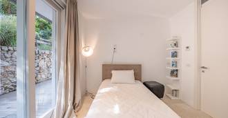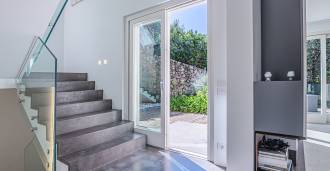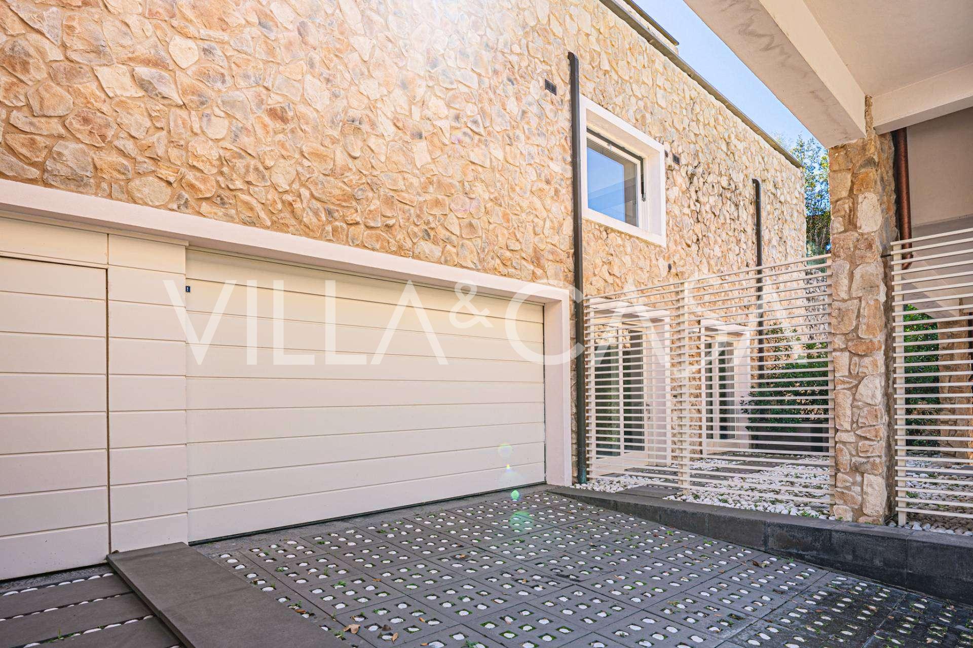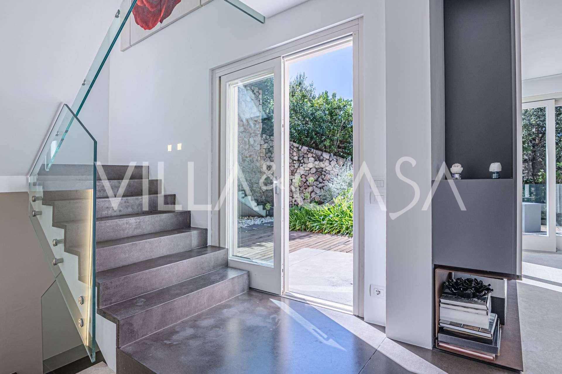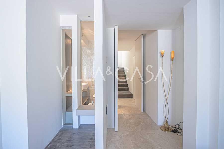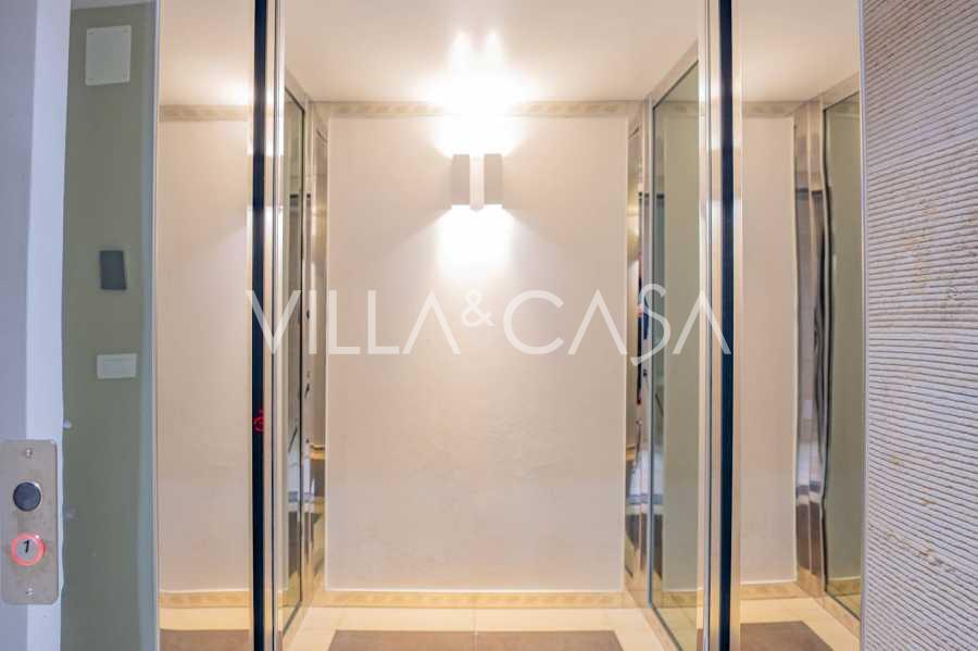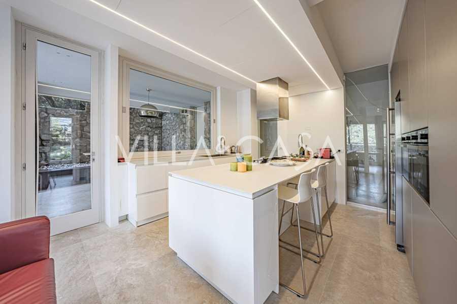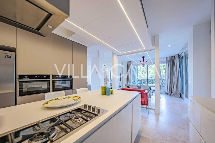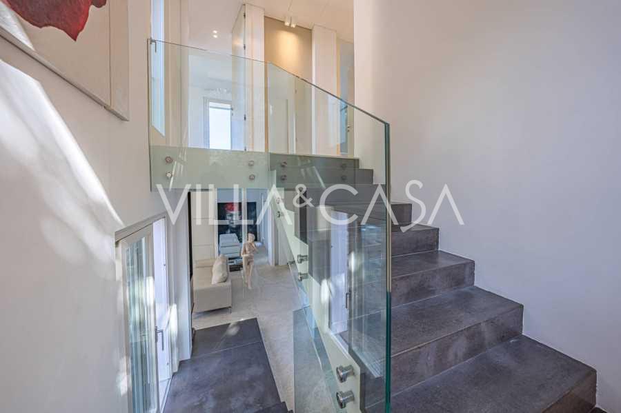 Recently fully renovated and spread over four levels connected by an internal elevator, the residence showcases rare elegance and refined functionality. The architecture, with its impeccable lines and glass facades, creates harmony between the interior spaces and charming terraces. The villa is surrounded by a well-maintained terraced garden of 500 m², offering owners privacy and tranquility, where a sophisticated relaxation area with a swimming pool is also hidden.