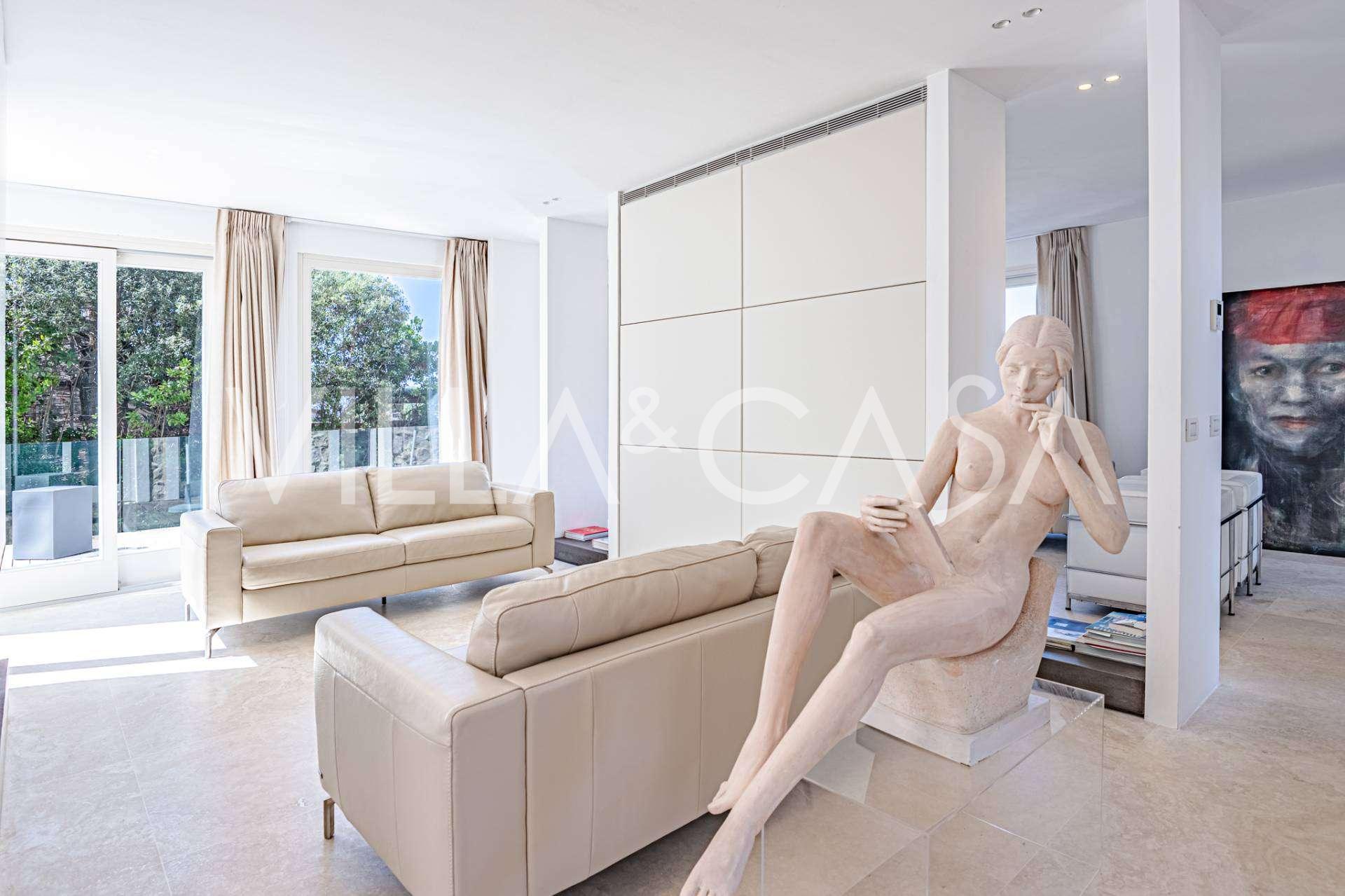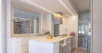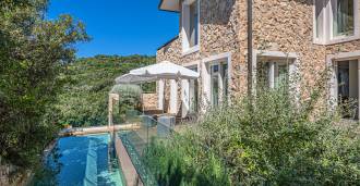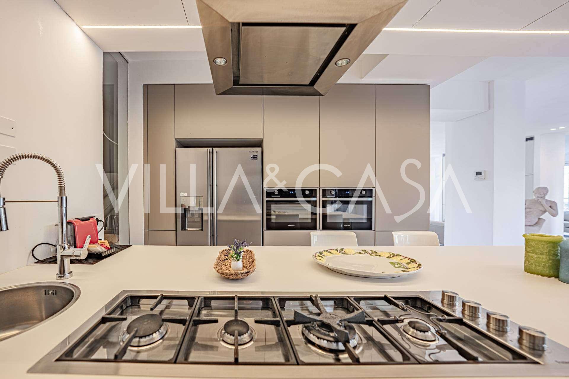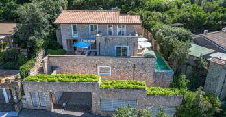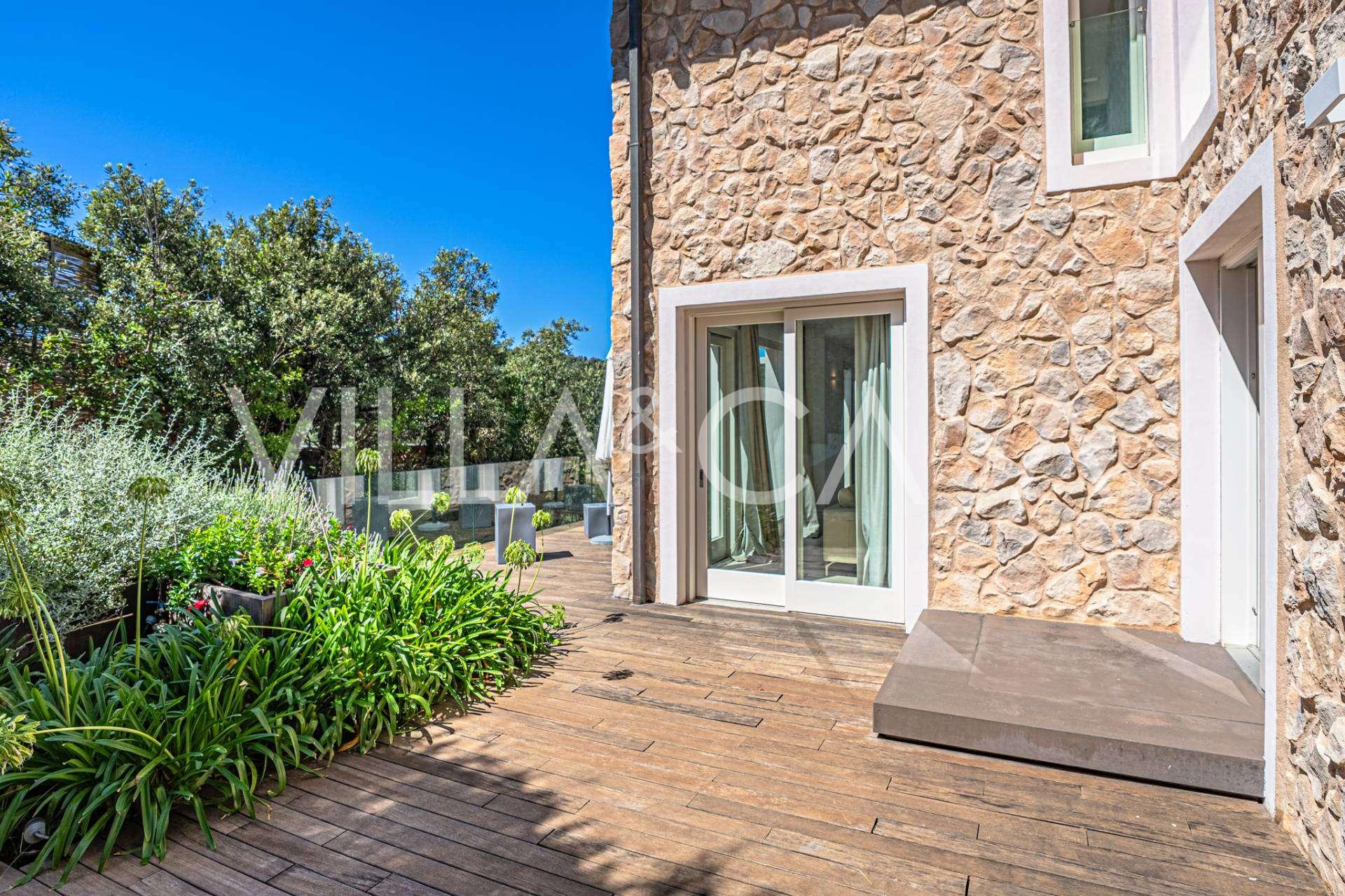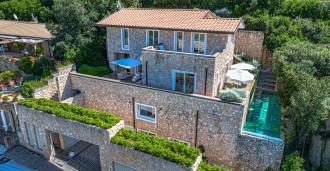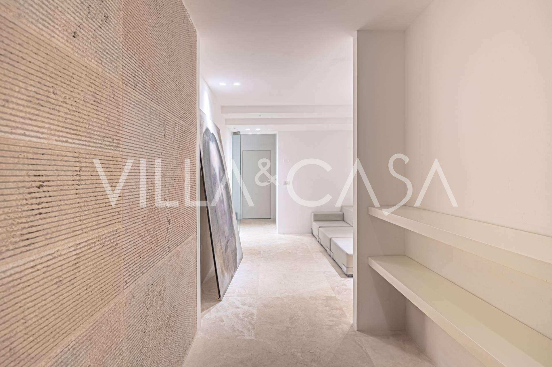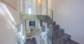 Recently fully renovated and spread over four levels connected by an internal elevator, the residence showcases rare elegance and refined functionality. The architecture, with its impeccable lines and glass facades, creates harmony between the interior spaces and charming terraces. The villa is surrounded by a well-maintained terraced garden of 500 m², offering owners privacy and tranquility, where a sophisticated relaxation area with a swimming pool is also hidden.