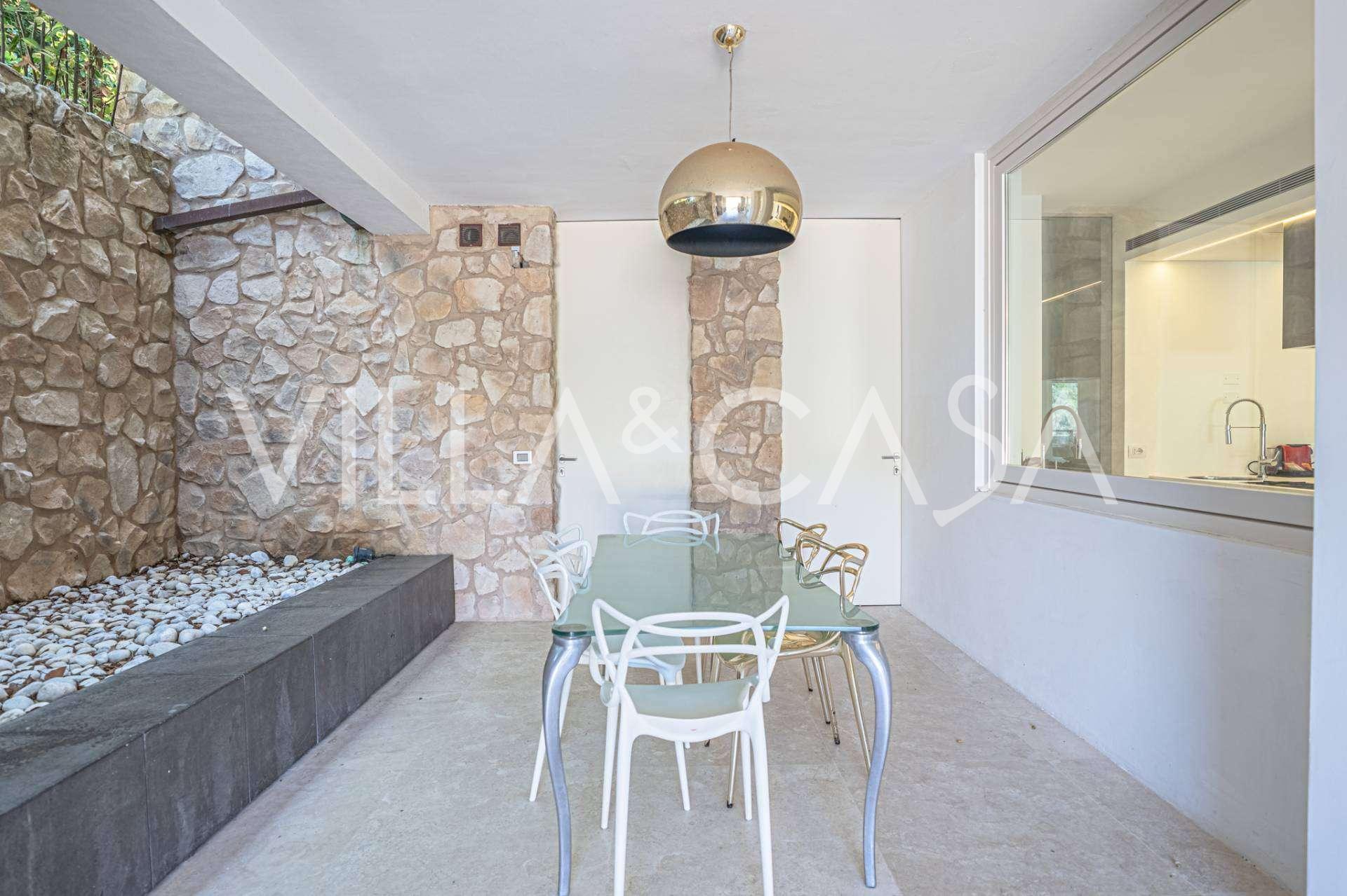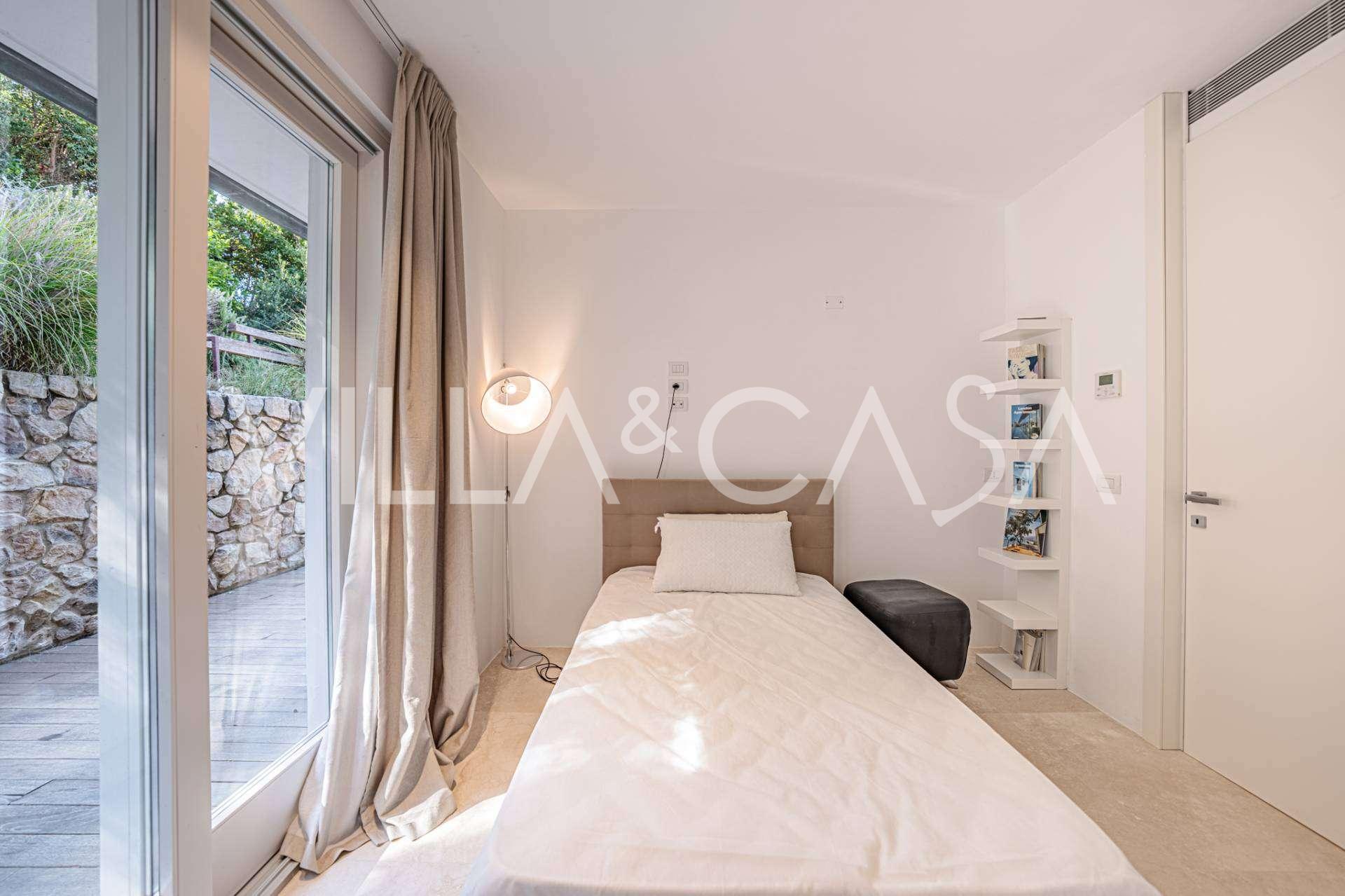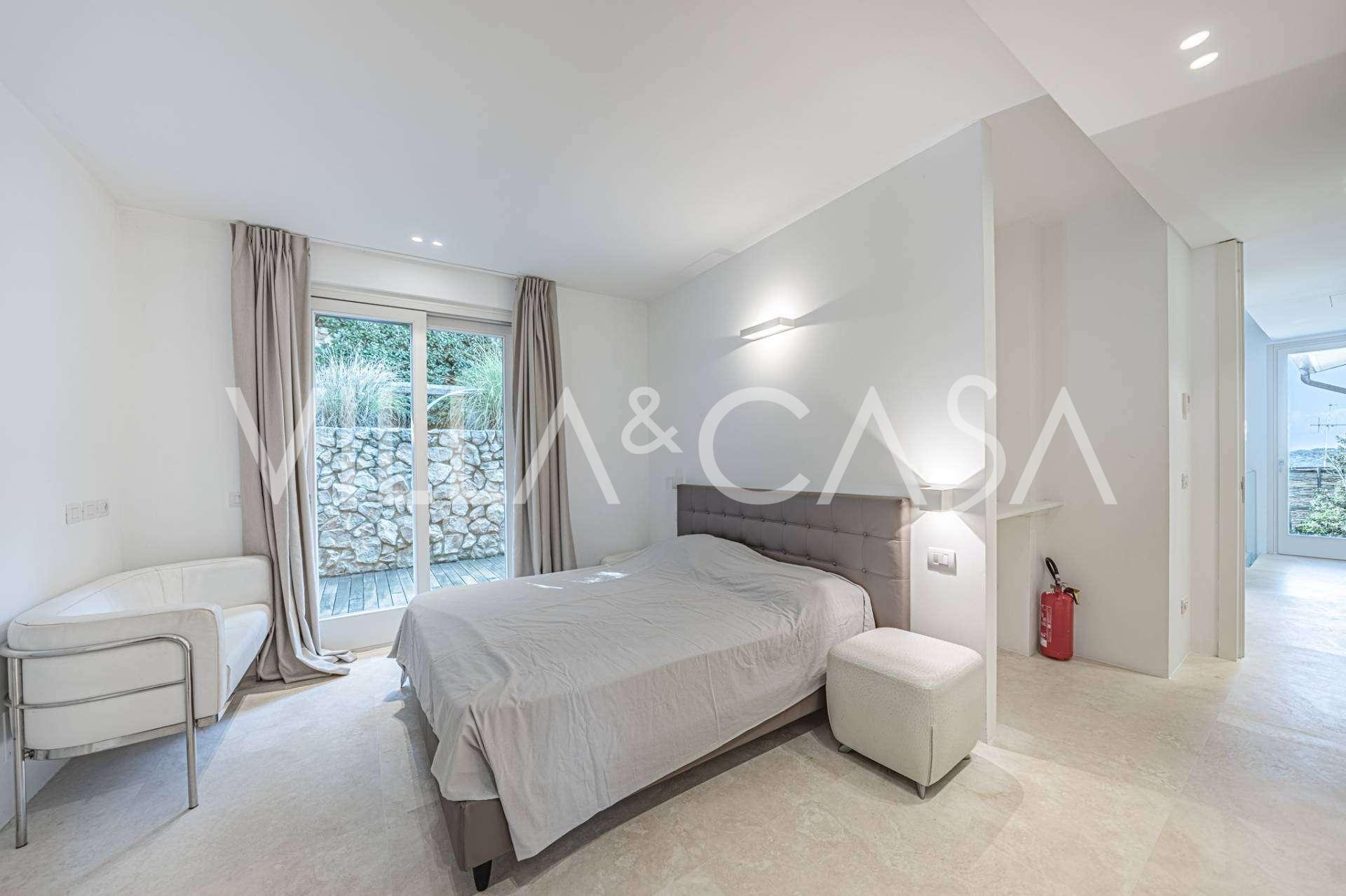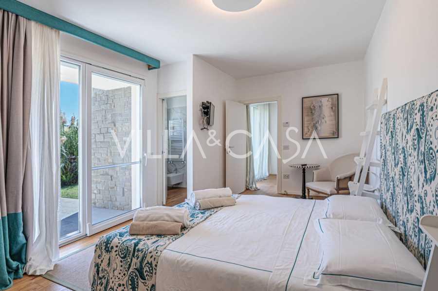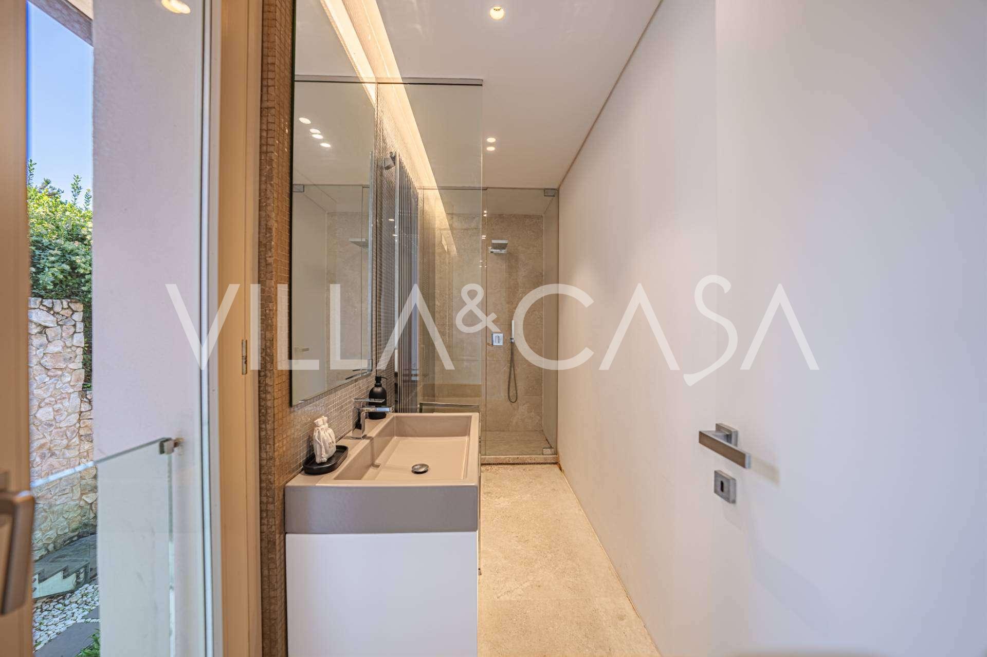 At the garden level, there is a separate apartment with an independent entrance, ideal for guests or staff. In the villa's basement, there is a splendid wellness area: a spacious jacuzzi, Turkish hammam, private relaxation room, as well as an additional bedroom with an en-suite bathroom and storage areas, including a wine cellar.
