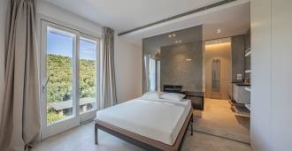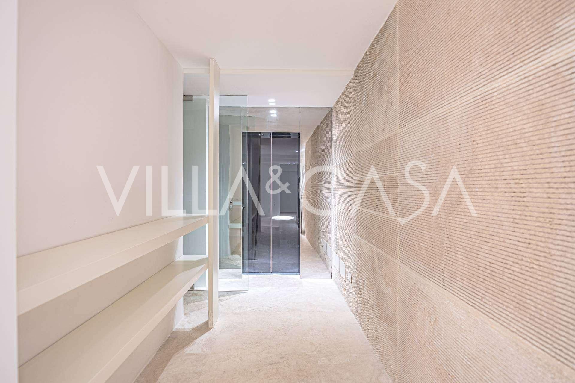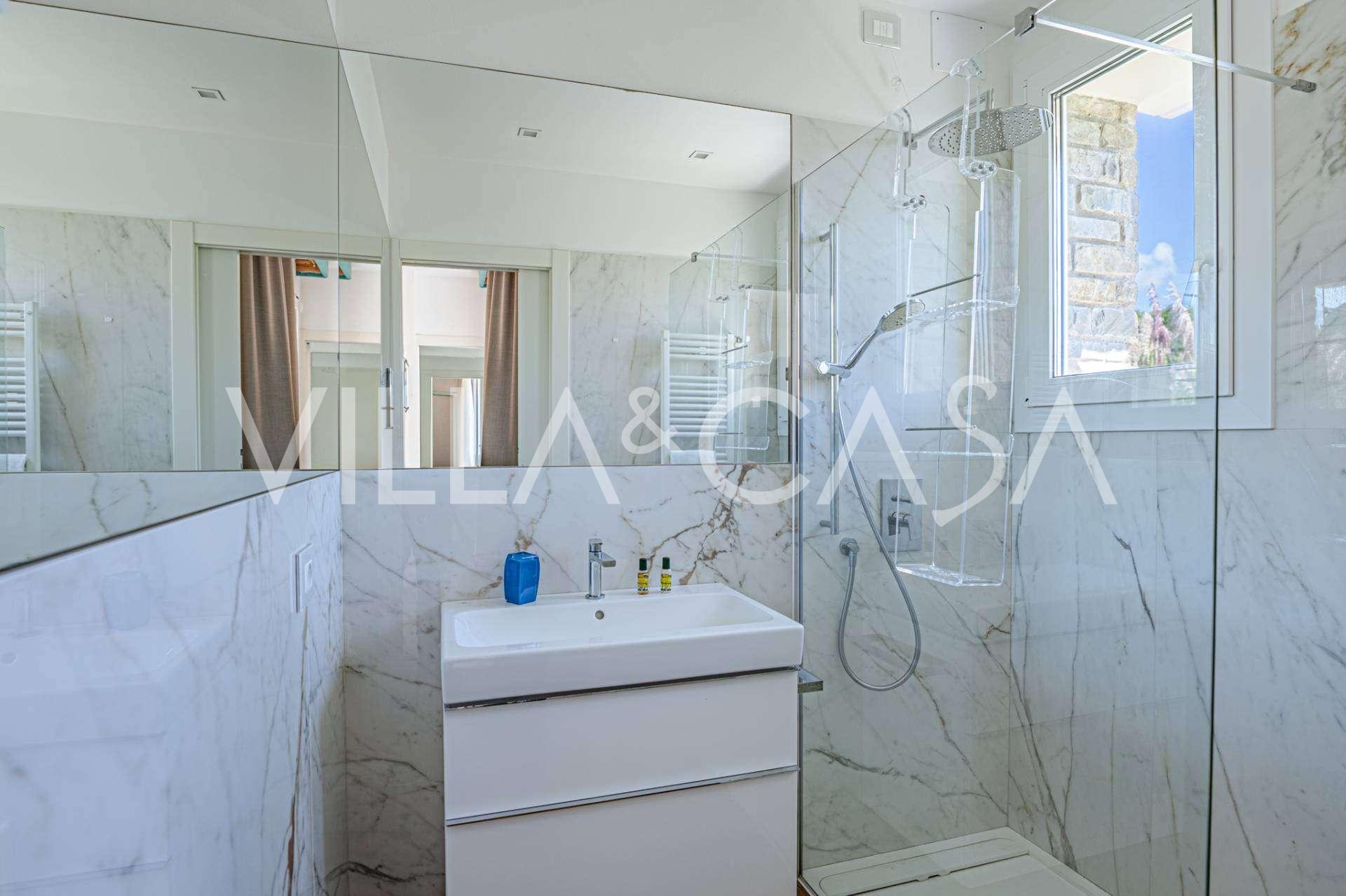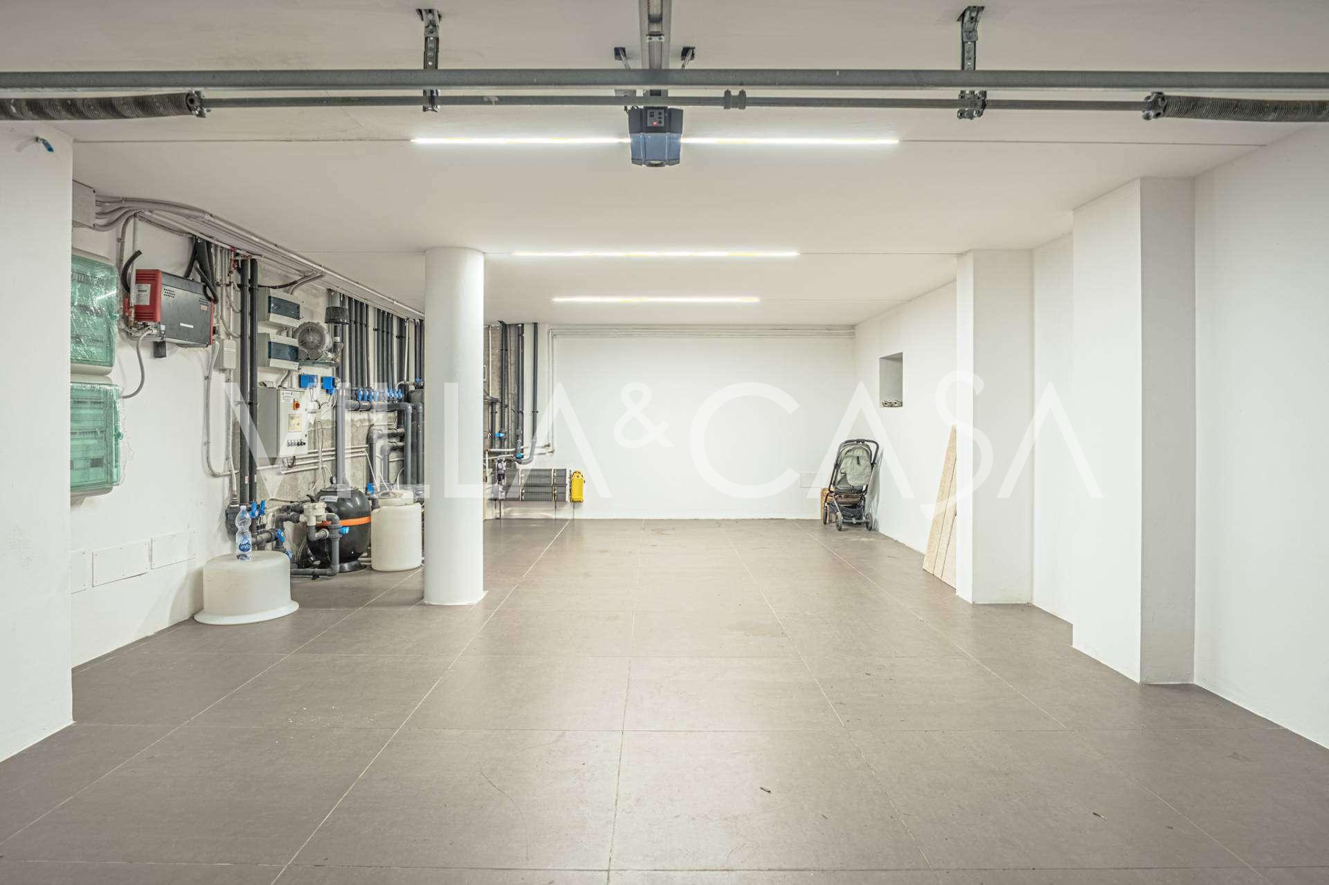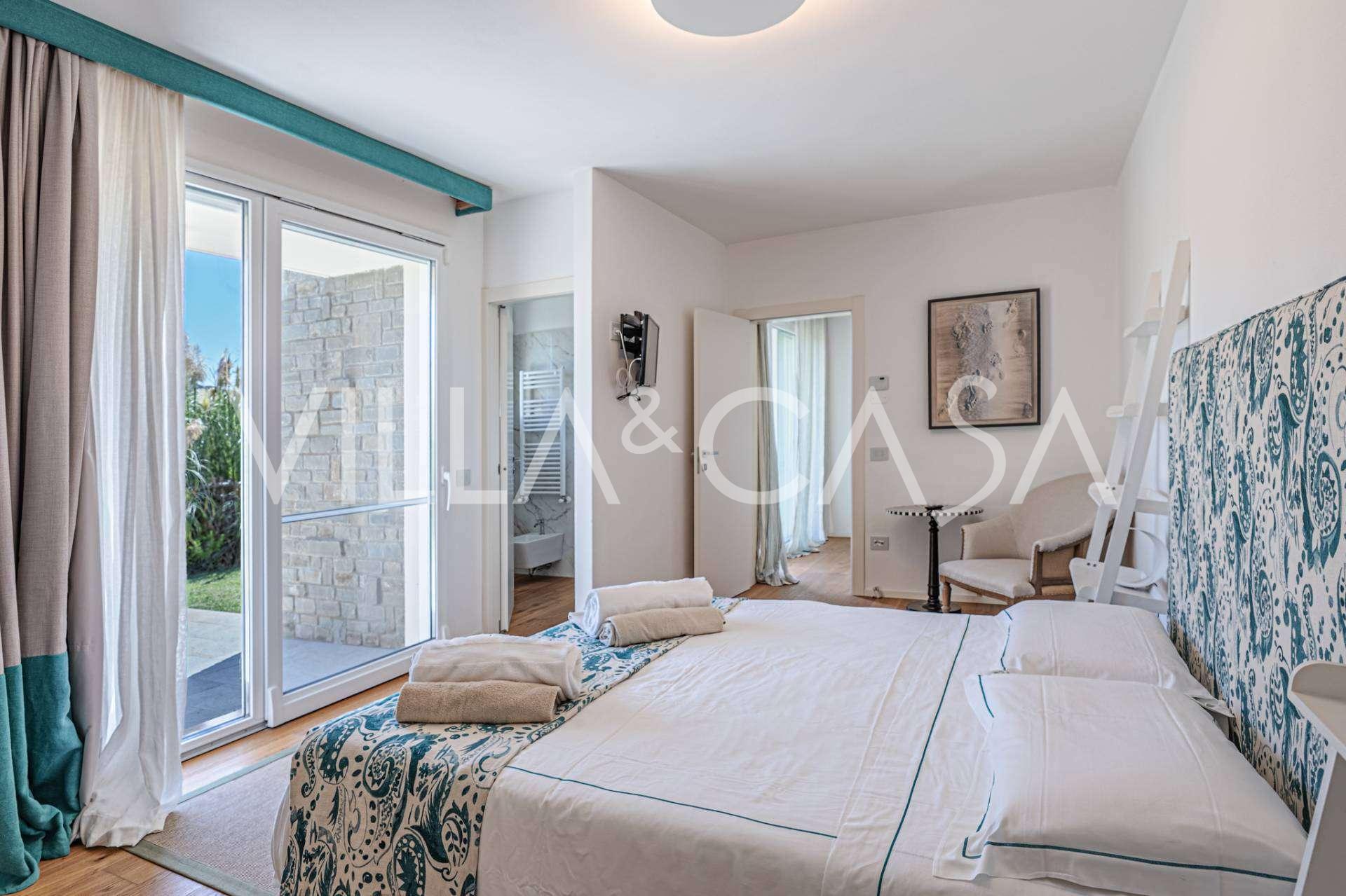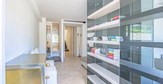 At the garden level, there is a separate apartment with an independent entrance, ideal for guests or staff. In the villa's basement, there is a splendid wellness area: a spacious jacuzzi, Turkish hammam, private relaxation room, as well as an additional bedroom with an en-suite bathroom and storage areas, including a wine cellar.