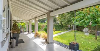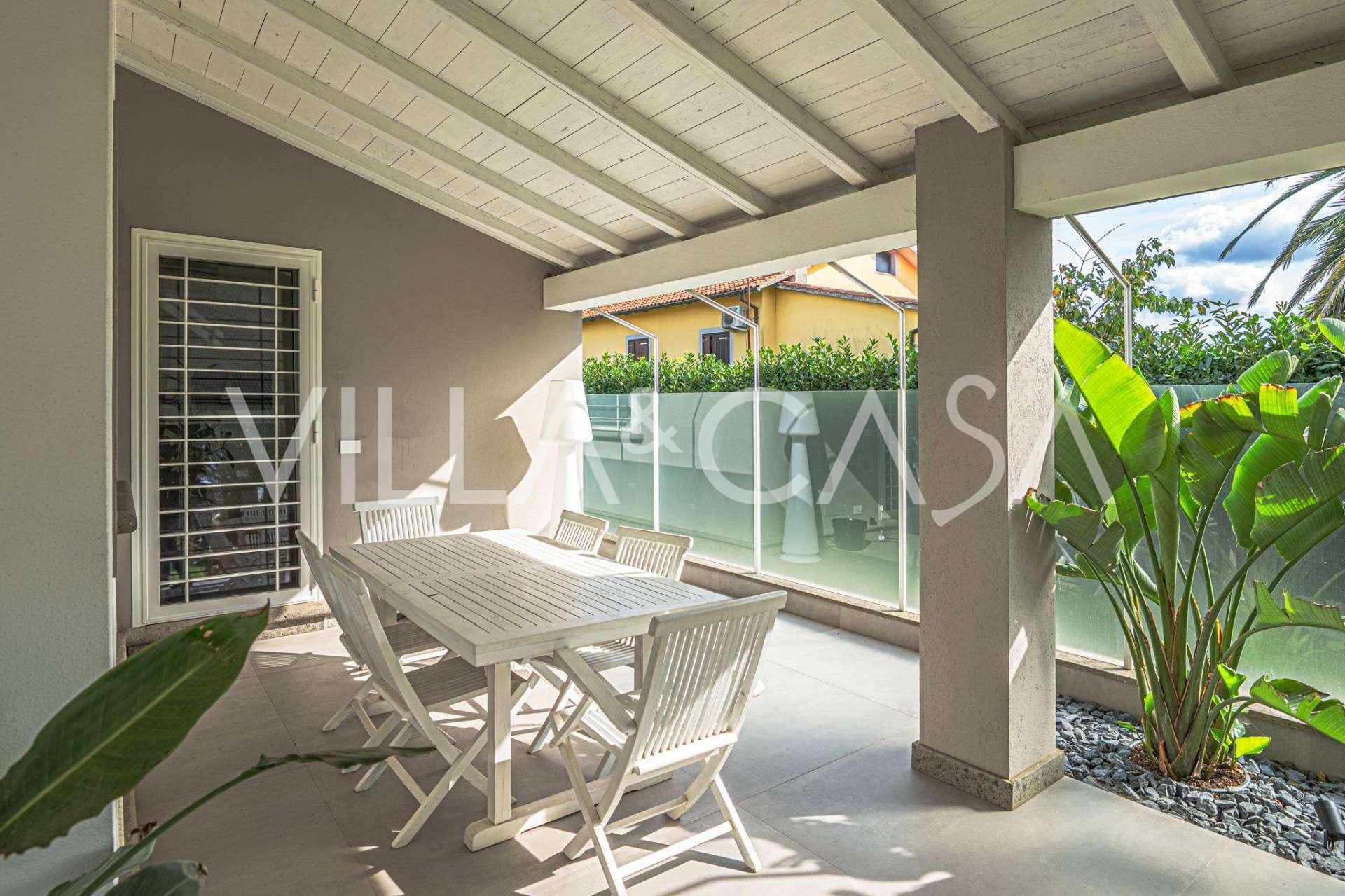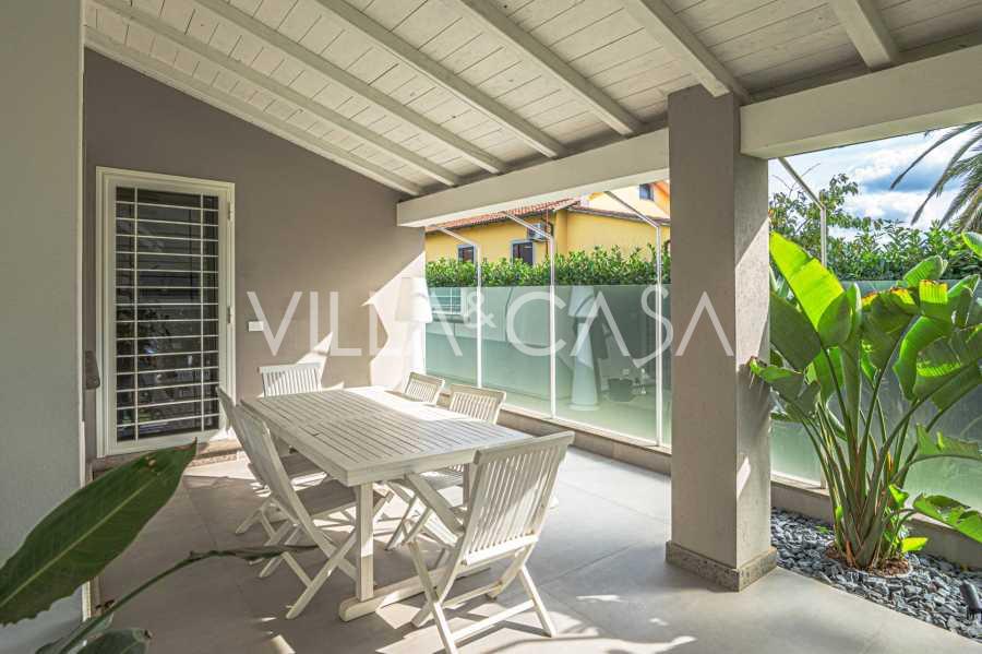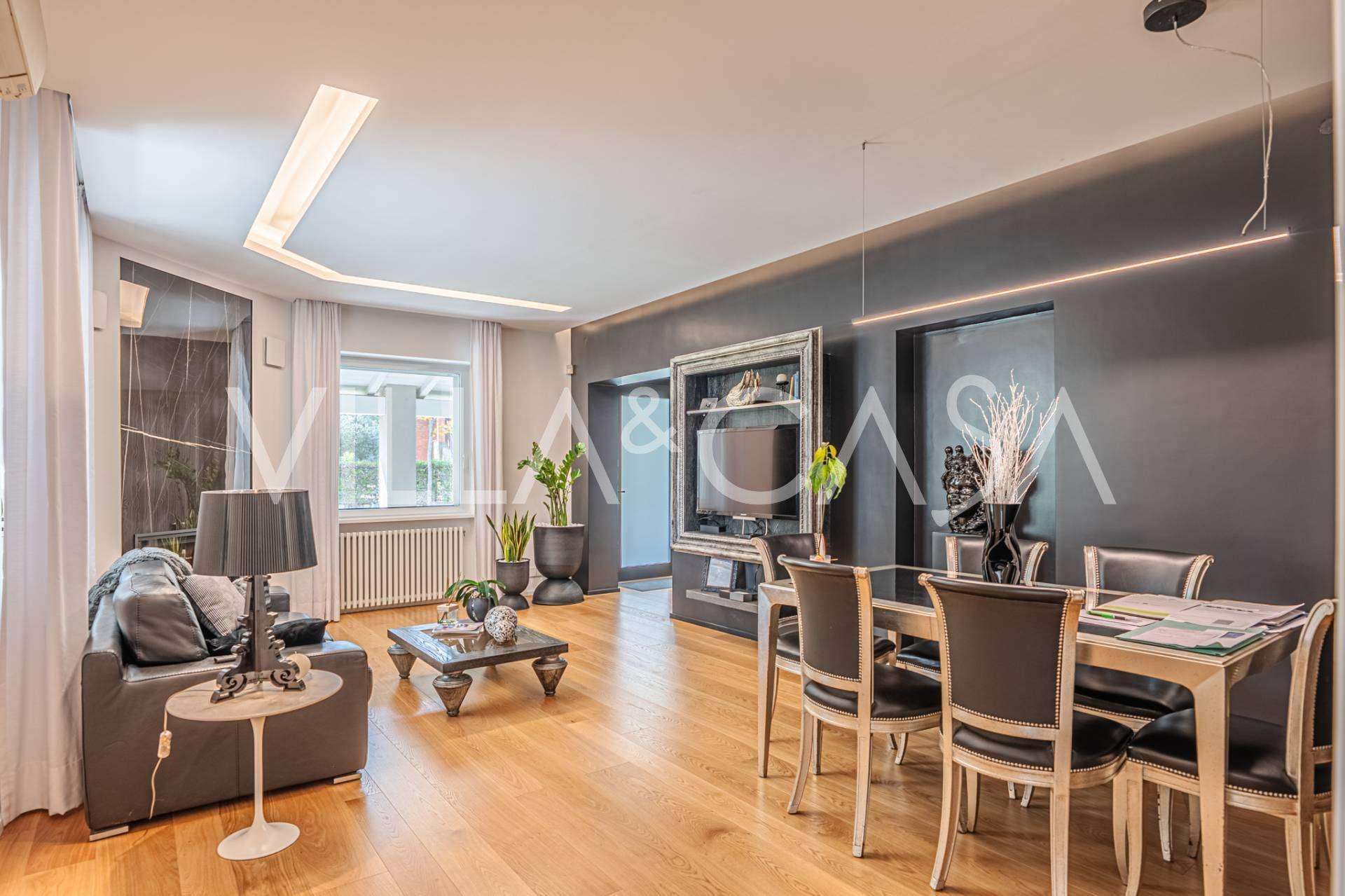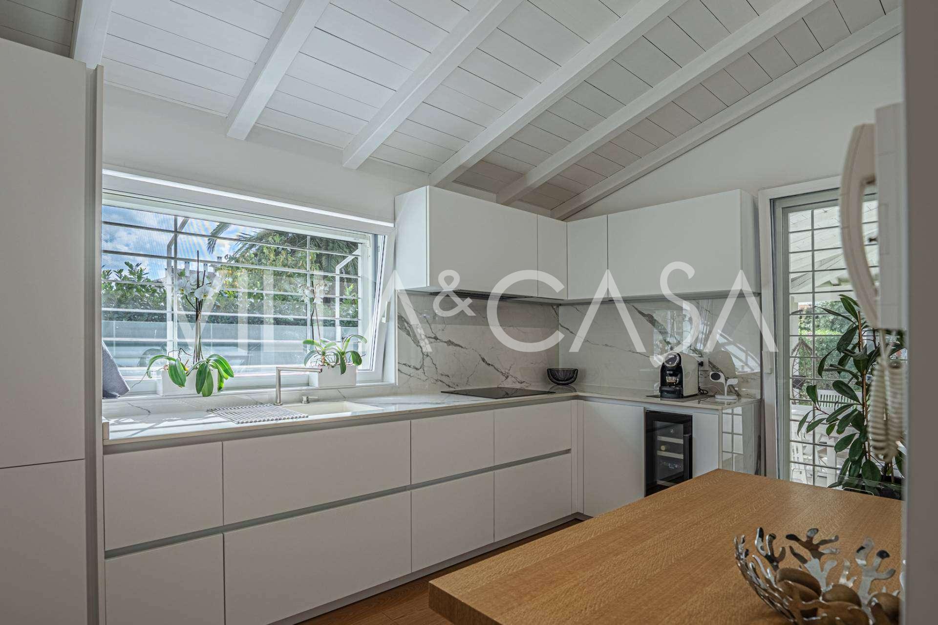 The villa is constructed using high-quality materials and is equipped with an autonomous heating system, air conditioning, and modern engineering solutions. The well-maintained garden provides coziness and privacy, while parking for two cars adds convenience.