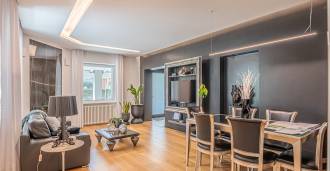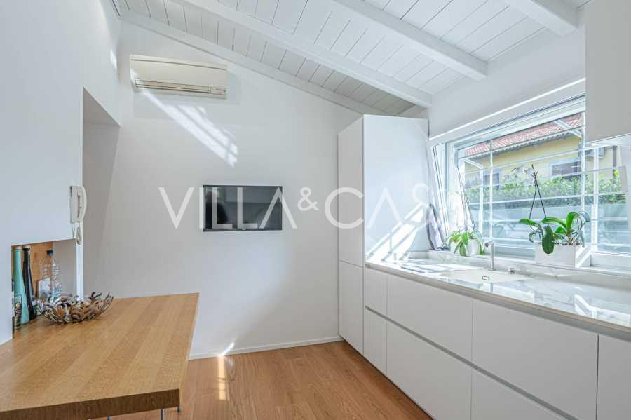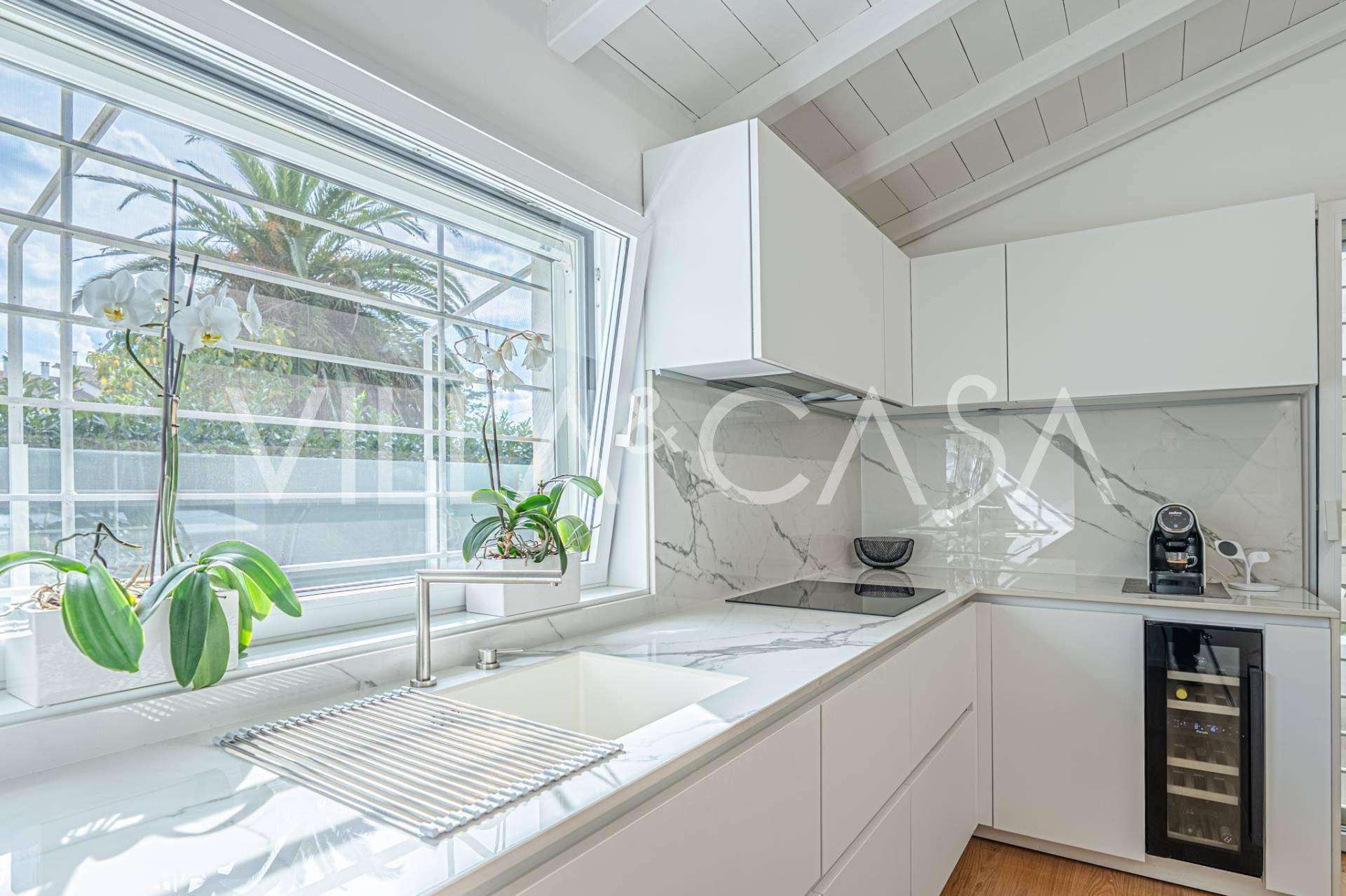 On the first level, there is a bright and spacious living room, a standalone kitchen with access to a private garden, two comfortable bedrooms, two modern bathrooms, and a storage room. The upper level features a stylish attic, suitable for an office, relaxation area, or additional bedroom.