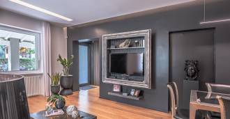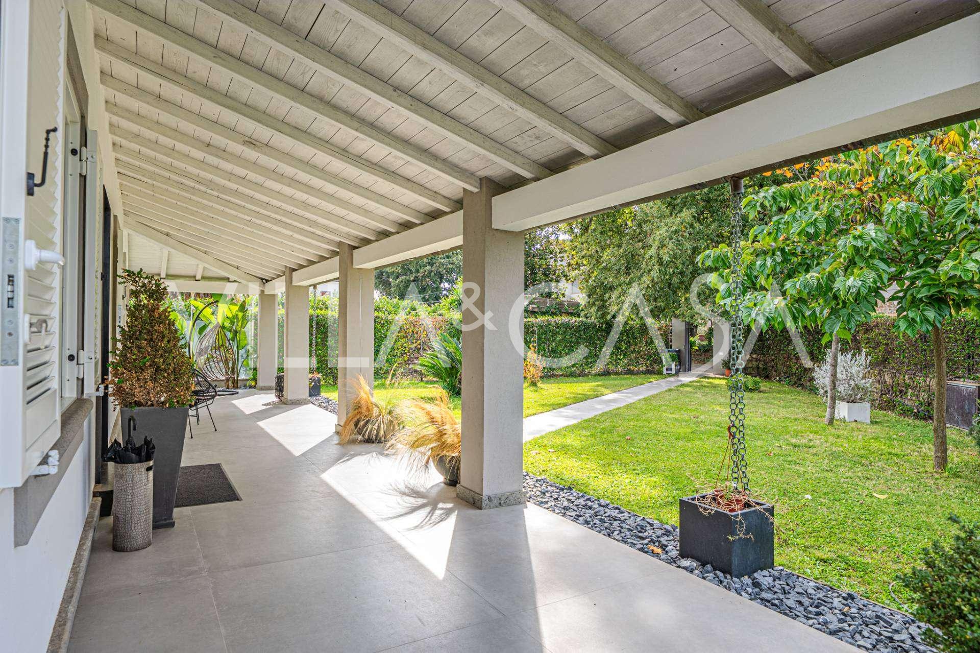 An elegant villa is for sale in Vetralla, Viterbo province, located in a picturesque and prestigious part of the town. Recently fully renovated, this exquisite residence spans two floors and covers an area of 183 m², crafted with great attention to detail.