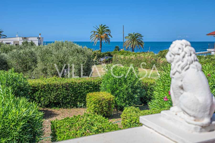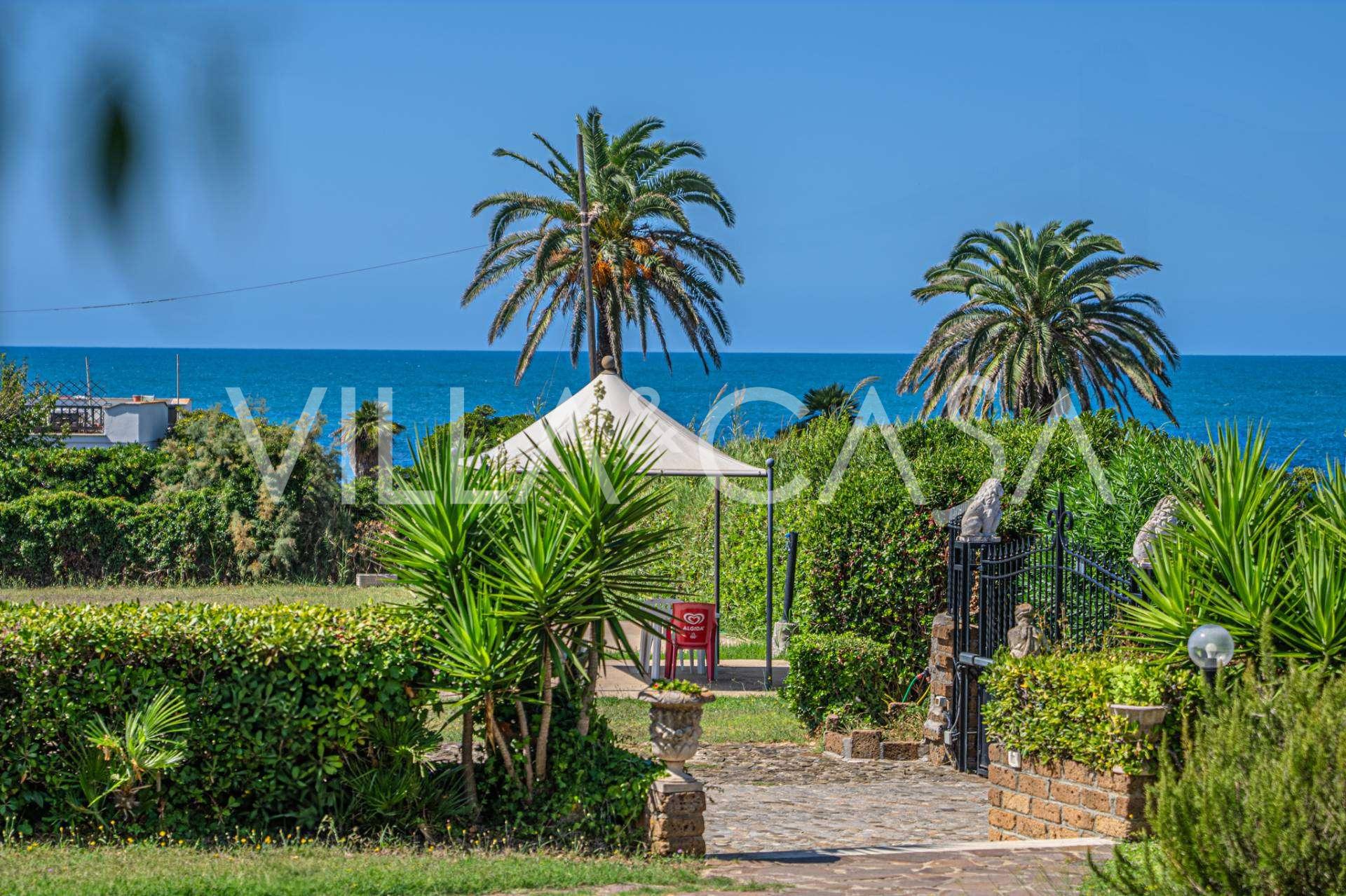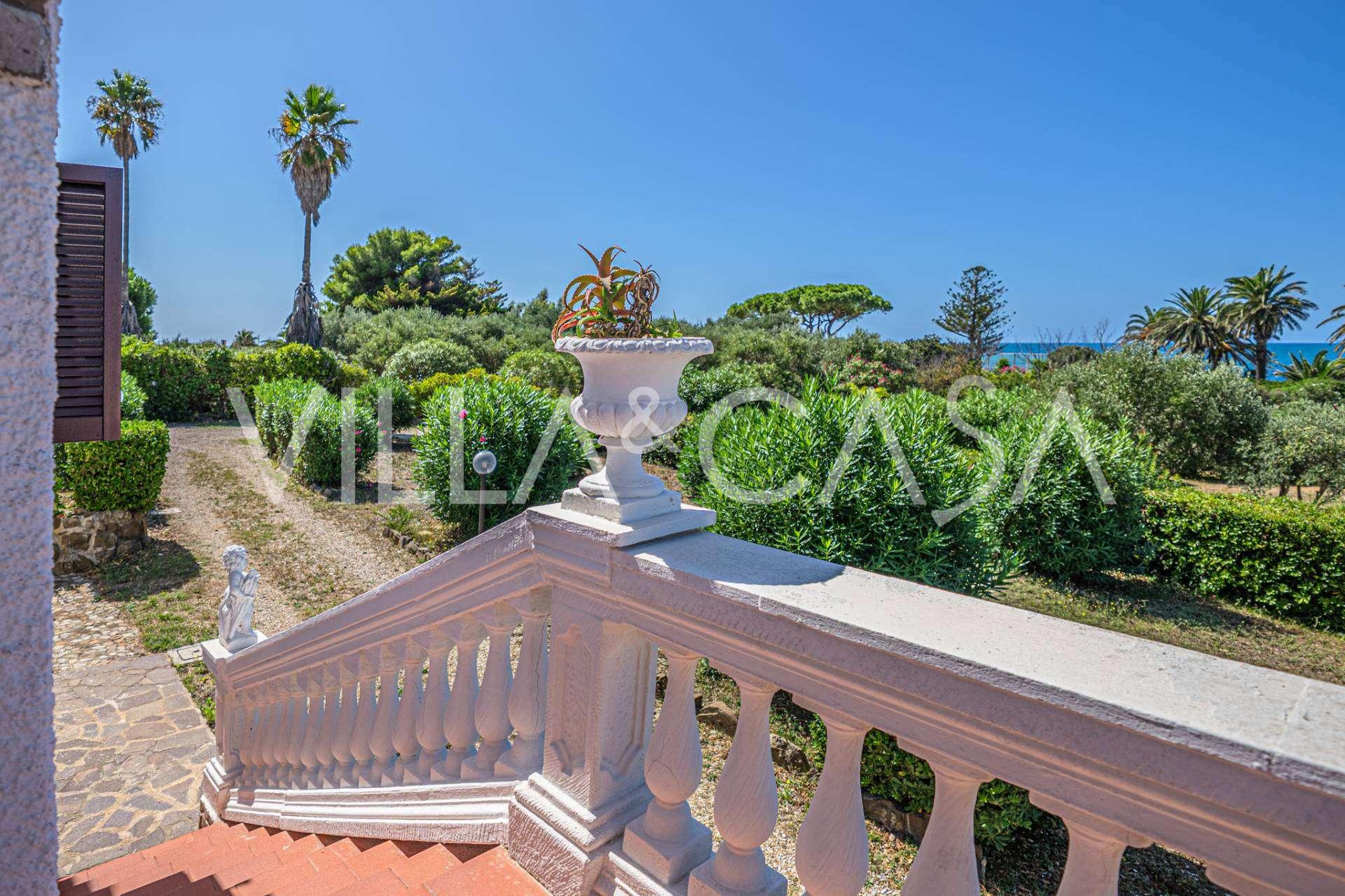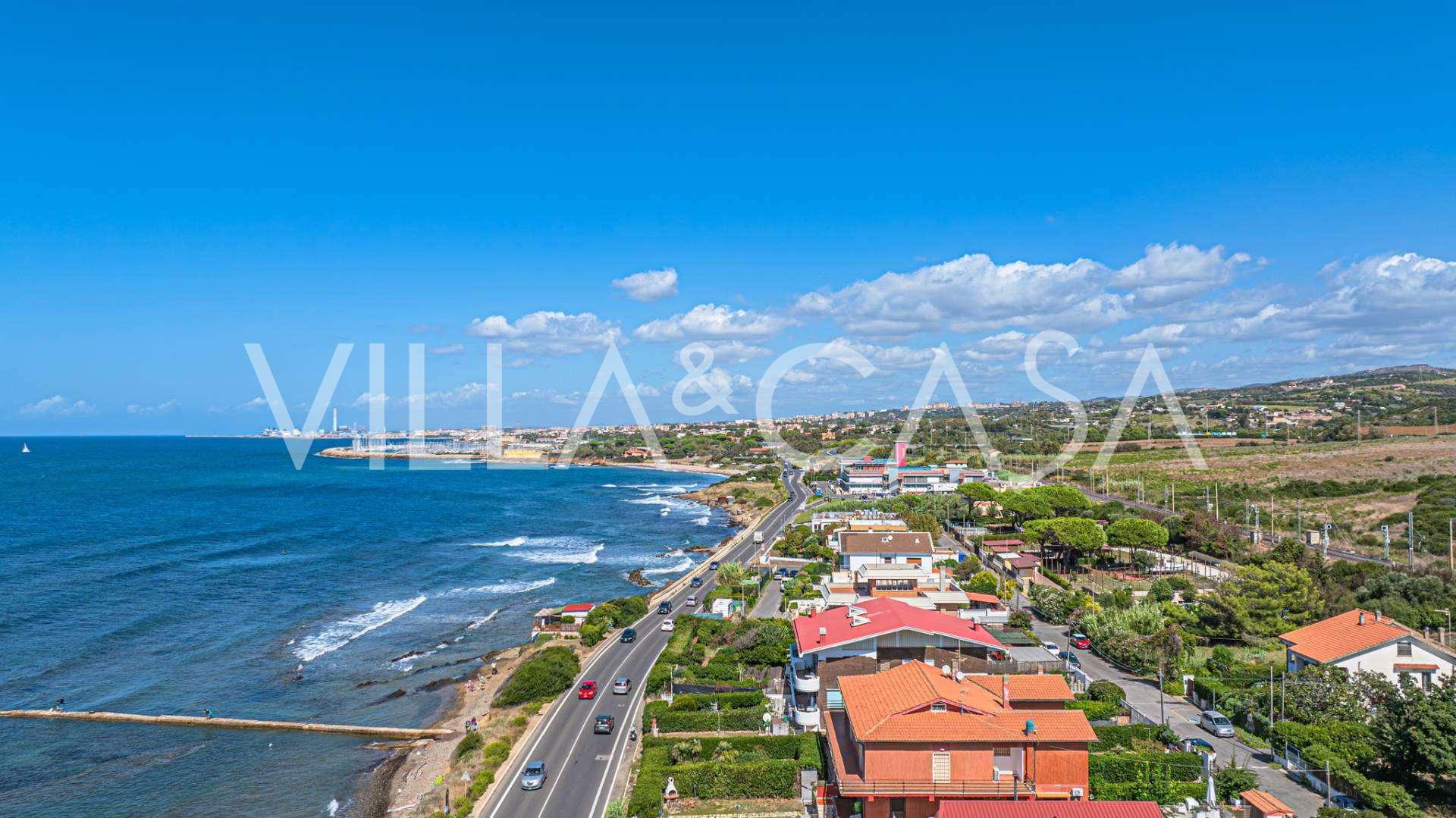 In the heart of the Santa Marinella coastline, just a few steps from the sea, lies a sophisticated residence of rare value—a standalone villa with a total area of approximately 560 square meters, surrounded by a private park of about 6,000 square meters, offering breathtaking panoramic sea views.
