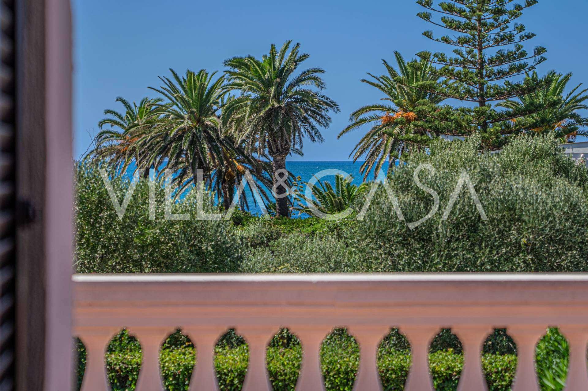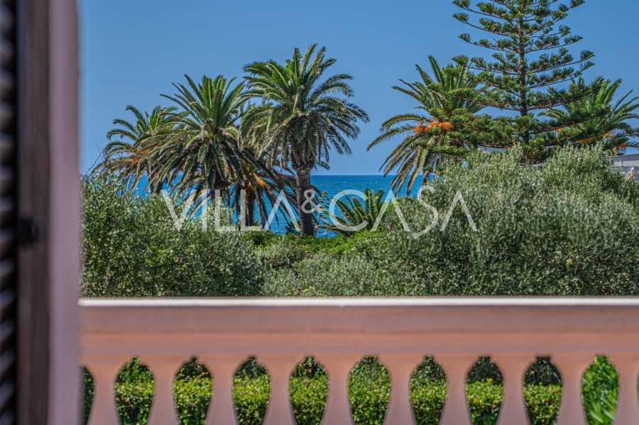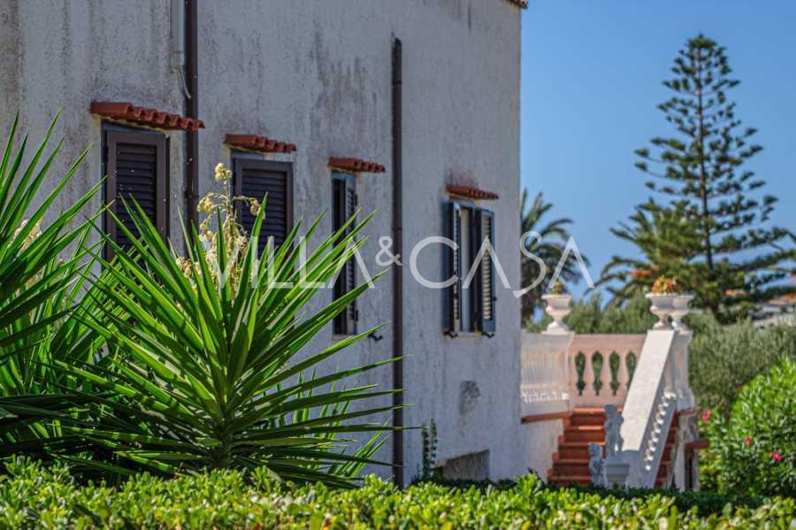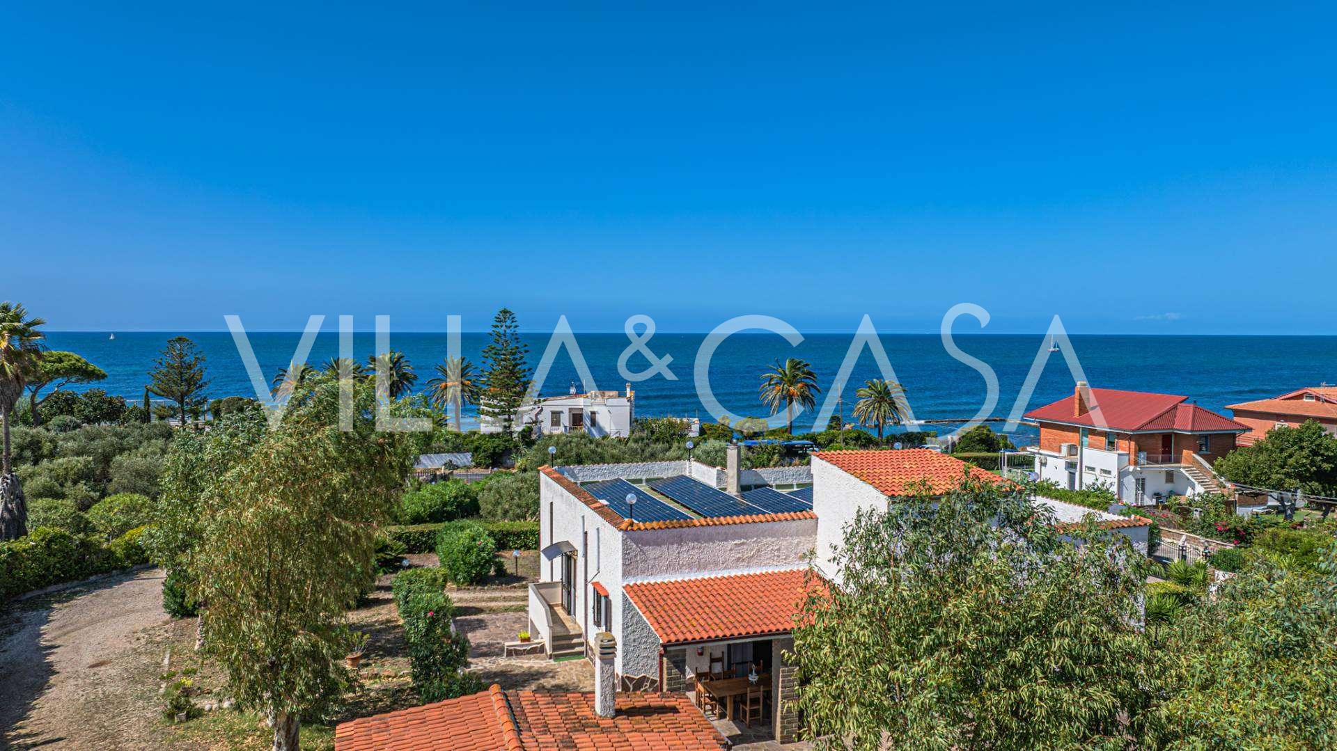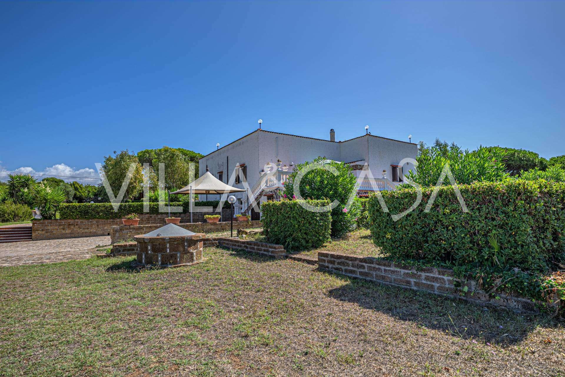 In the heart of the Santa Marinella coastline, just a few steps from the sea, lies a sophisticated residence of rare value—a standalone villa with a total area of approximately 560 square meters, surrounded by a private park of about 6,000 square meters, offering breathtaking panoramic sea views.