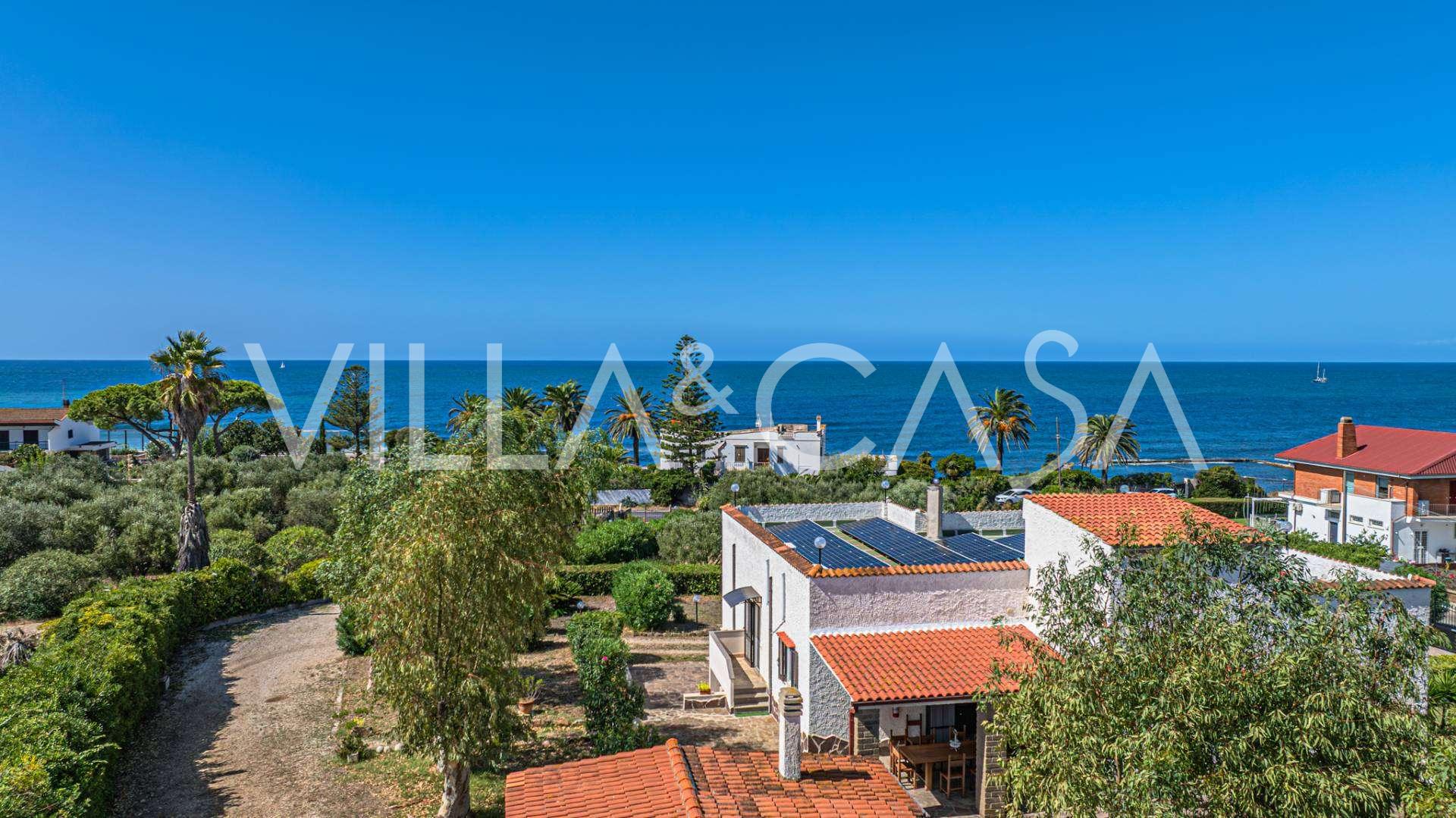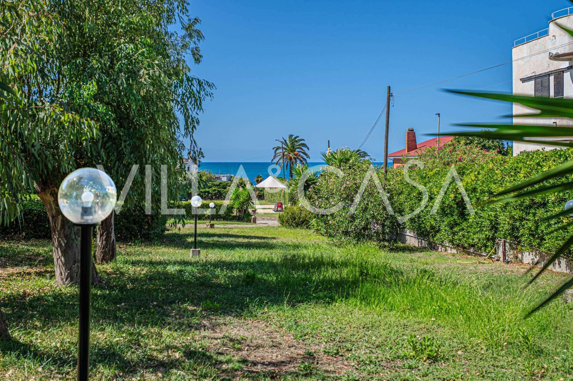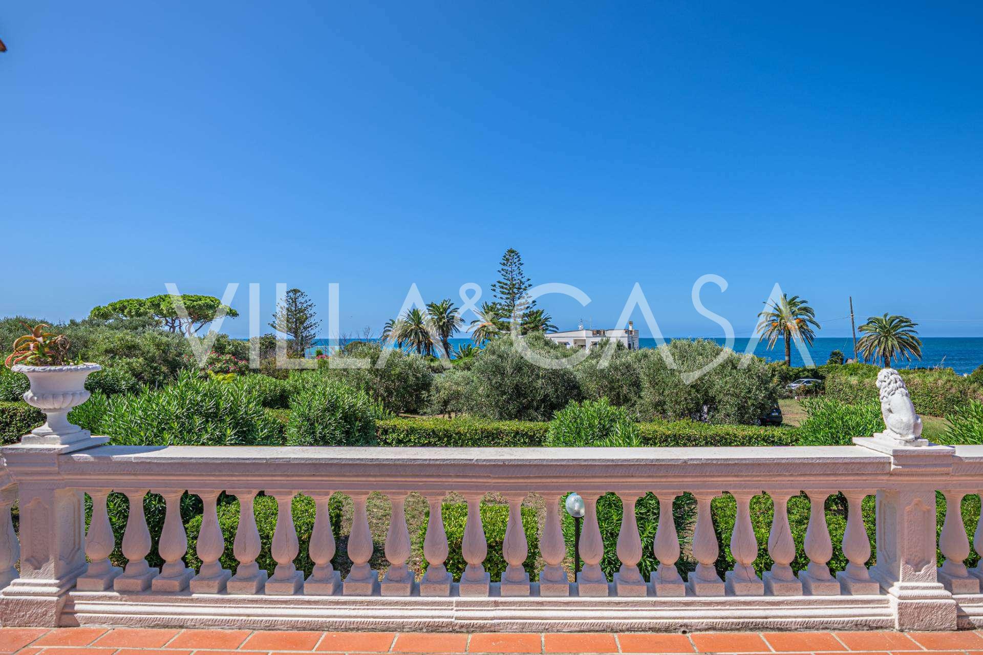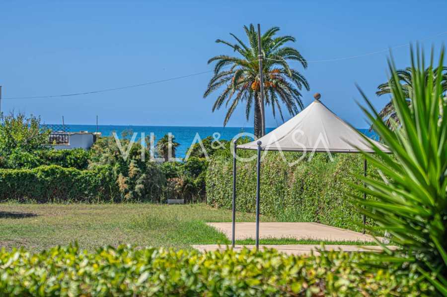 In the heart of the Santa Marinella coastline, just a few steps from the sea, lies a sophisticated residence of rare value—a standalone villa with a total area of approximately 560 square meters, surrounded by a private park of about 6,000 square meters, offering breathtaking panoramic sea views.