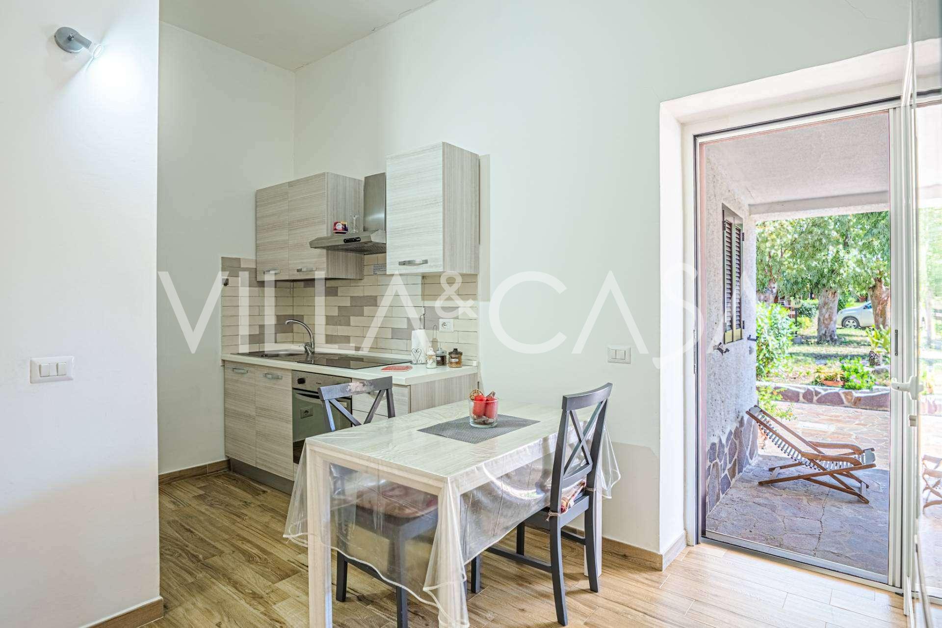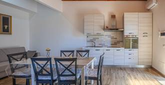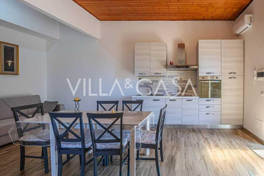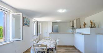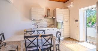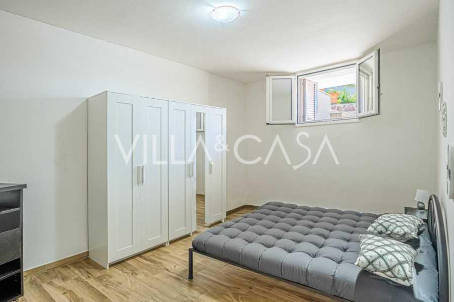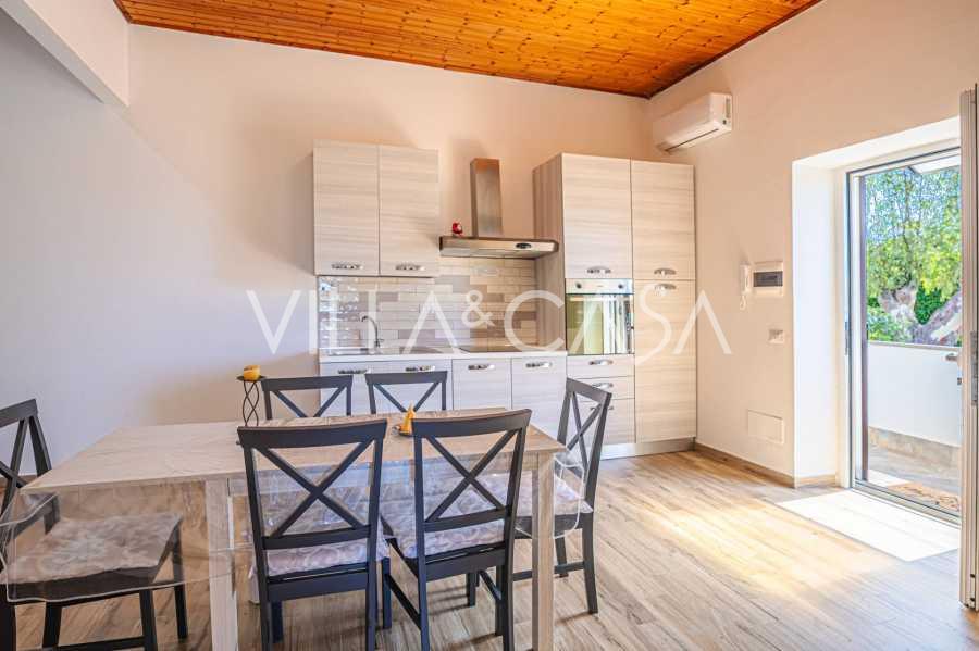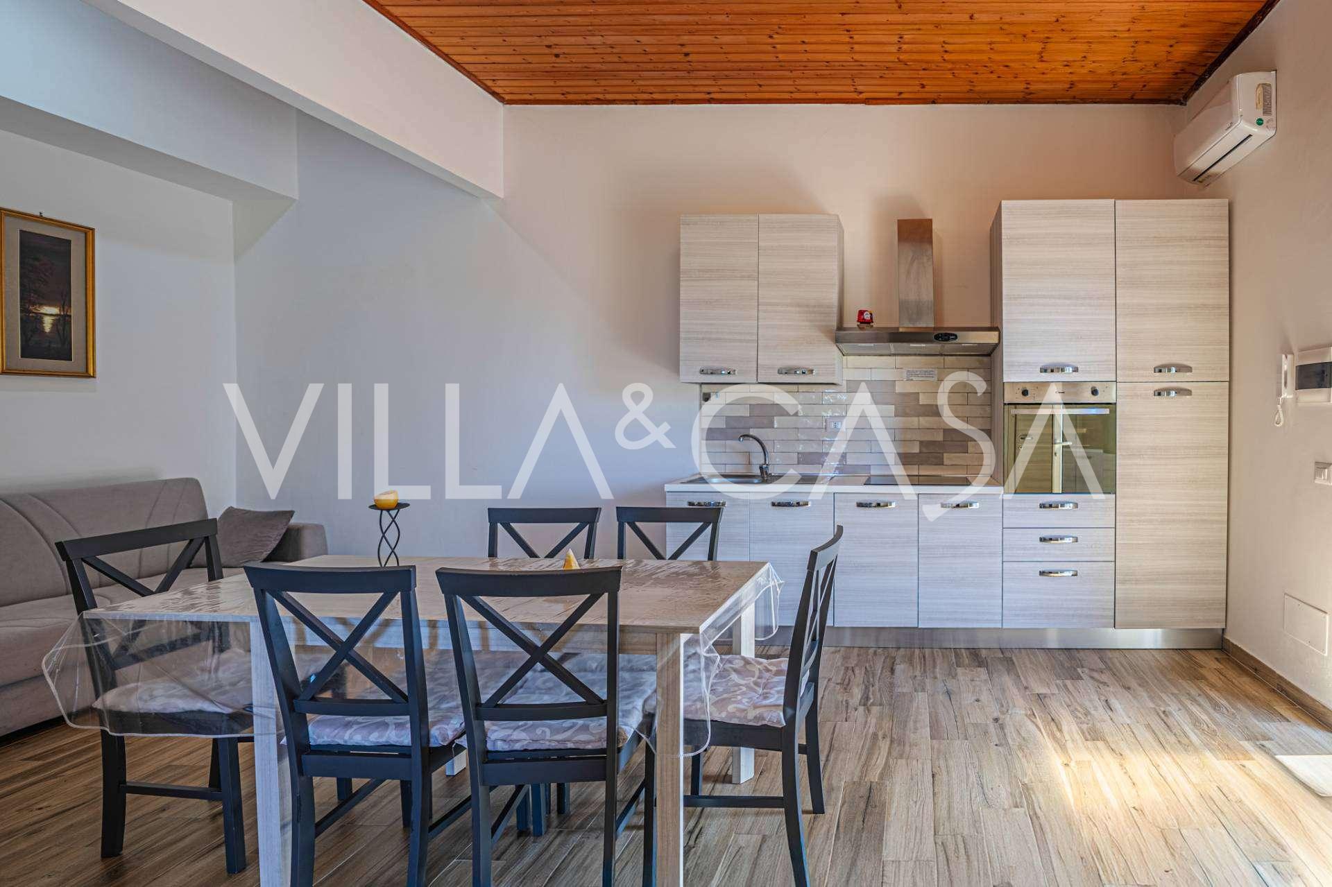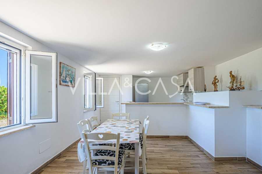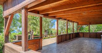 The residence is complemented by auxiliary buildings: a separate building with a bathroom, kitchenette, wood-burning stove, laundry, and storage room, as well as an independent apartment of about 24 square meters with its own bedroom, bathroom, and kitchenette. It is adorned with a wooden gazebo of about 100 square meters with a canopy, offering picturesque sea views. The apartment is characterized by seclusion and excellent insulation, has two entrances with automatic gates, is in impeccable condition, fully furnished, and equipped with air conditioning and a photovoltaic system.