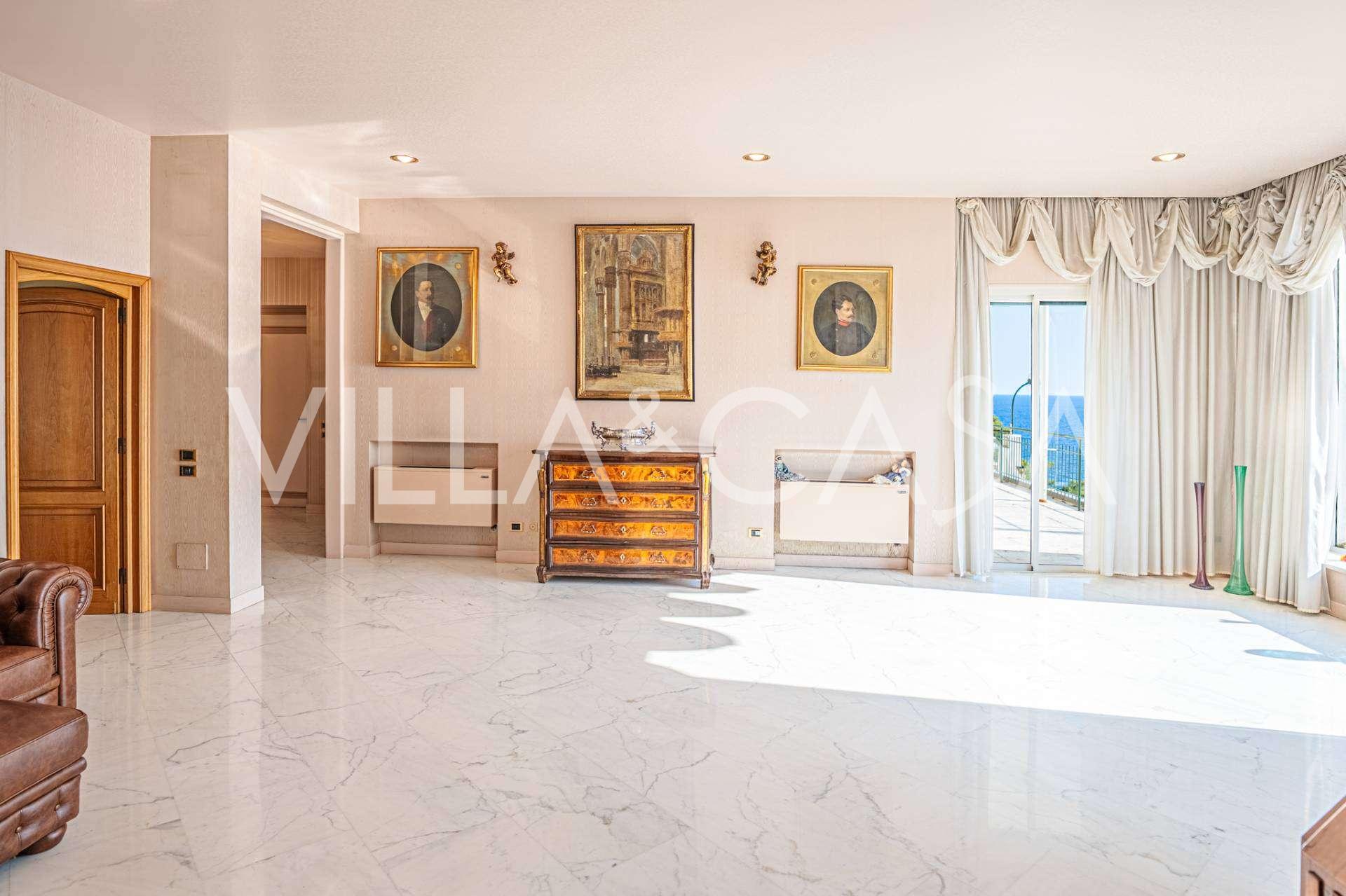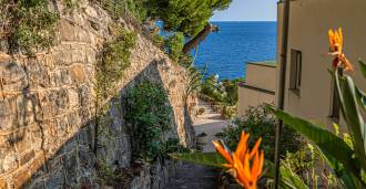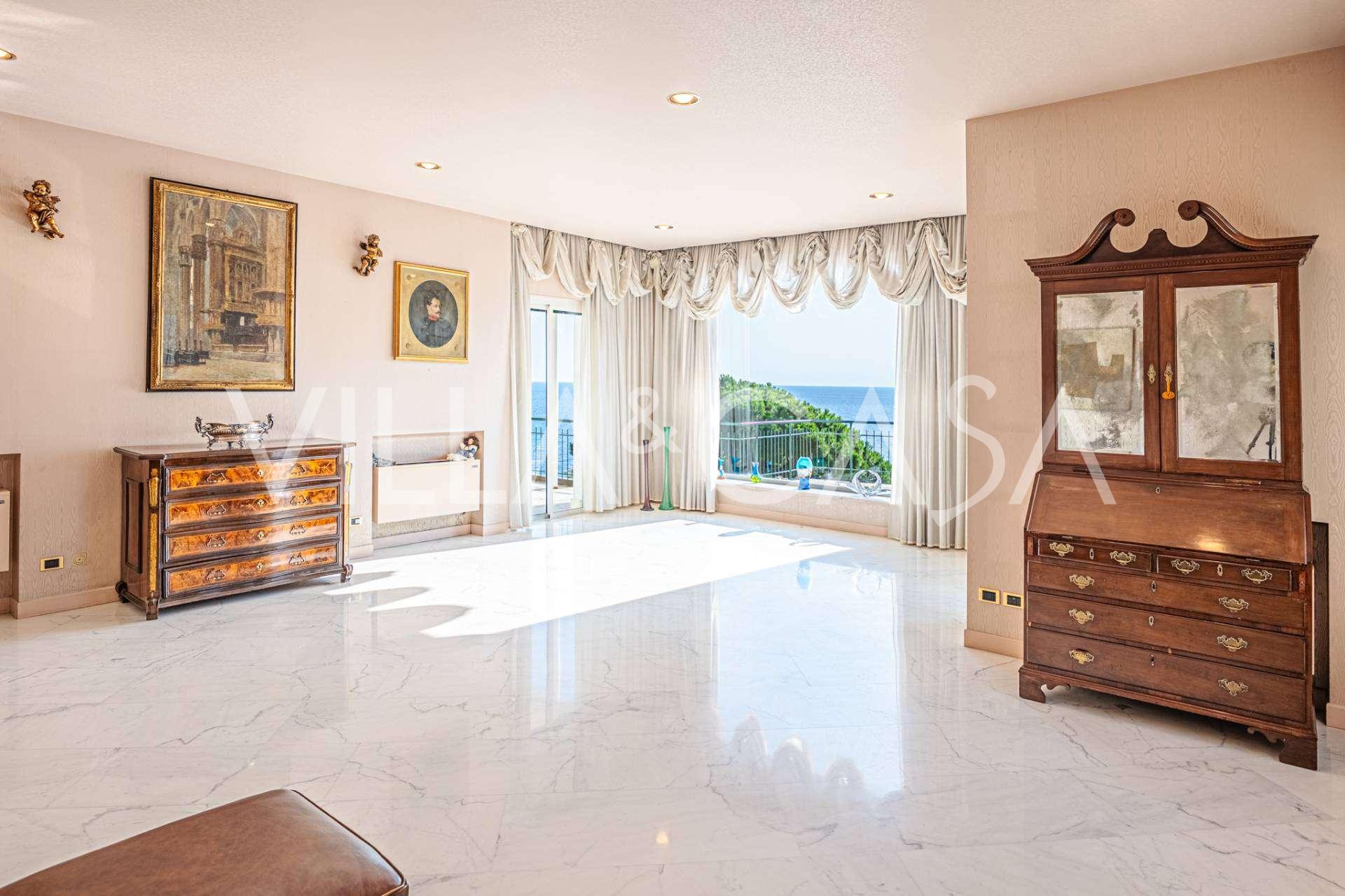 Thanks to its elevated location, the residence offers magnificent panoramic views of the sea, the coastline, and the endless horizons of the Ligurian Riviera.