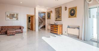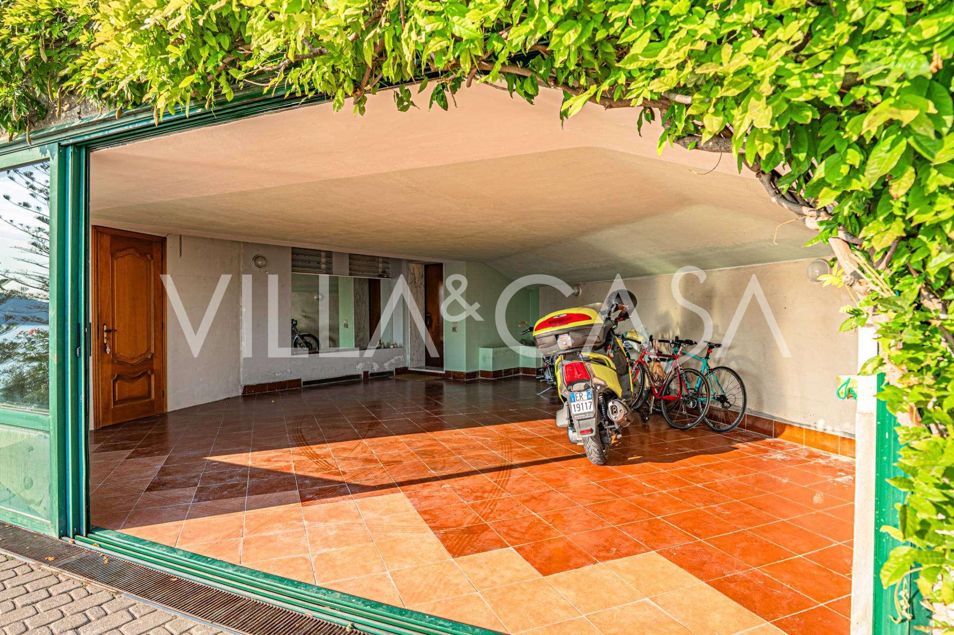 Spacious living room with sea view, separate kitchen, pantry, wine cellar, three utility rooms, and a garage for two cars.
