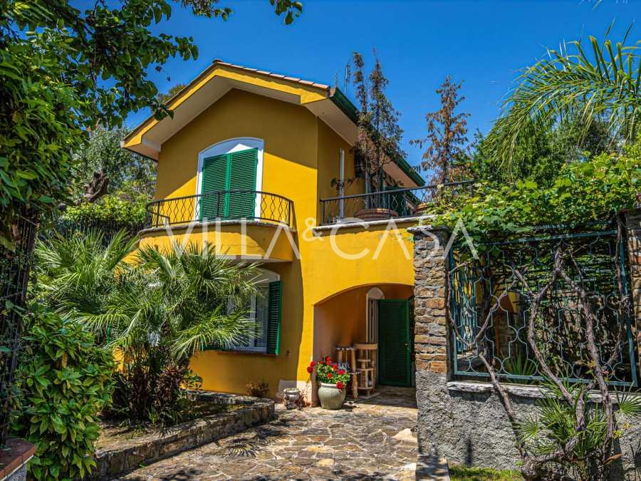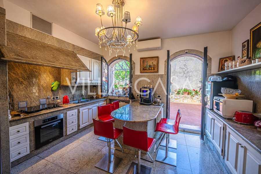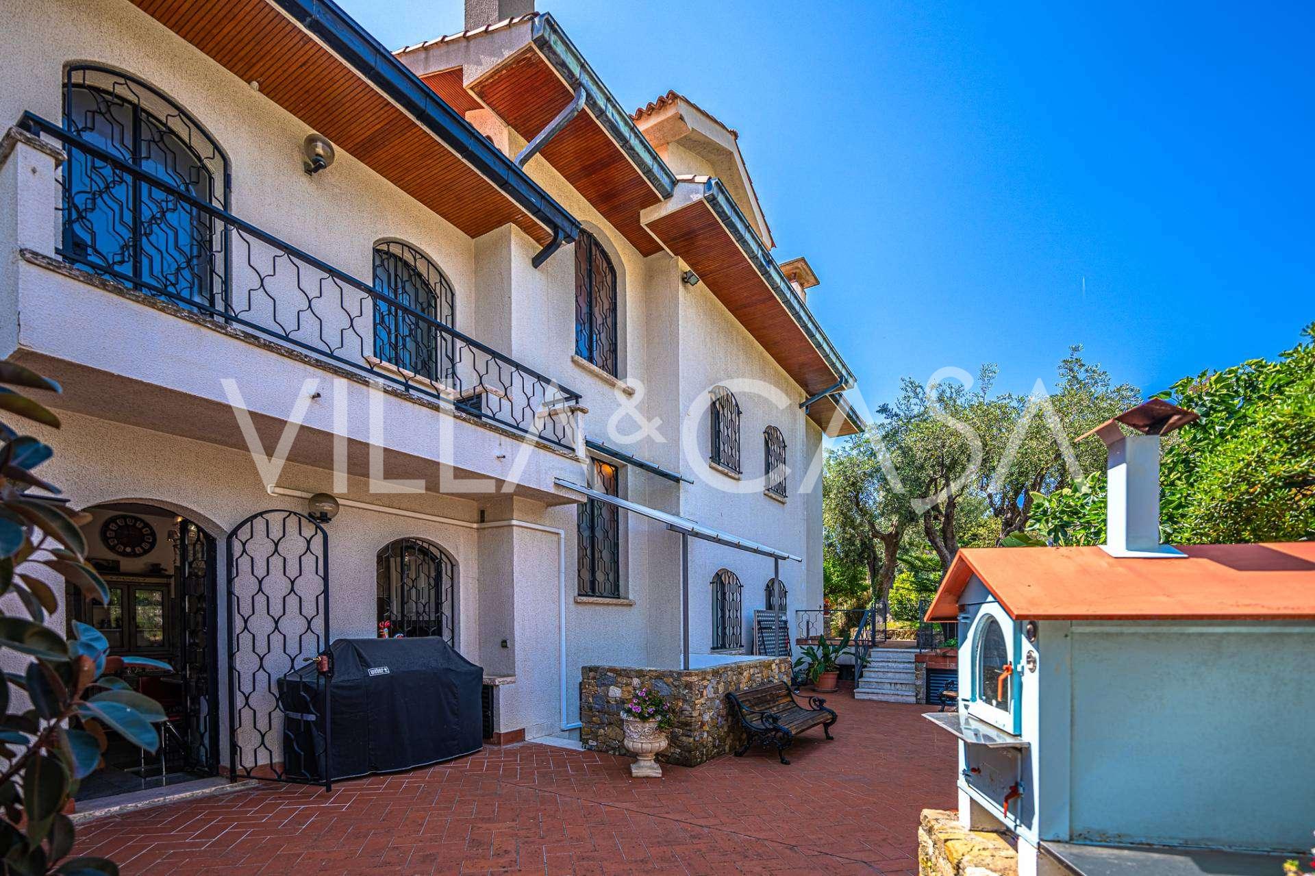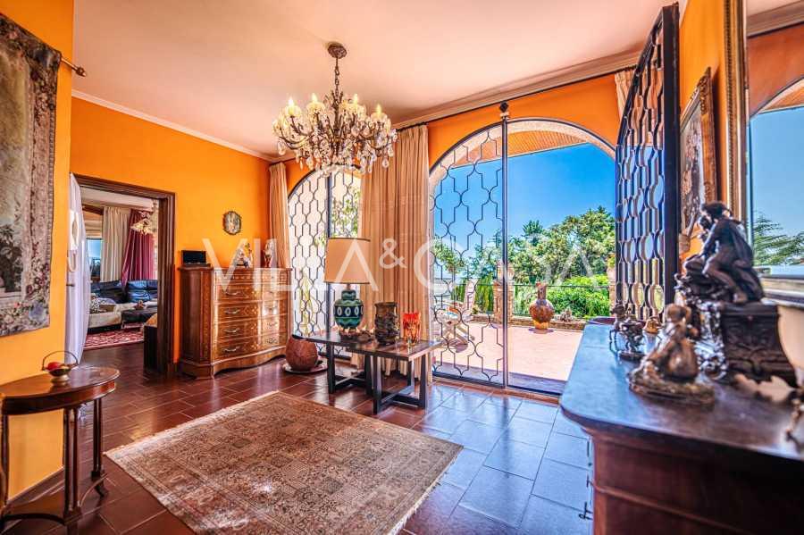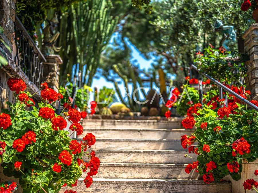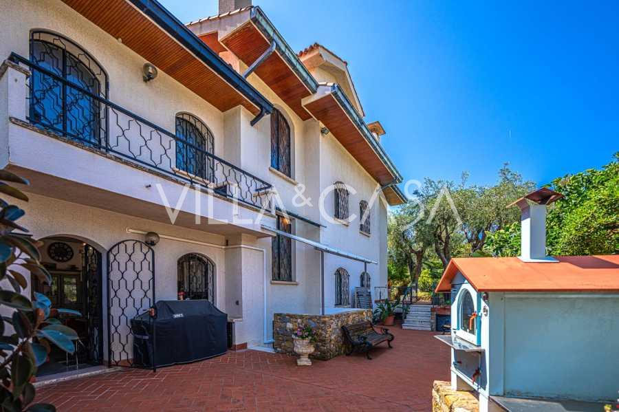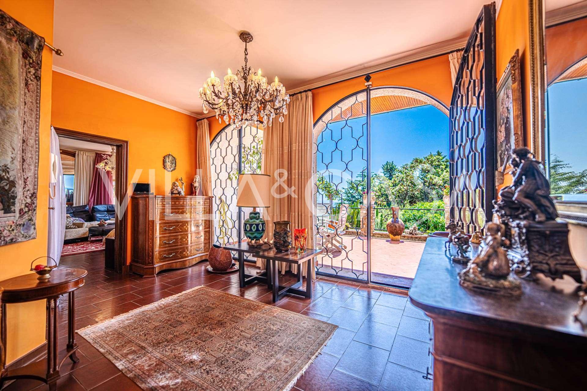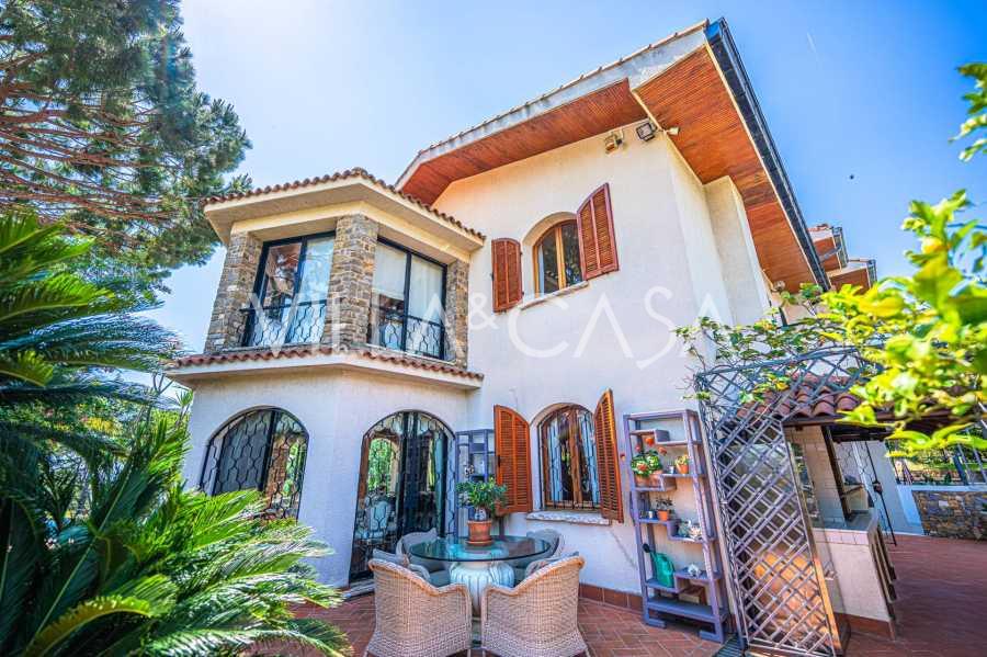 Exclusive offer! A spacious villa of approximately 608 m2 with a sea view, as well as a two-story guest house of about 141 m2, is for sale in a quiet and prestigious area of Sanremo. The villa has four floors and includes: