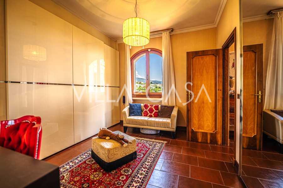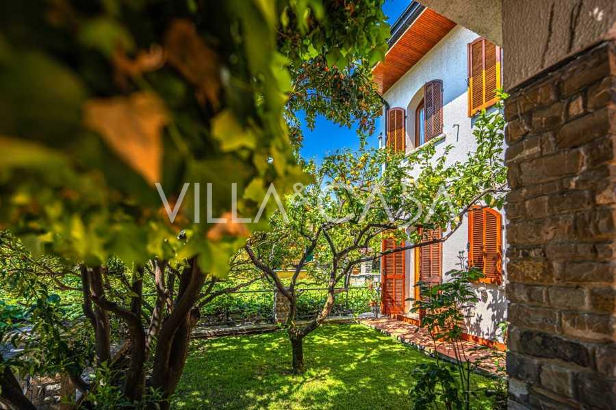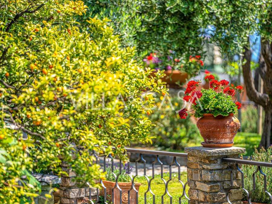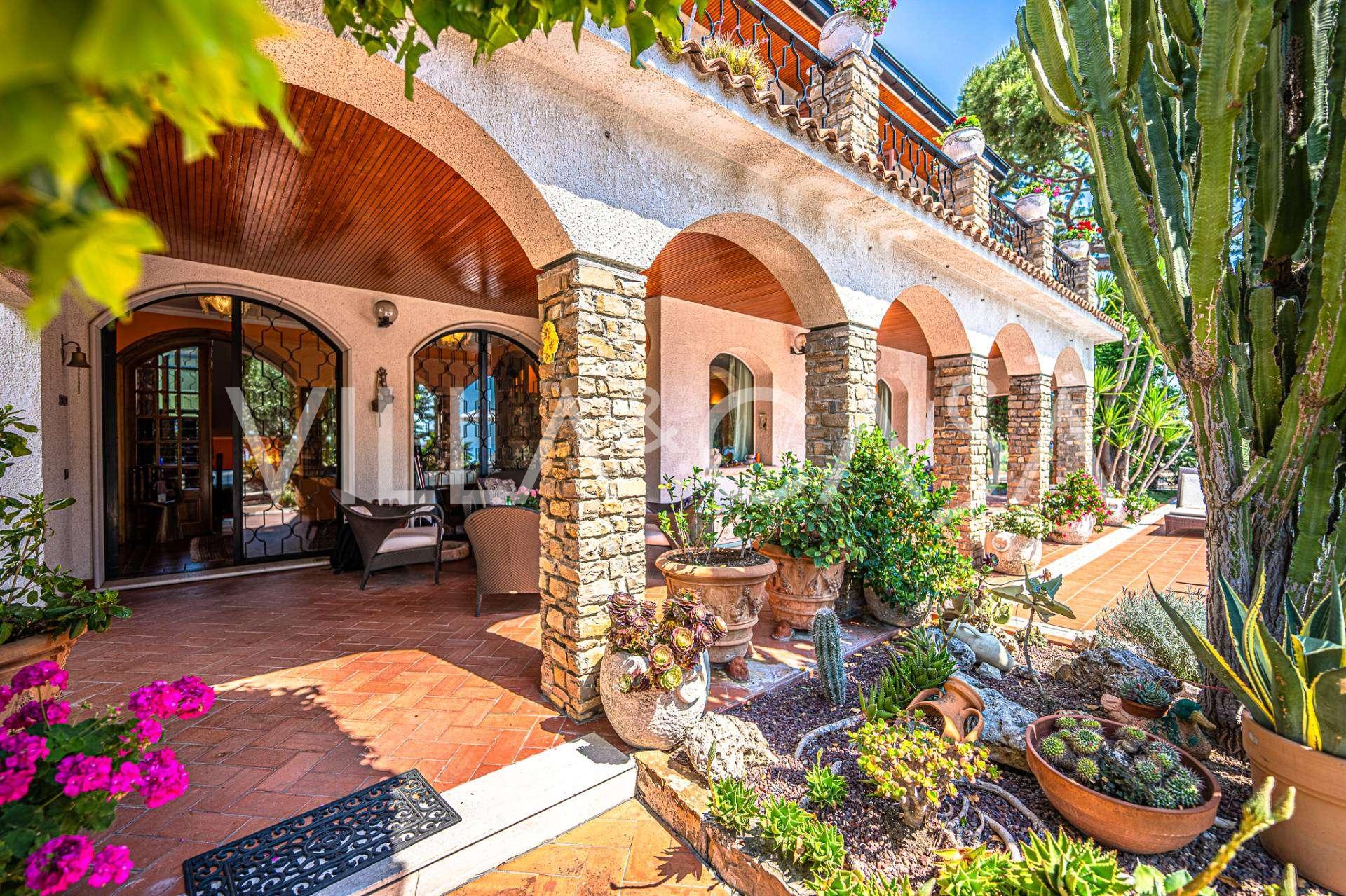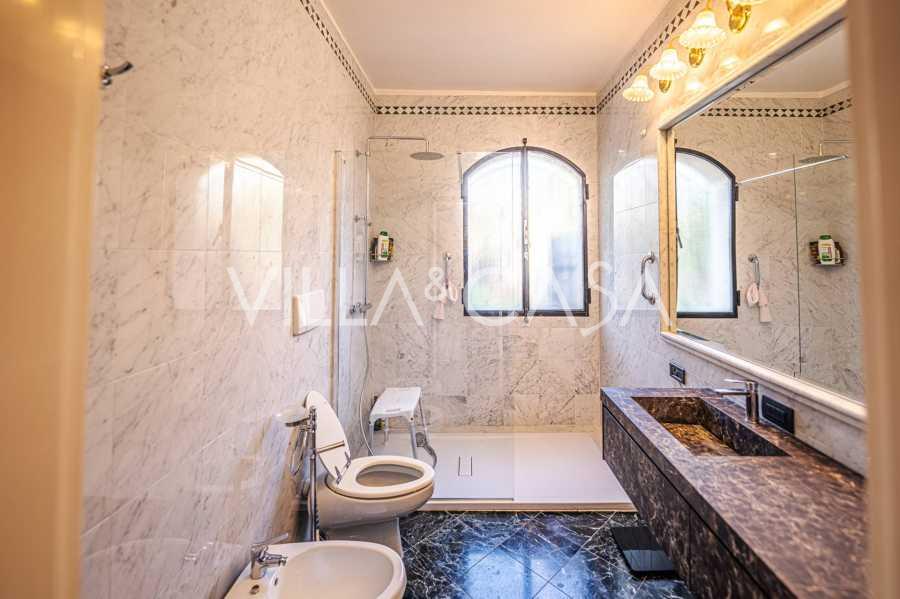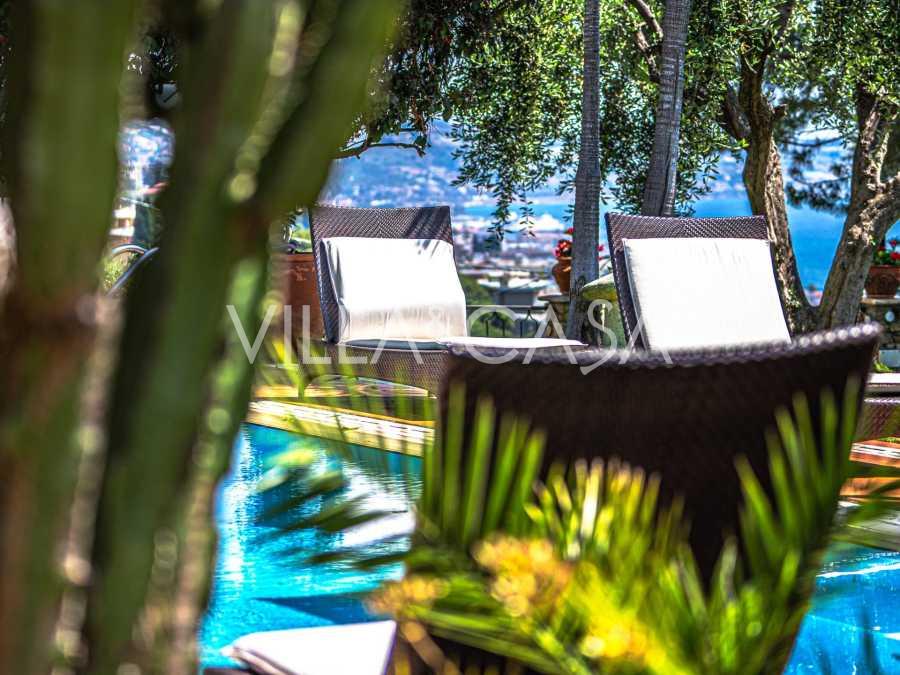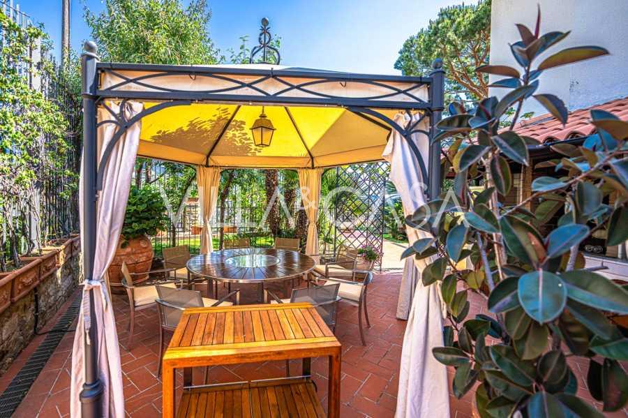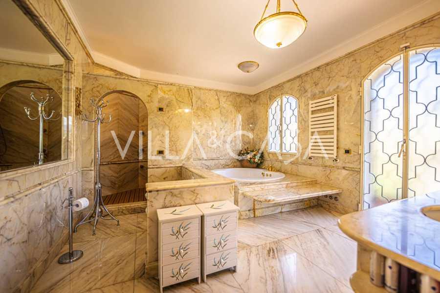 Exclusive offer! A spacious villa of approximately 608 m2 with a sea view, as well as a two-story guest house of about 141 m2, is for sale in a quiet and prestigious area of Sanremo. The villa has four floors and includes: