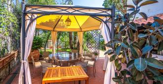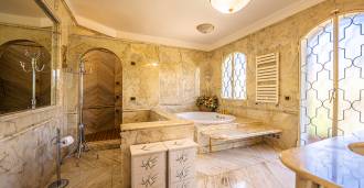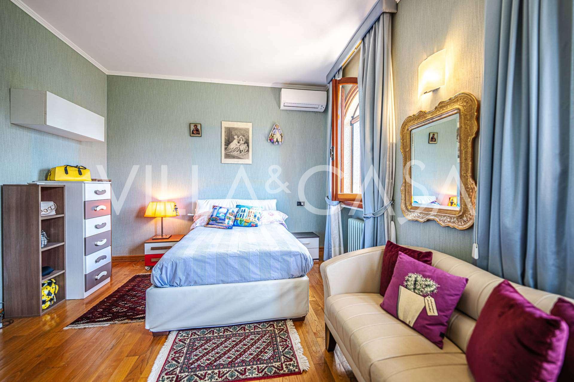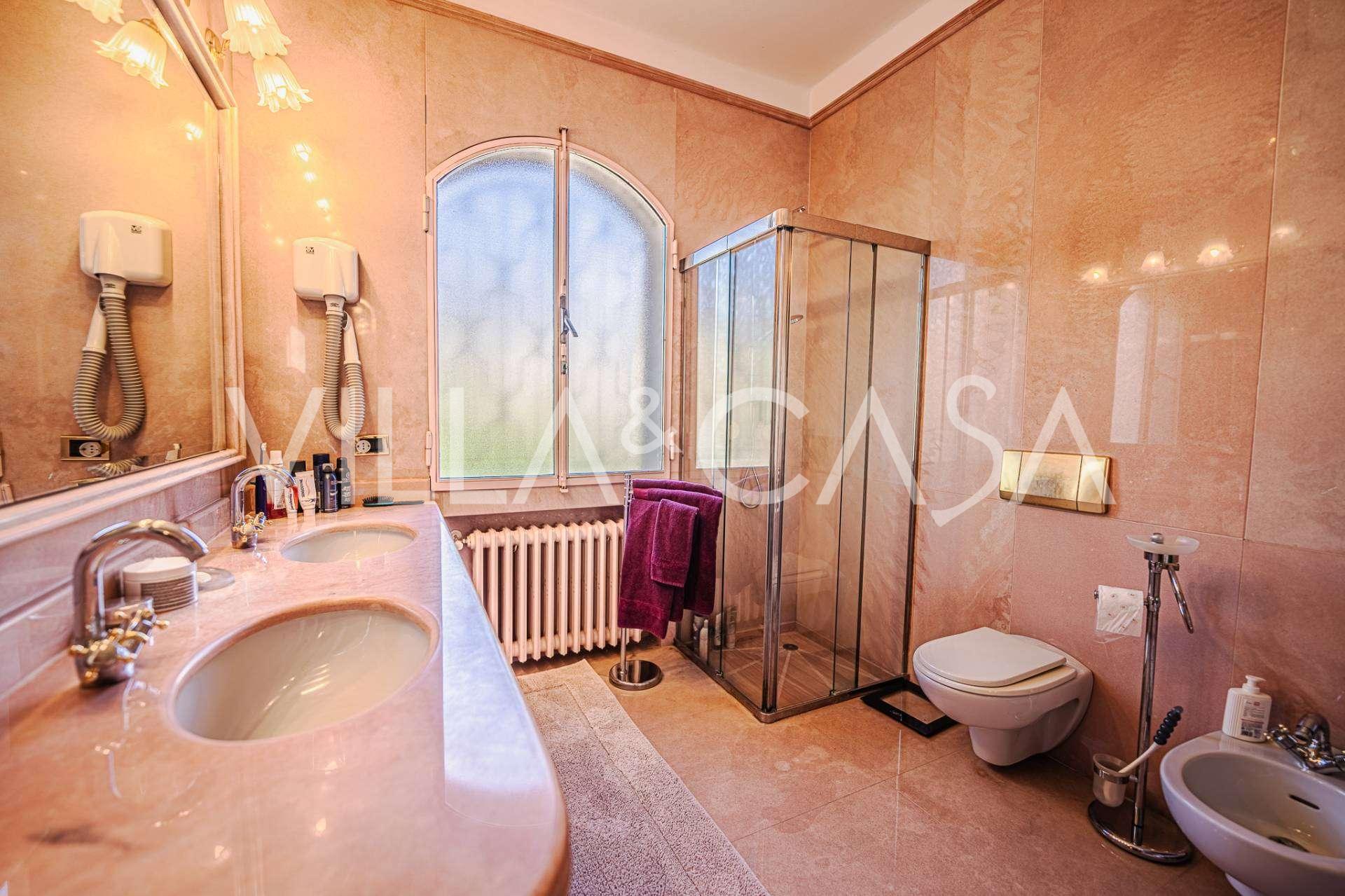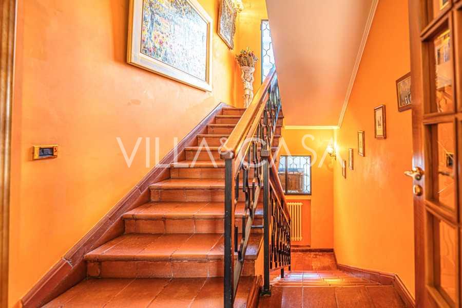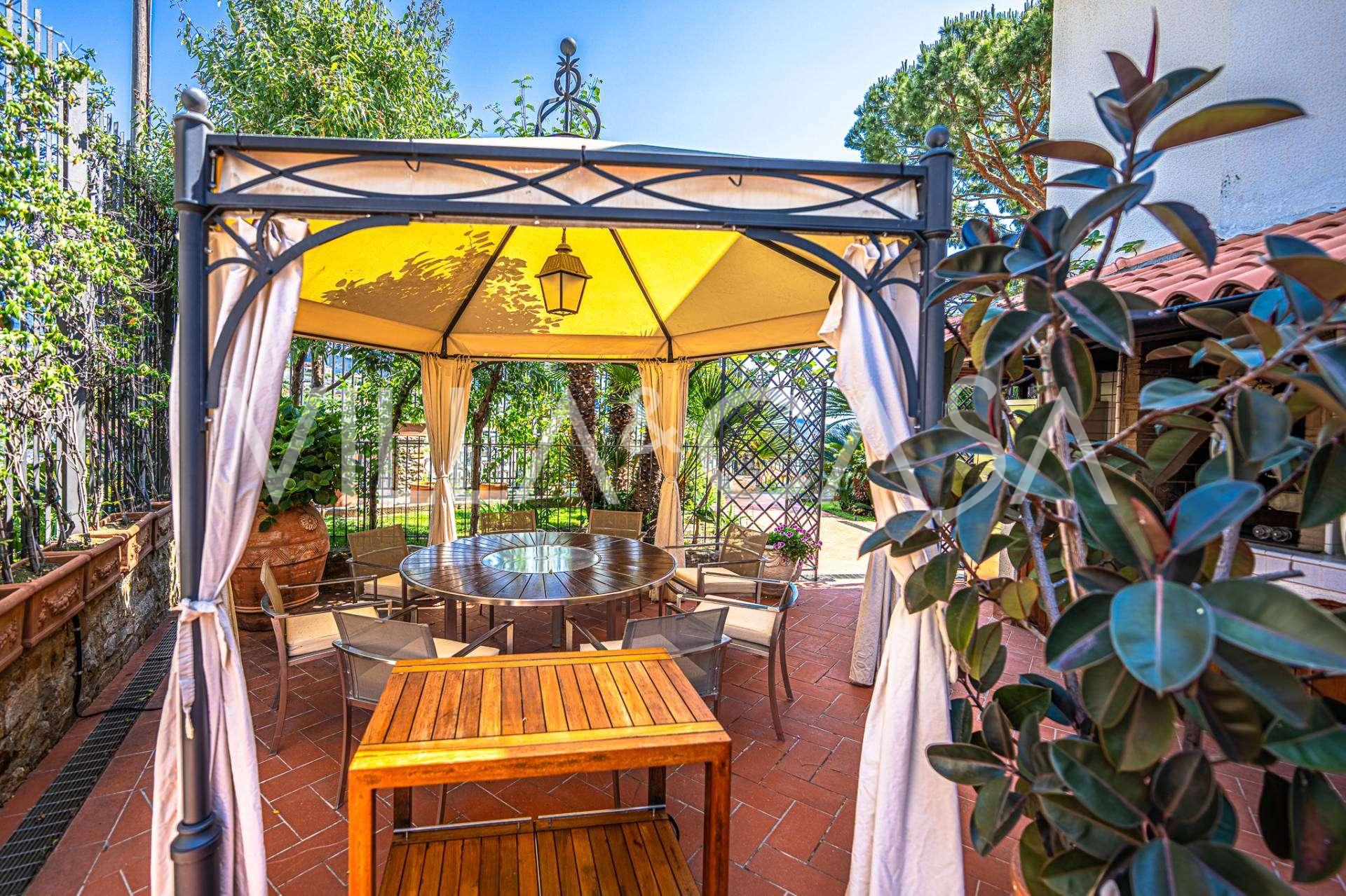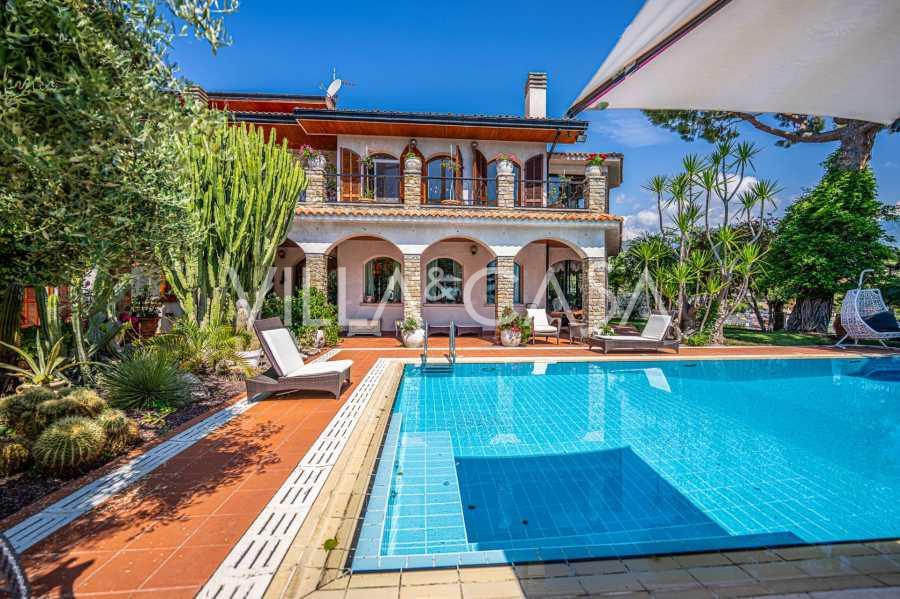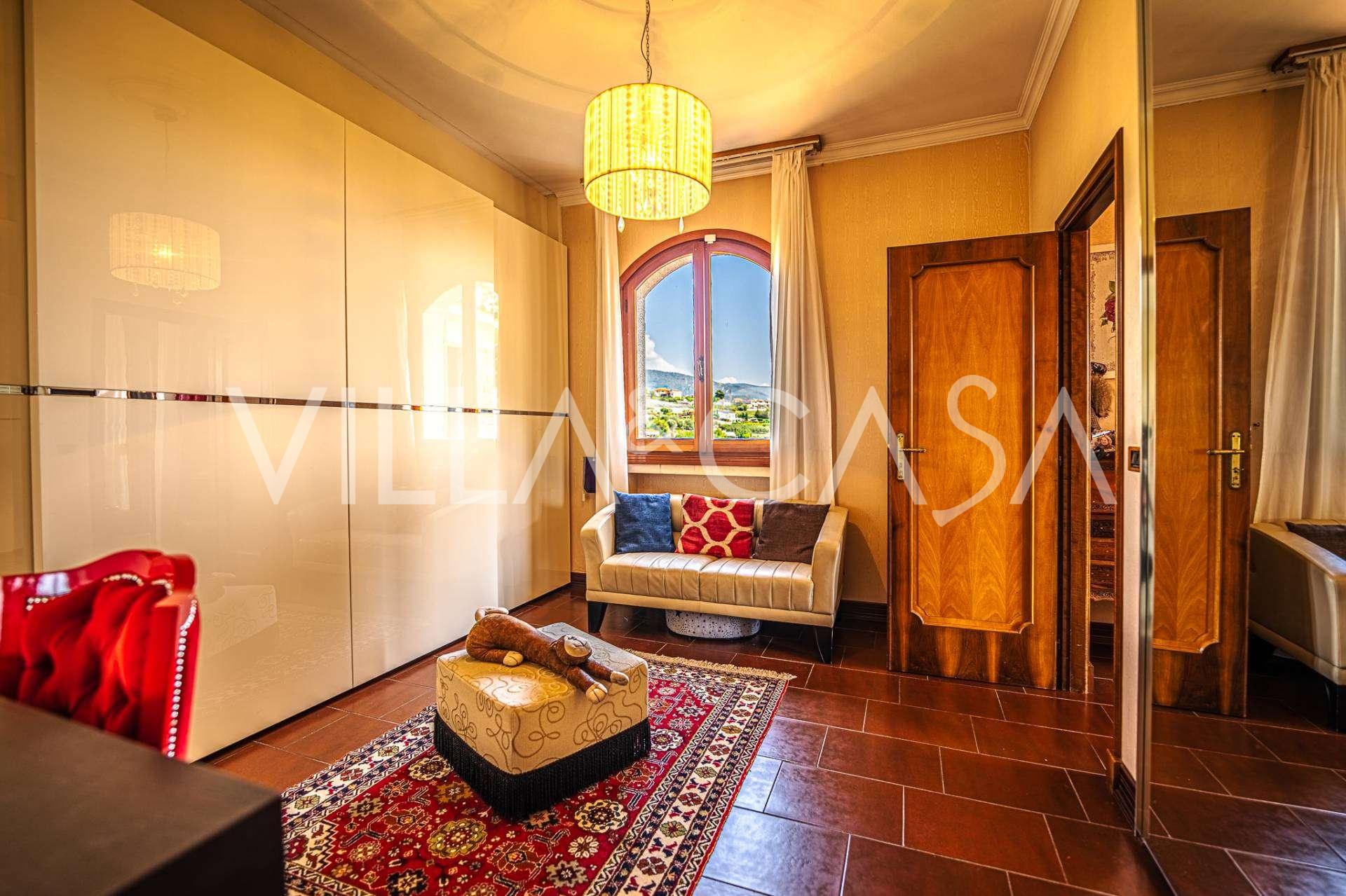 Exclusive offer! A spacious villa of approximately 608 m2 with a sea view, as well as a two-story guest house of about 141 m2, is for sale in a quiet and prestigious area of Sanremo. The villa has four floors and includes: