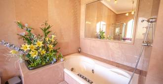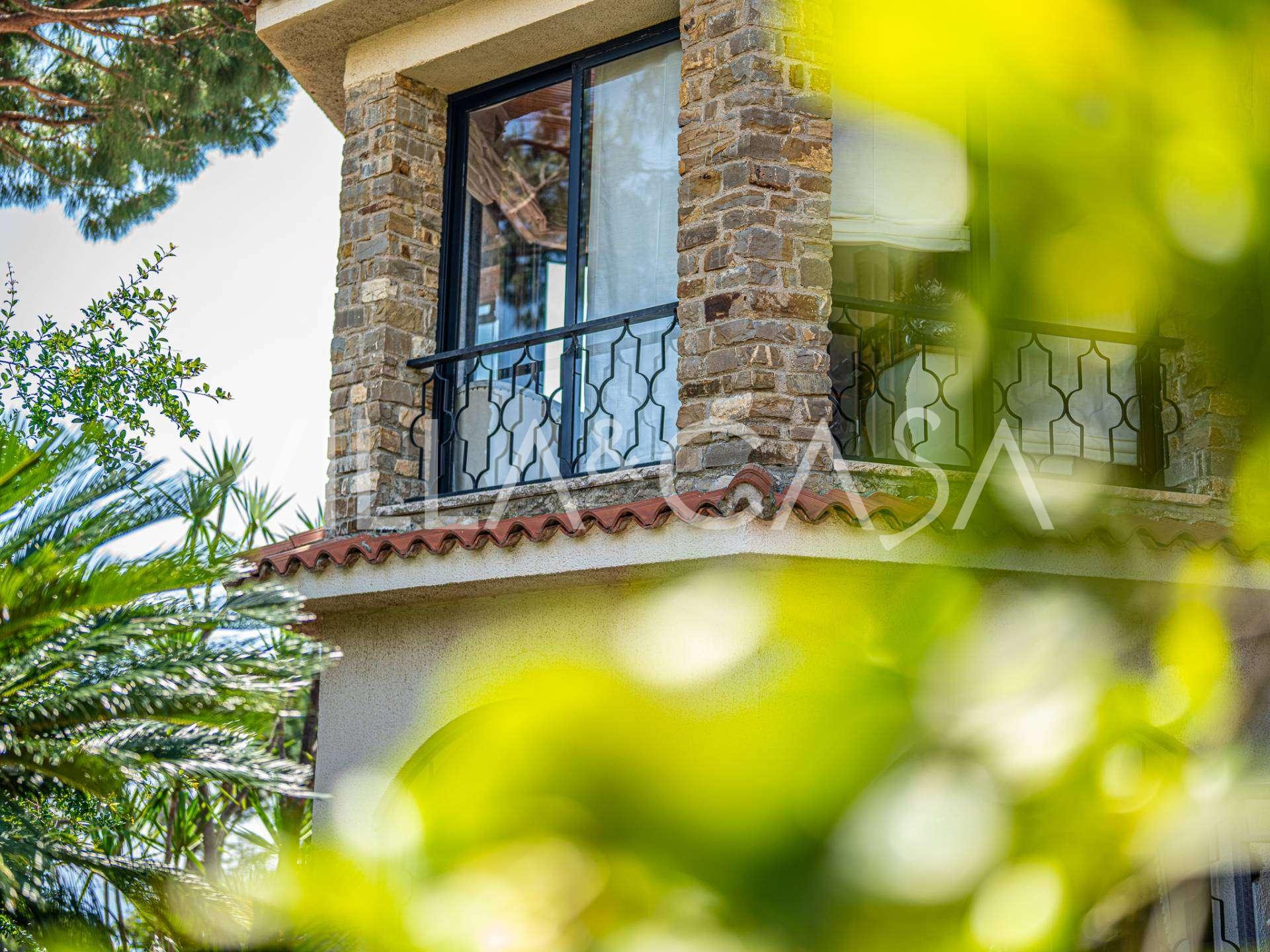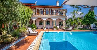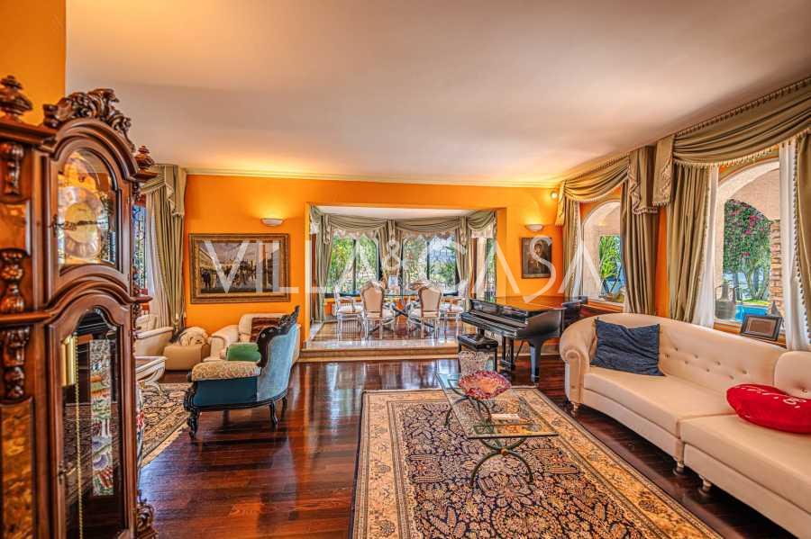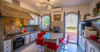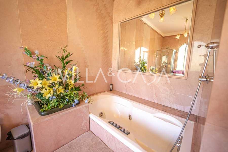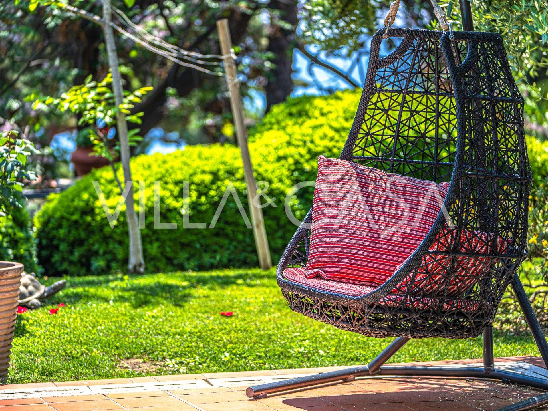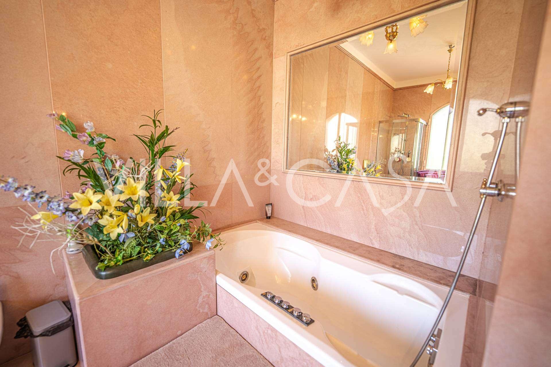 The villa is in perfect condition and does not require renovation. It is equipped with an alarm system, air conditioning, high-quality wooden windows, and a large swimming pool with a hot tub.