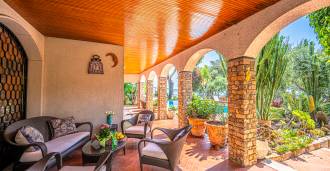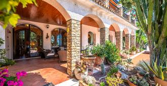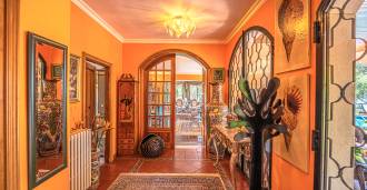 Ground floor: A spacious covered terrace with arches and sea view, hall, large room with fireplace, living room with access to the garden, kitchen also with access to the garden and relaxation area, two bedrooms, two bathrooms.