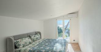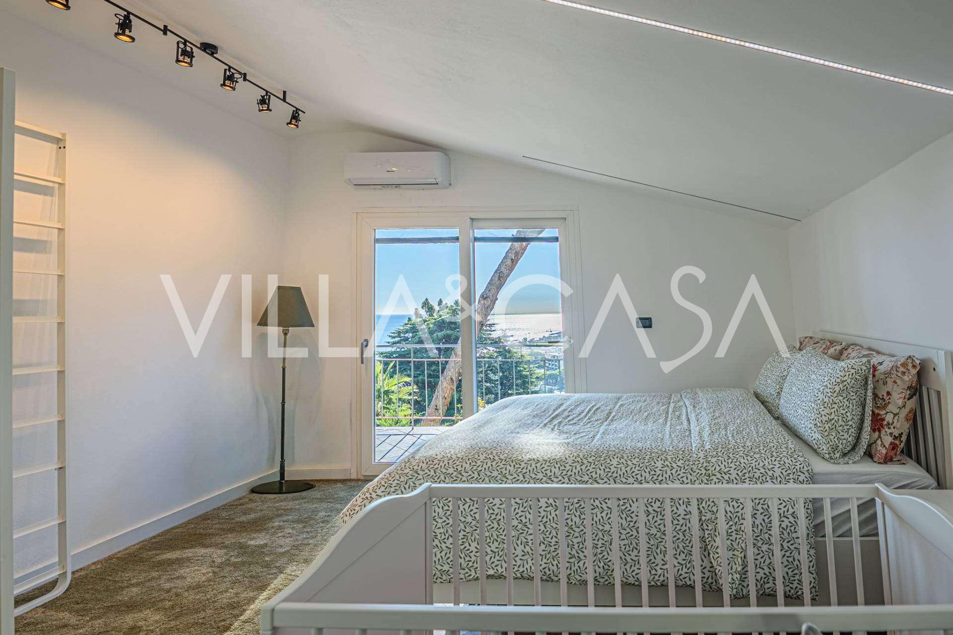 The upper floor is dedicated to the private area with two spacious bedrooms, each opening onto a terrace with stunning panoramic views. The morning sunrises and evening sunsets reflecting in the Ligurian Sea create an atmosphere of complete harmony and romance.