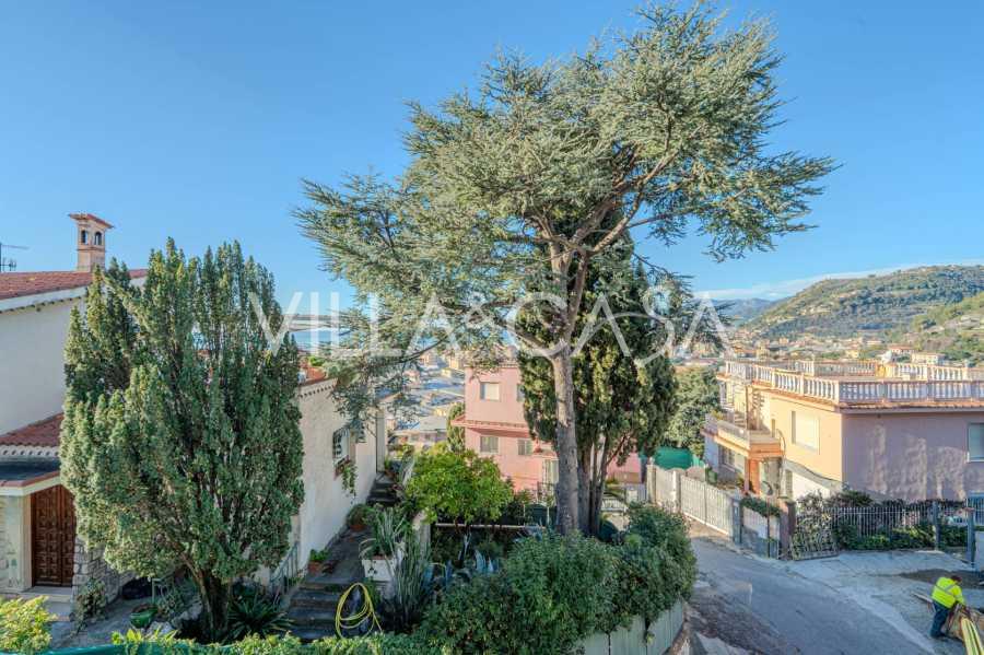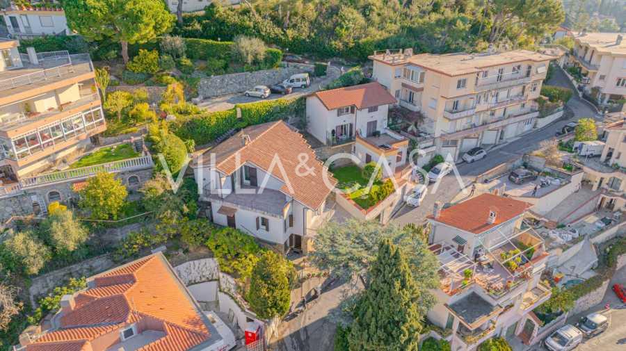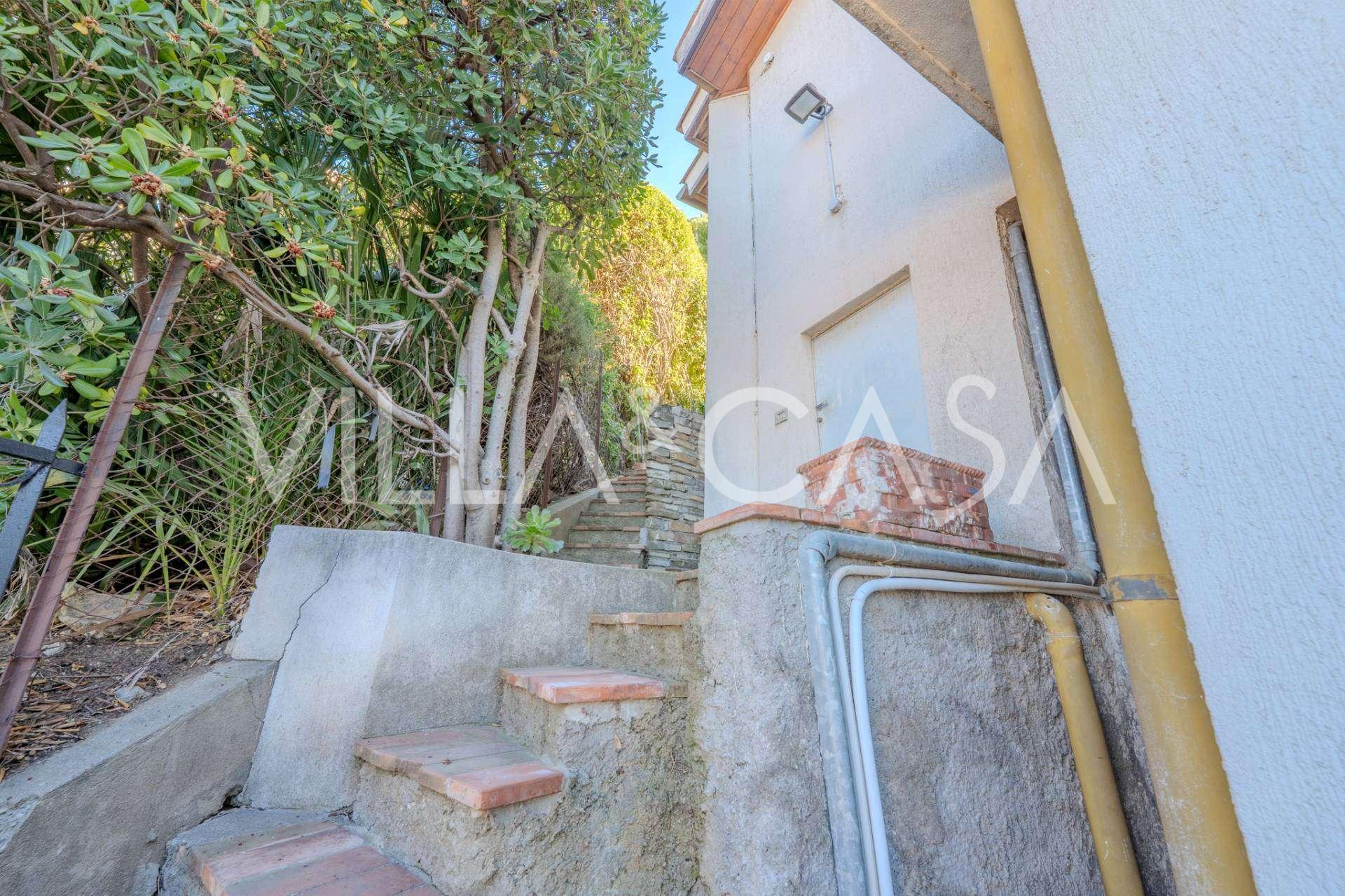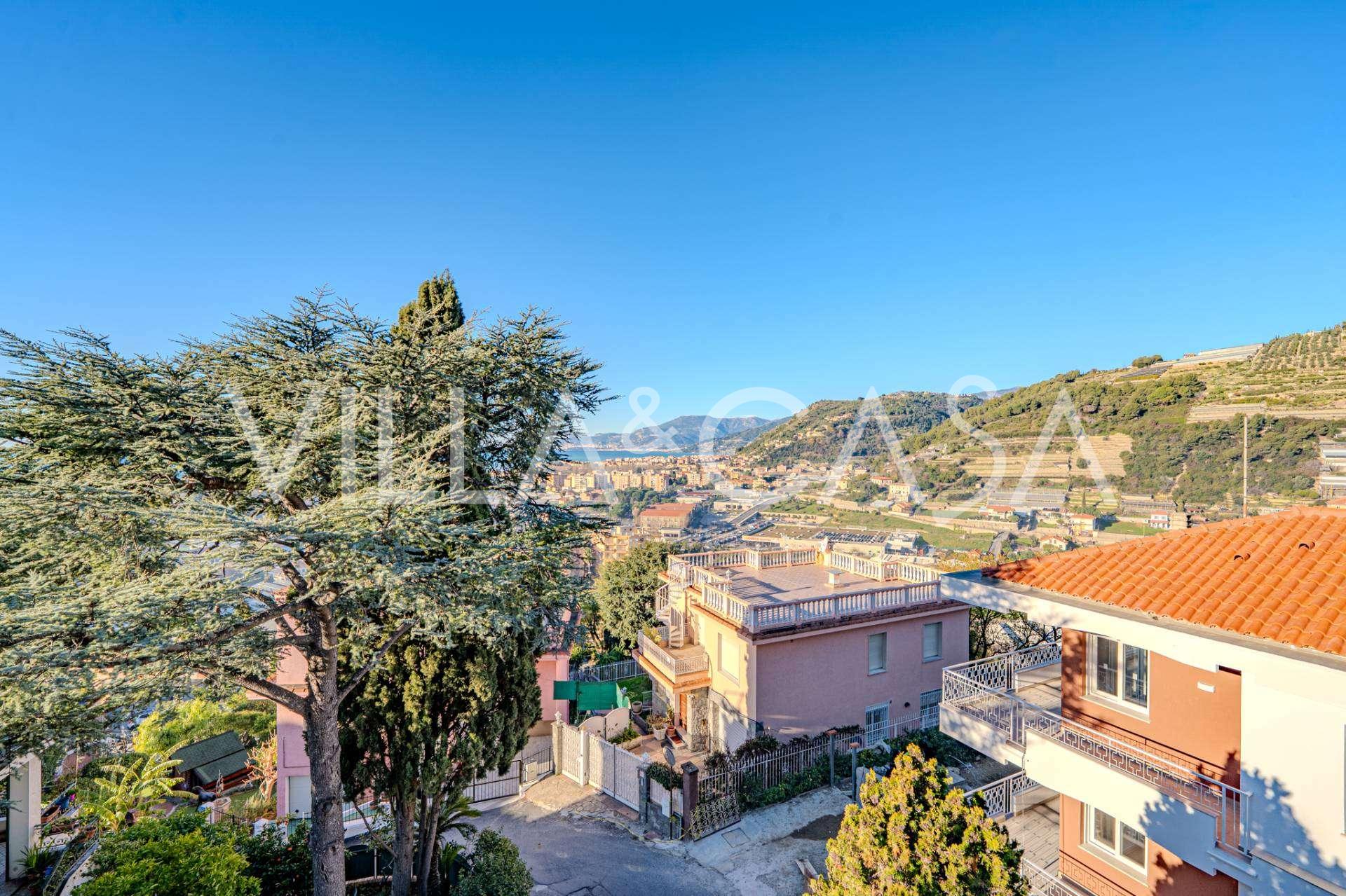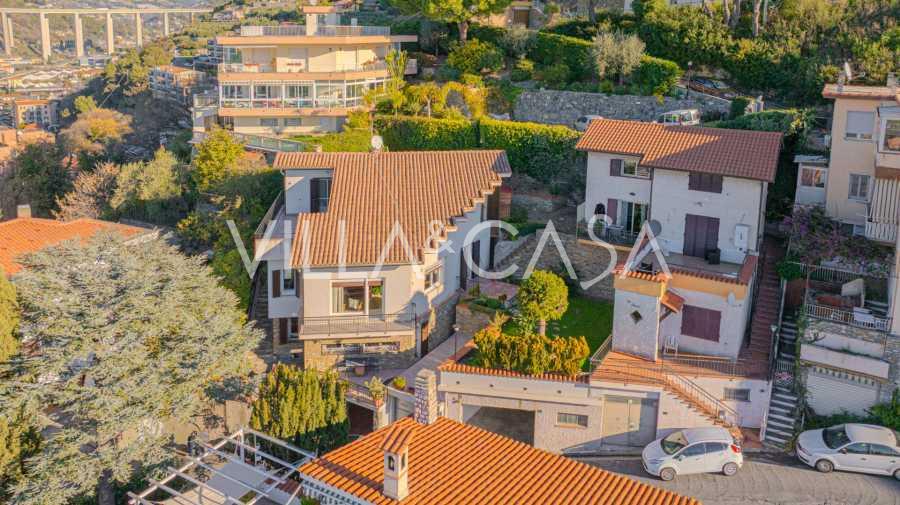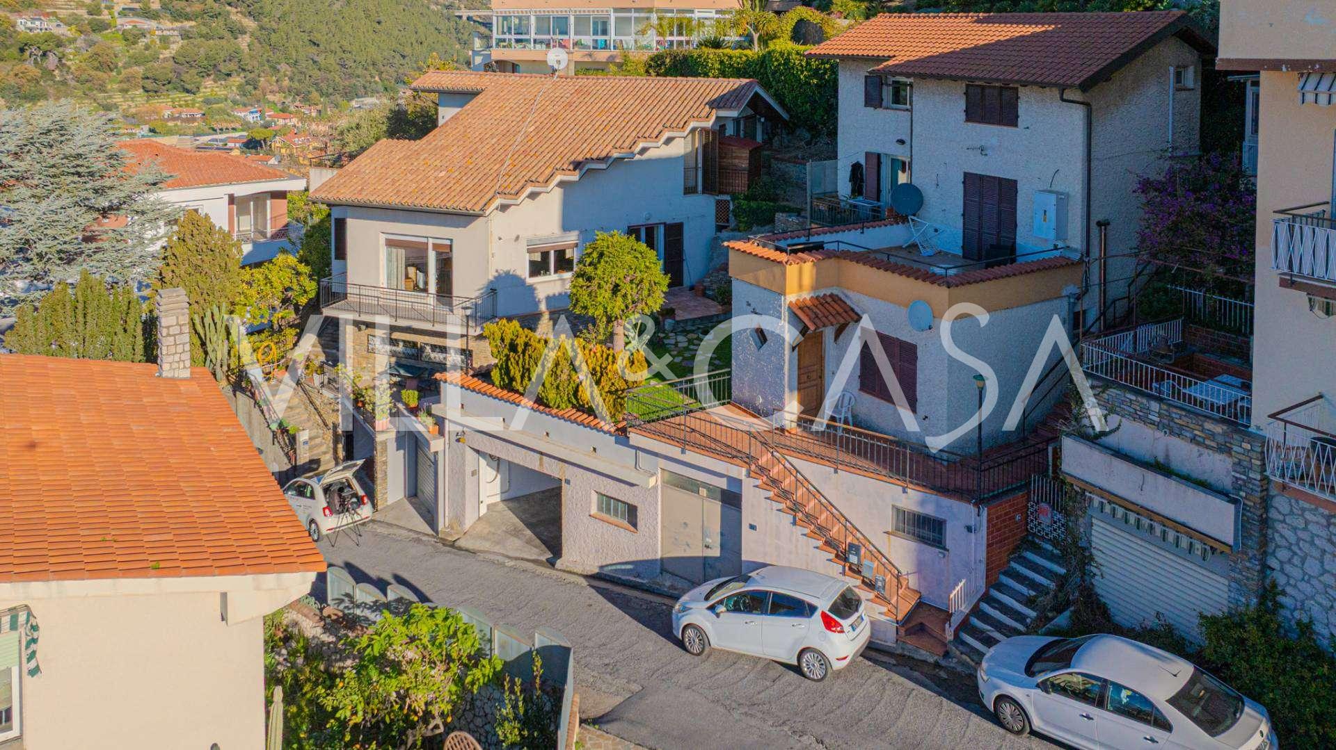 In Vallecrosia, in a sunny area just a 15-minute walk from the sea, a spacious villa with a total area of approximately 251 m² is for sale. The house has three floors and consists of two independent parts, which are currently combined into one living space.