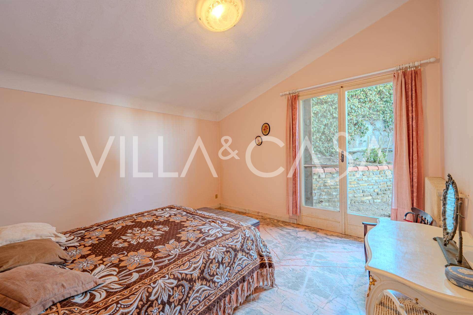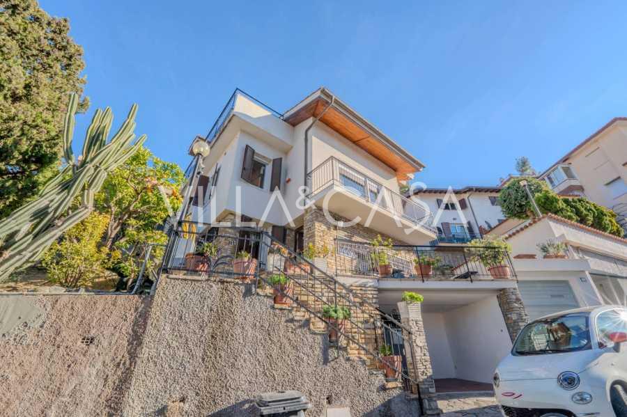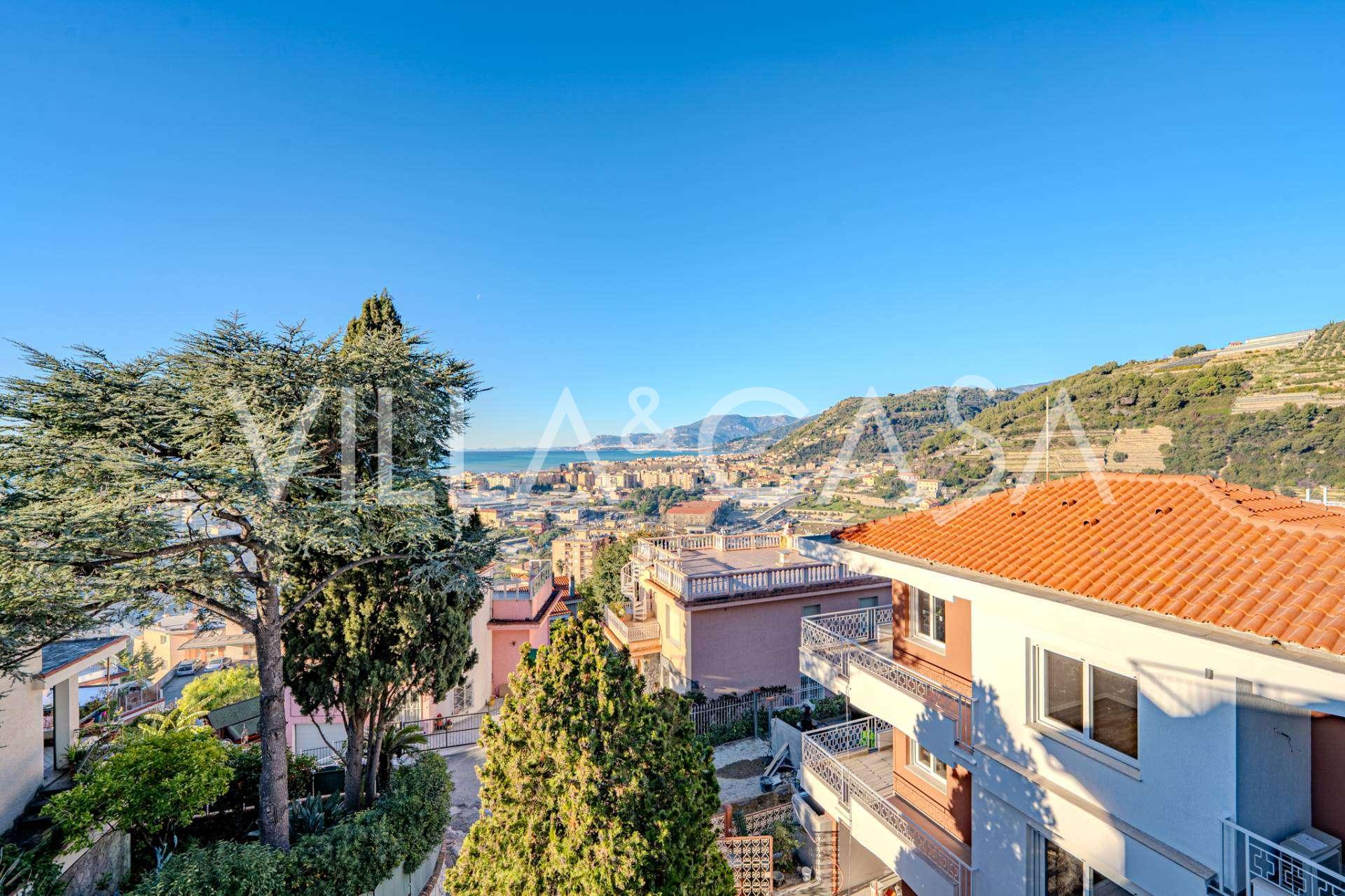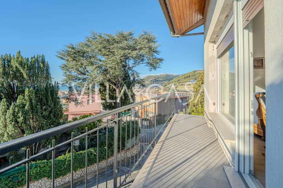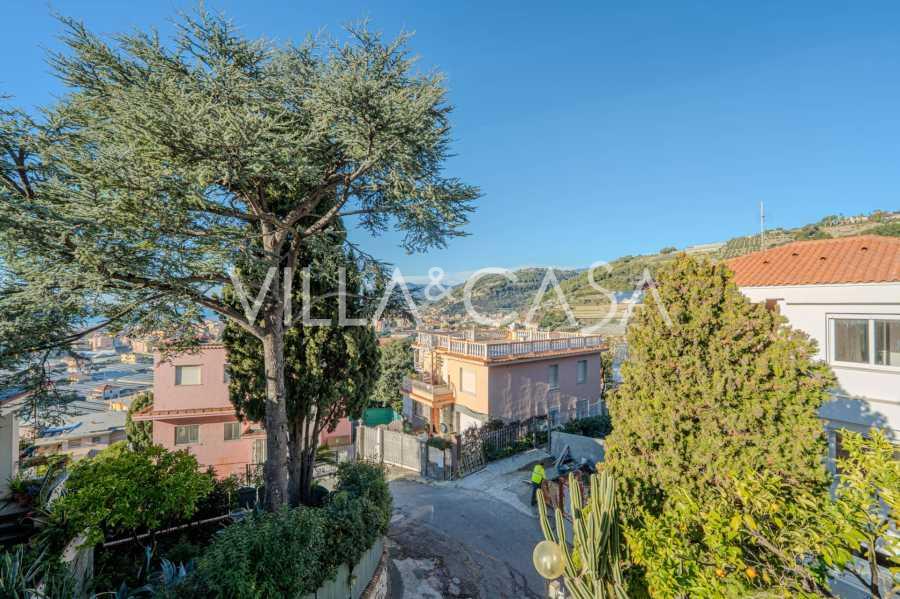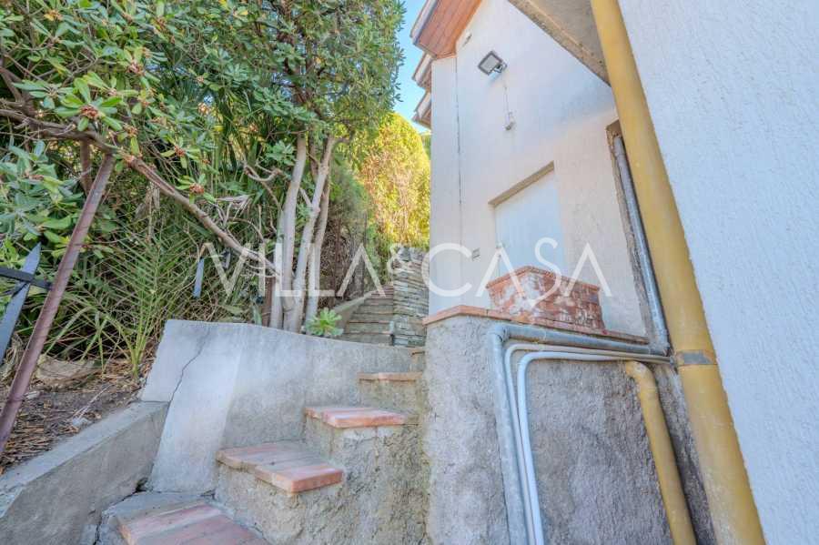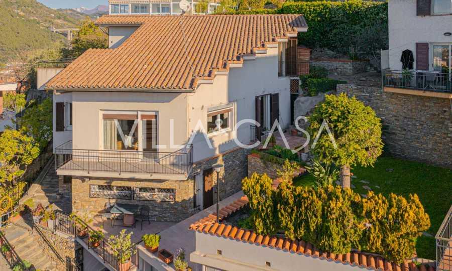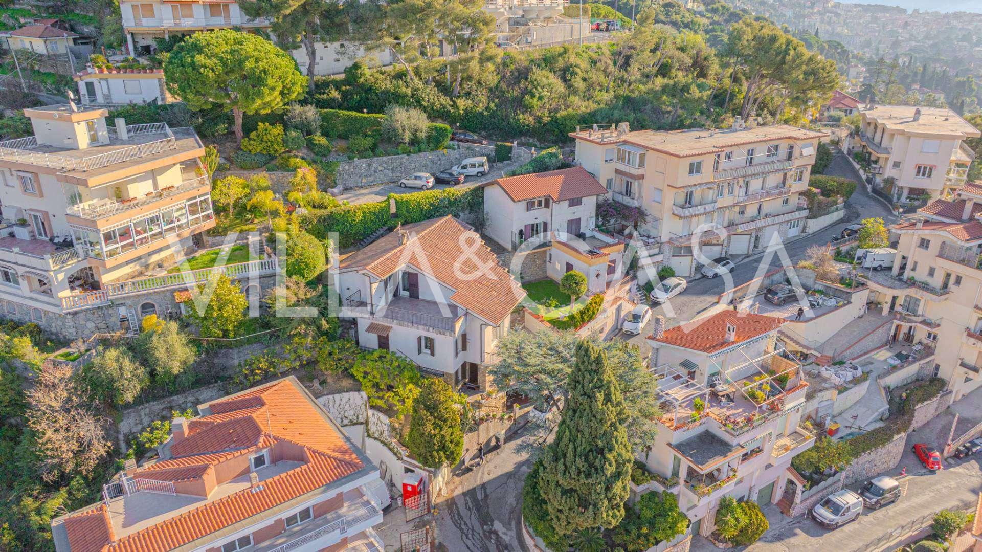 In Vallecrosia, in a sunny area just a 15-minute walk from the sea, a spacious villa with a total area of approximately 251 m² is for sale. The house has three floors and consists of two independent parts, which are currently combined into one living space.