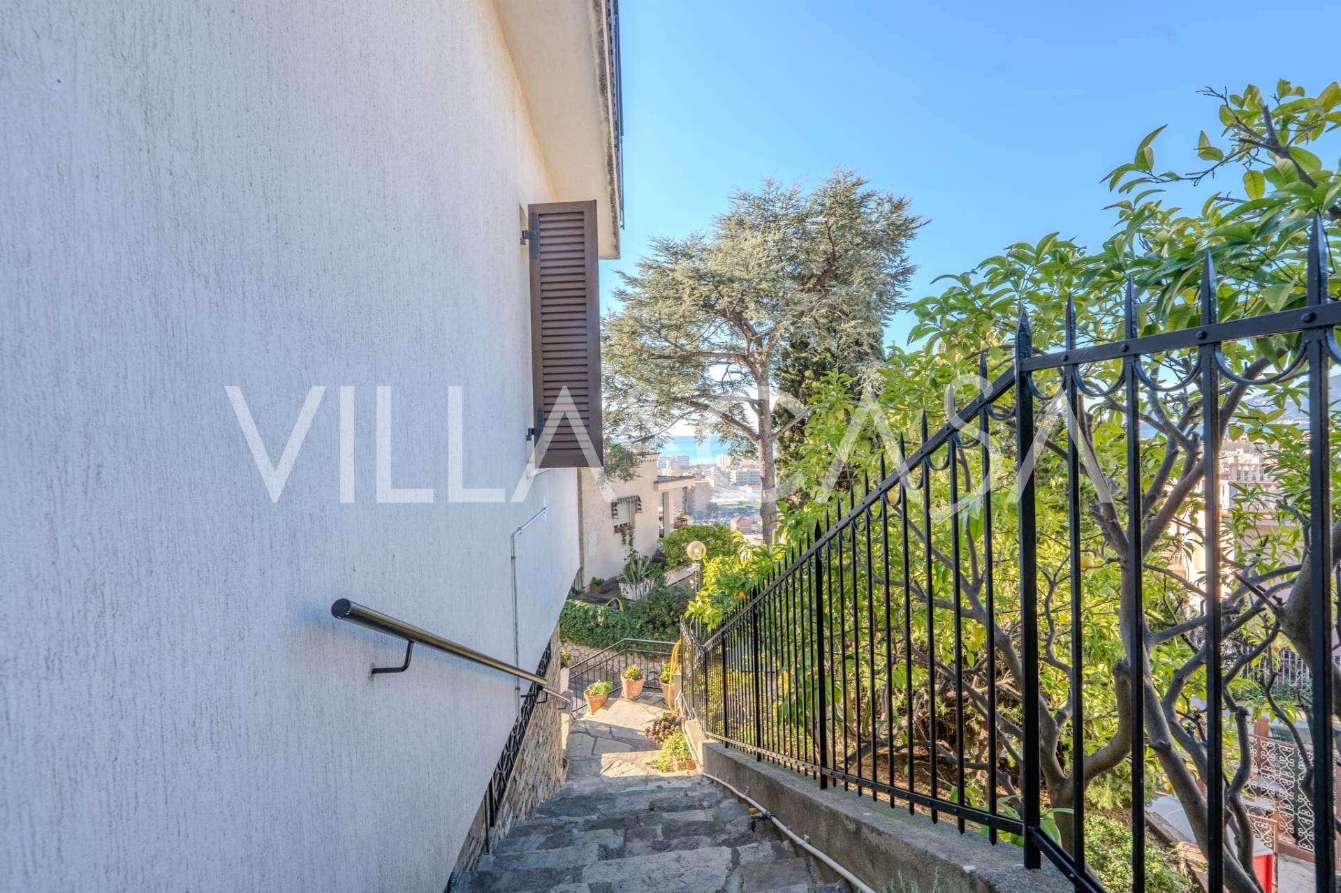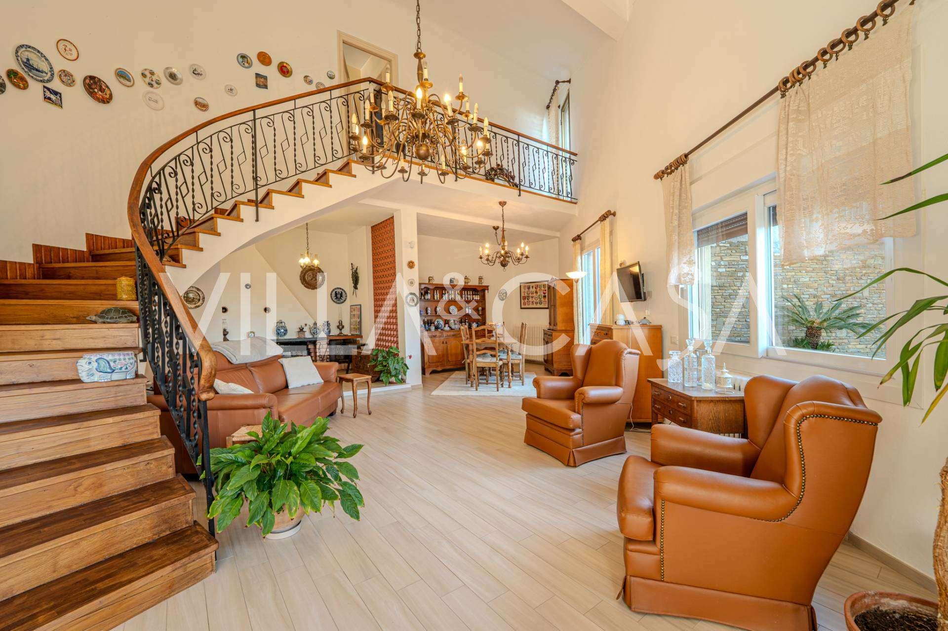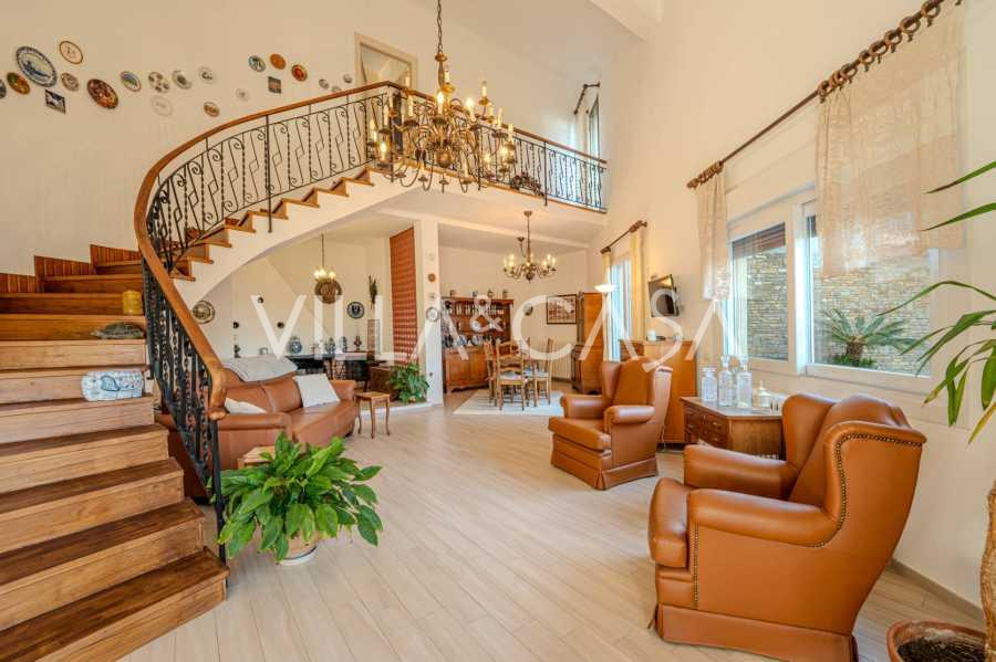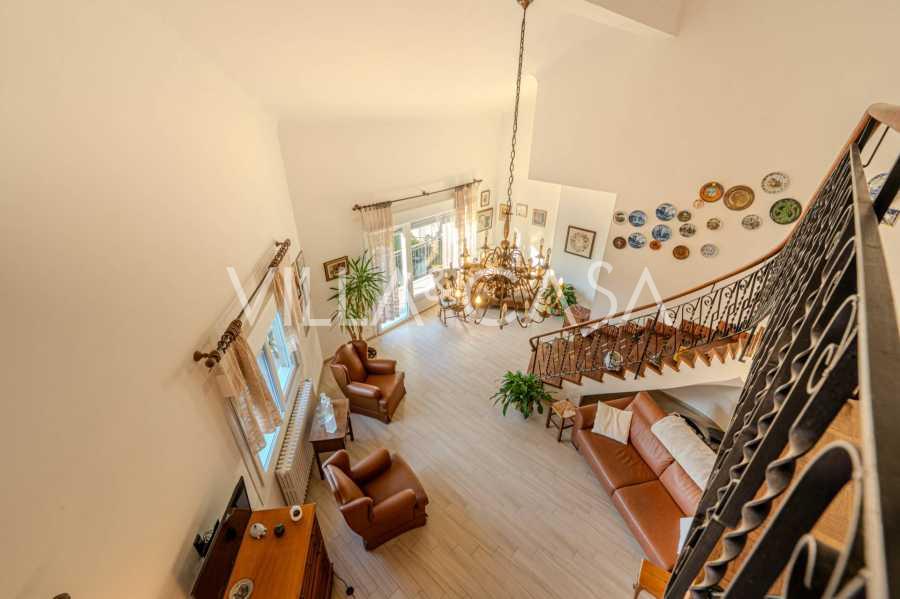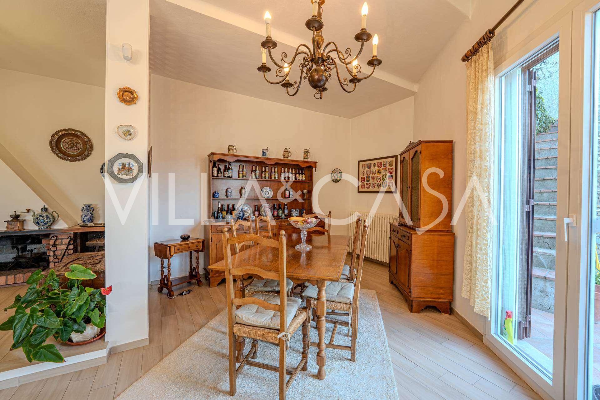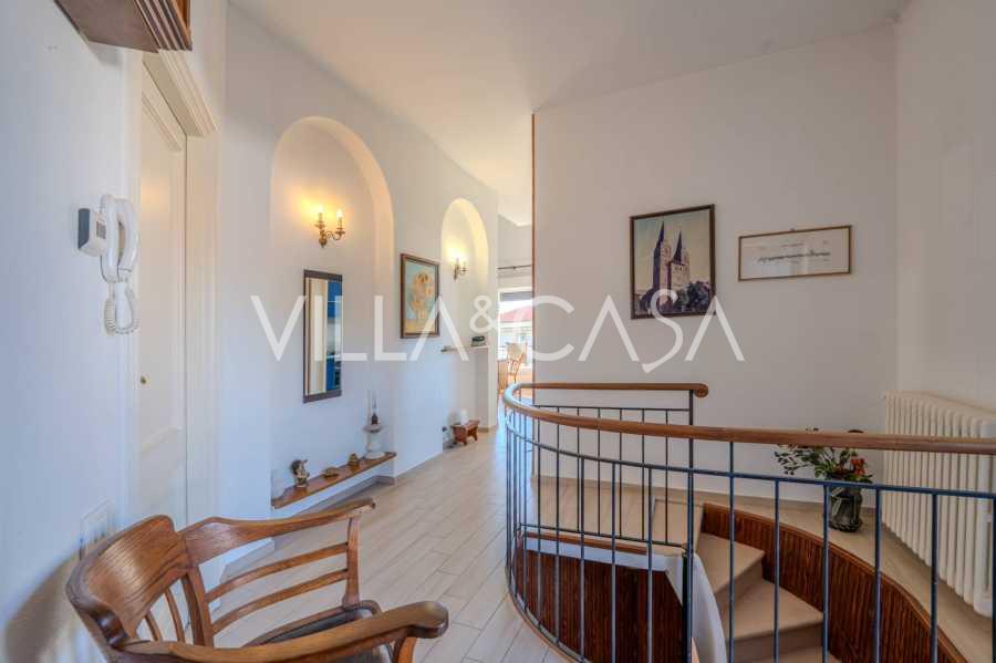 In Vallecrosia, in a sunny area just a 15-minute walk from the sea, a spacious villa with a total area of approximately 251 m² is for sale. The house has three floors and consists of two independent parts, which are currently combined into one living space.