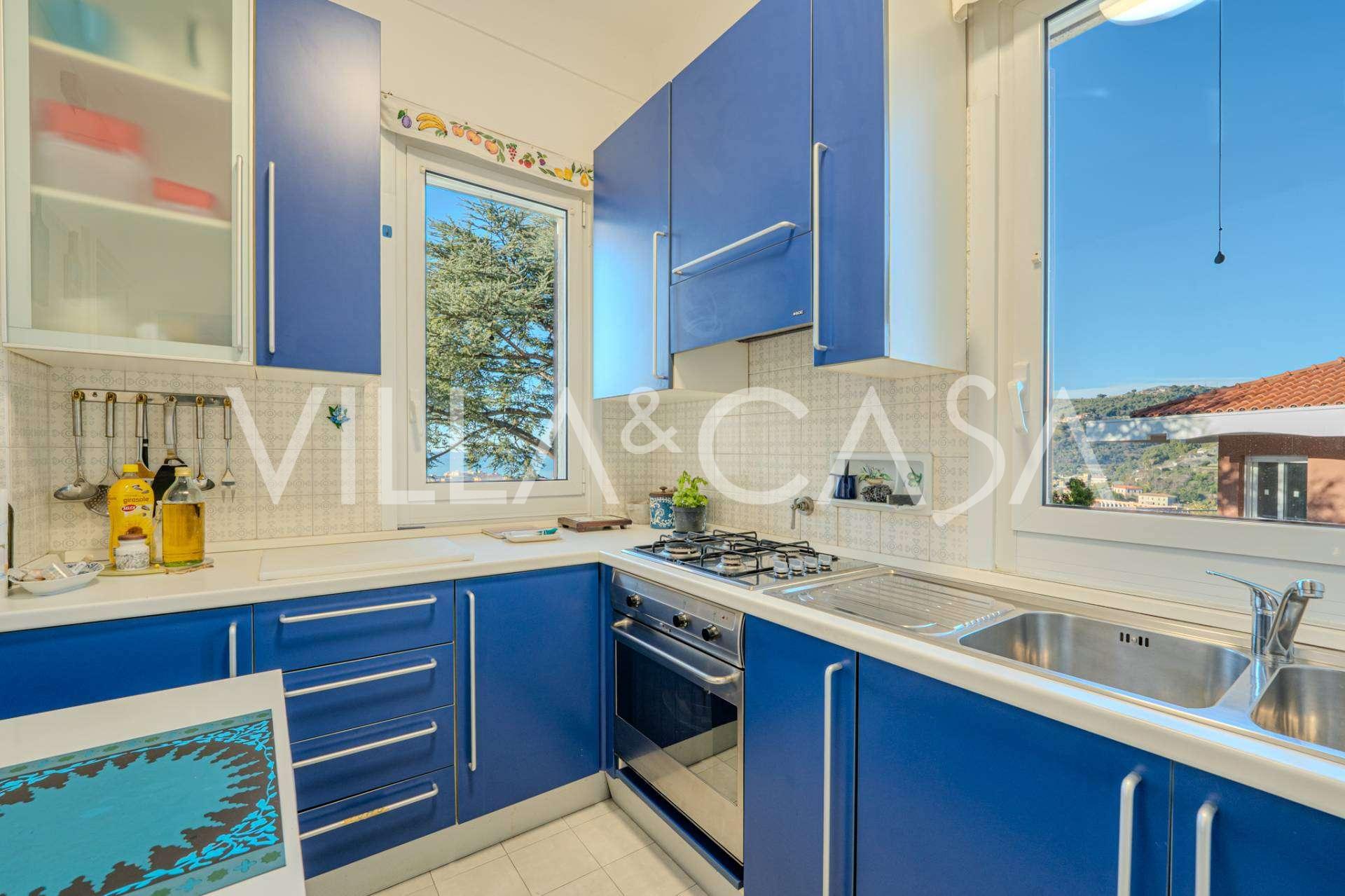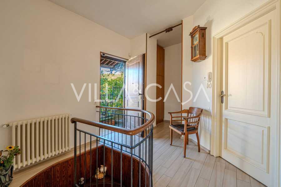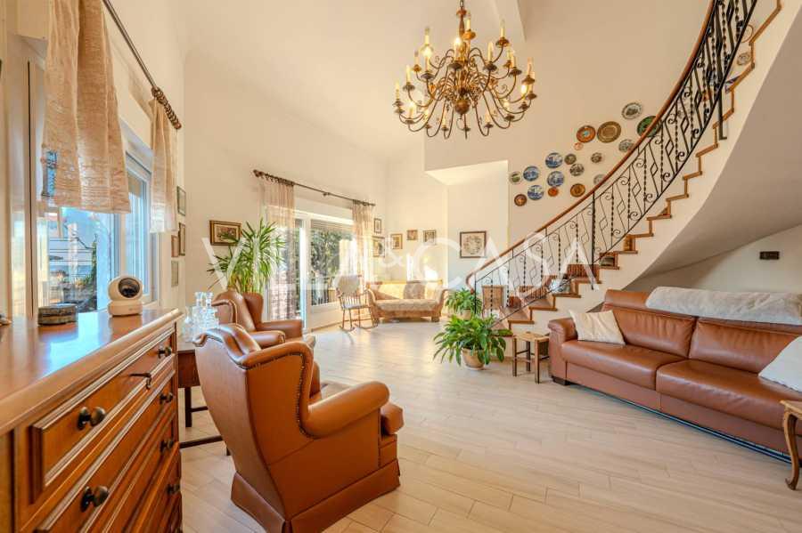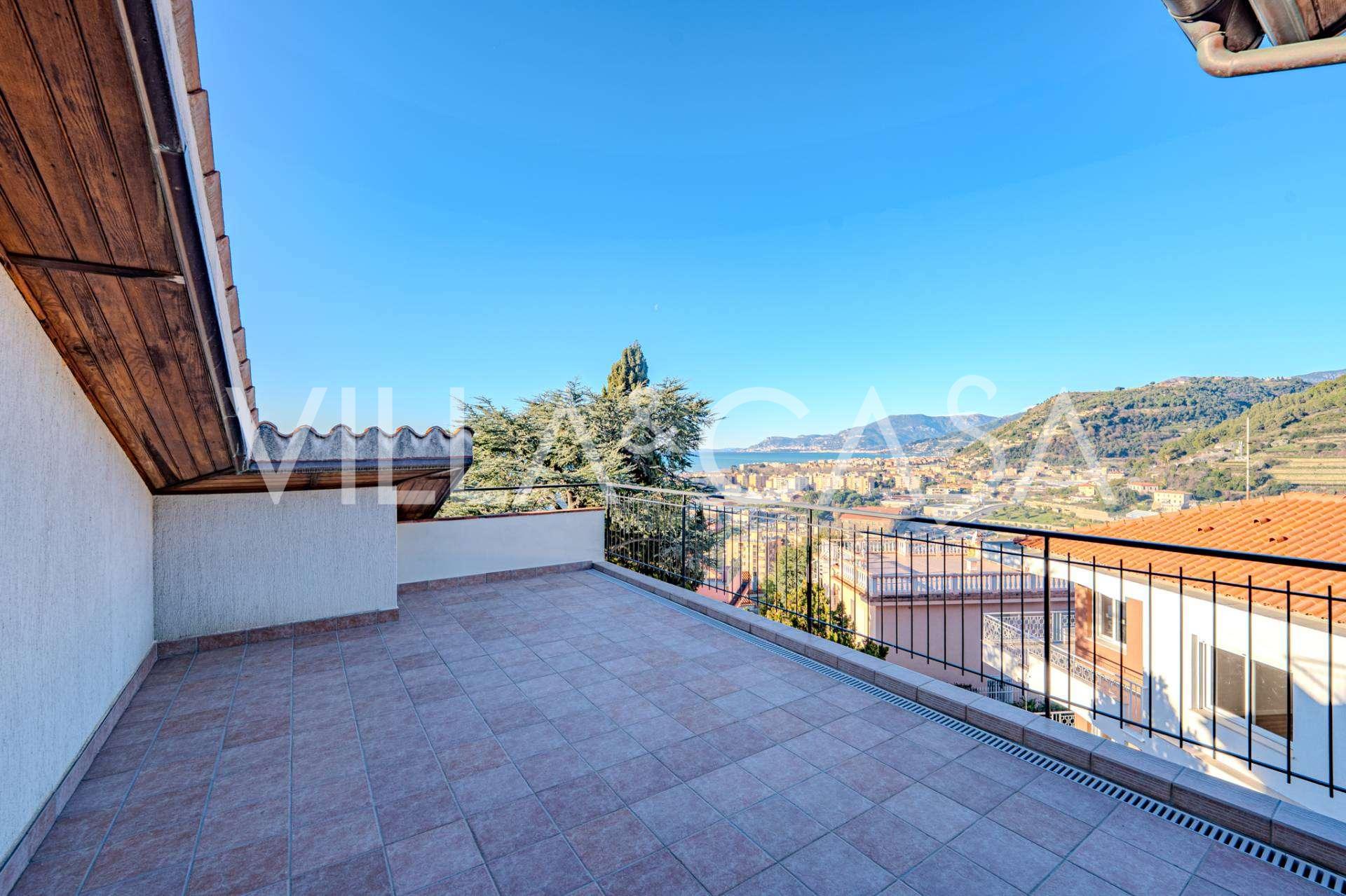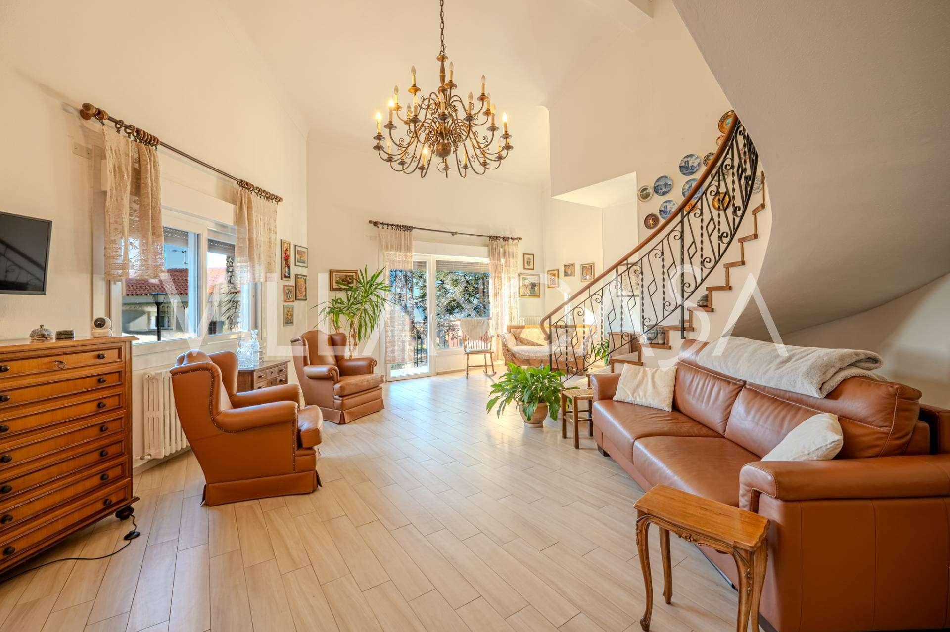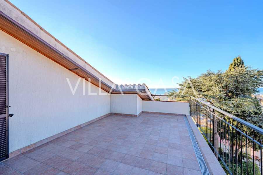 In Vallecrosia, in a sunny area just a 15-minute walk from the sea, a spacious villa with a total area of approximately 251 m² is for sale. The house has three floors and consists of two independent parts, which are currently combined into one living space.