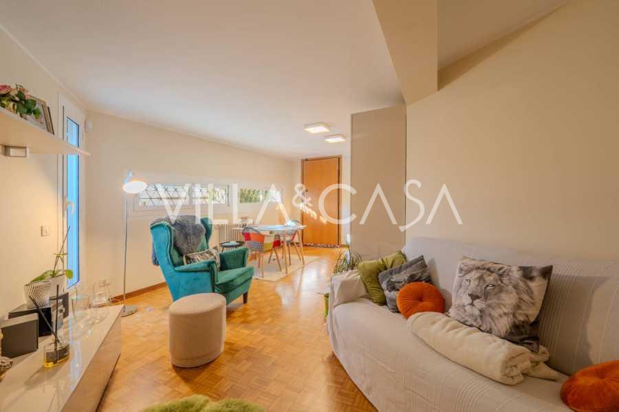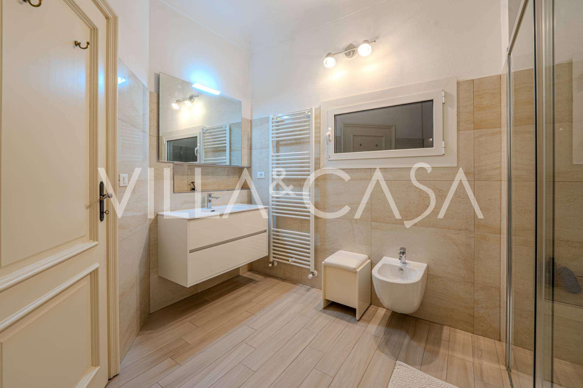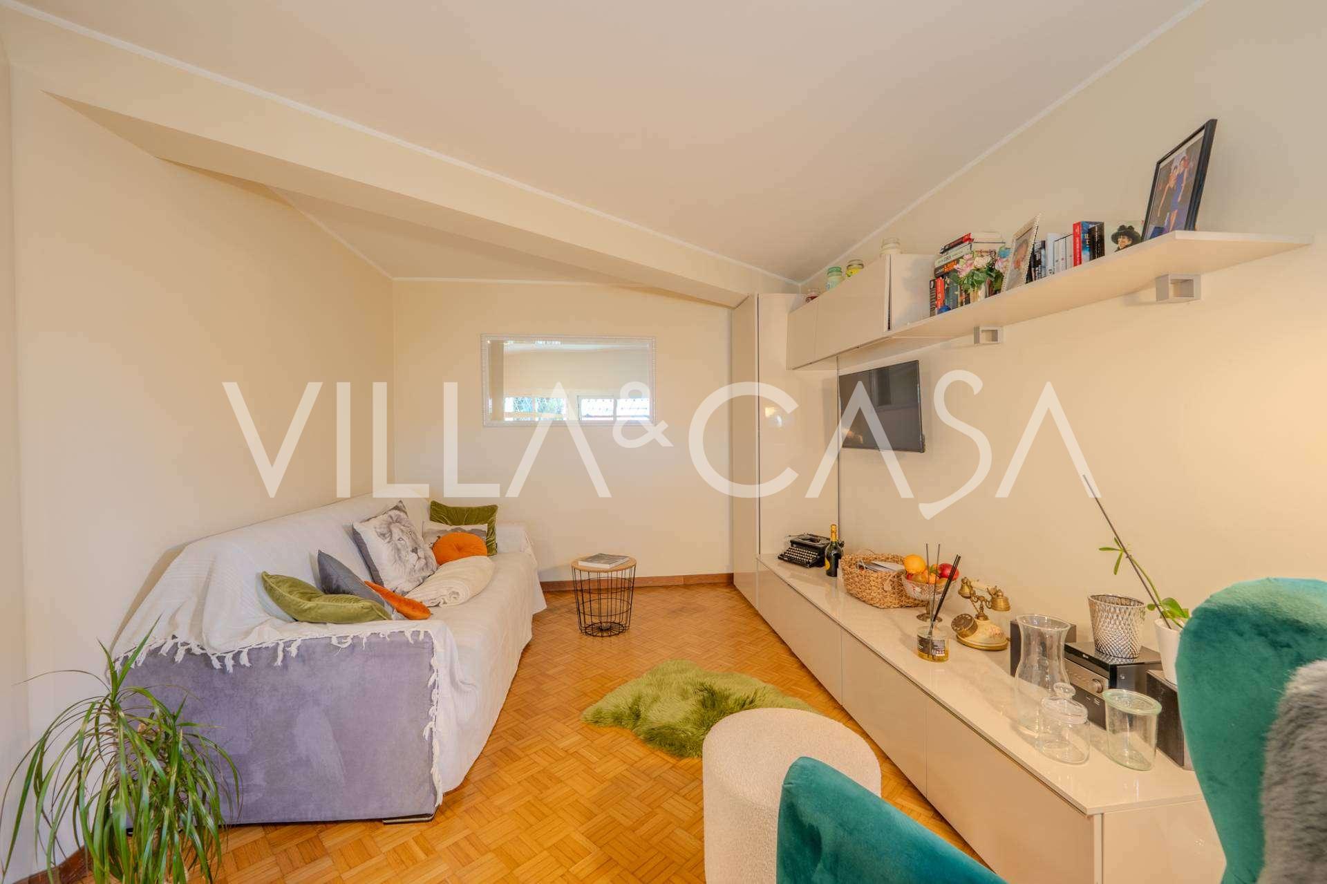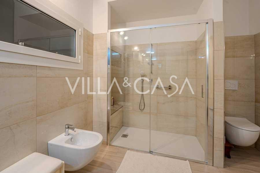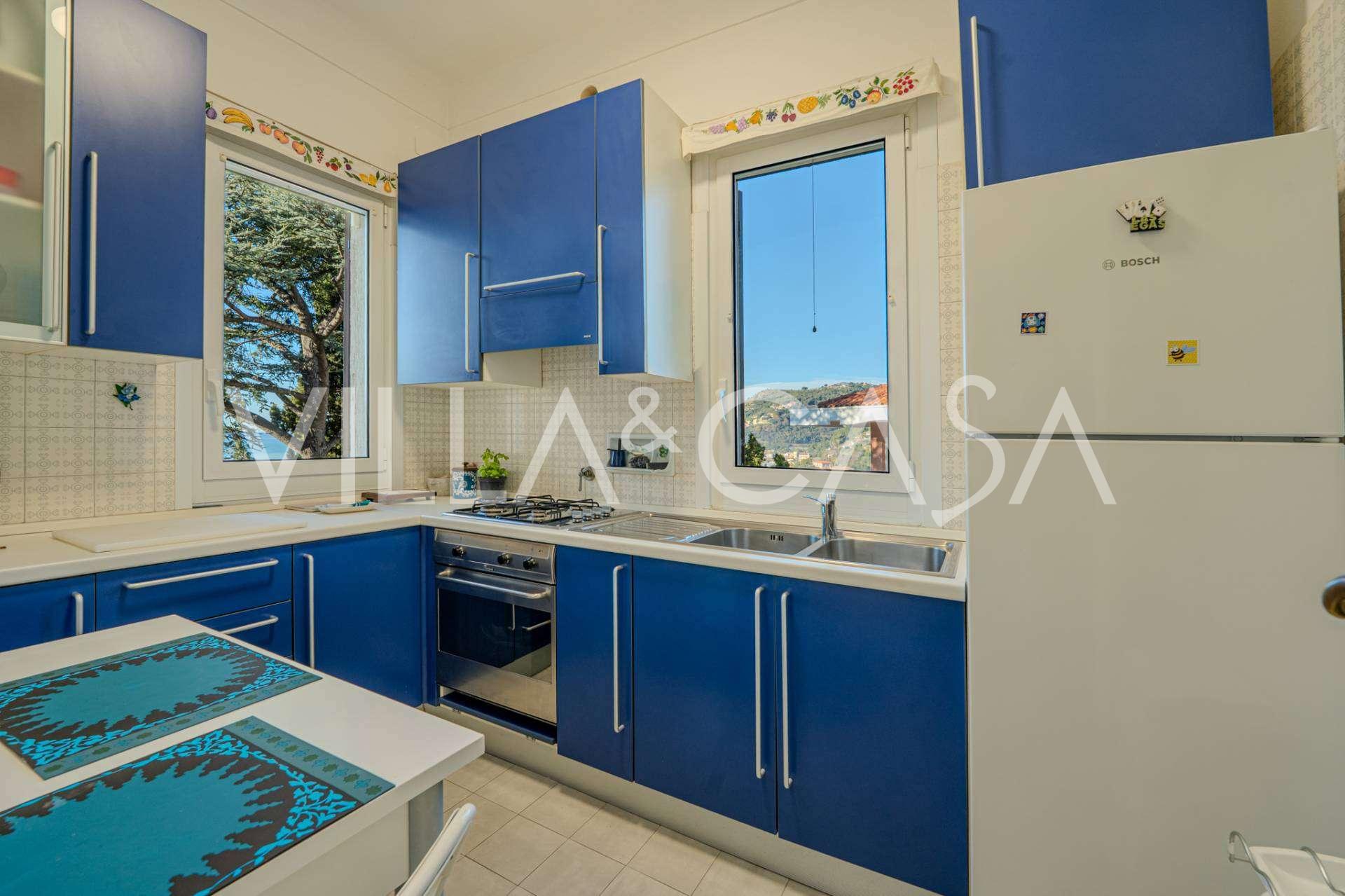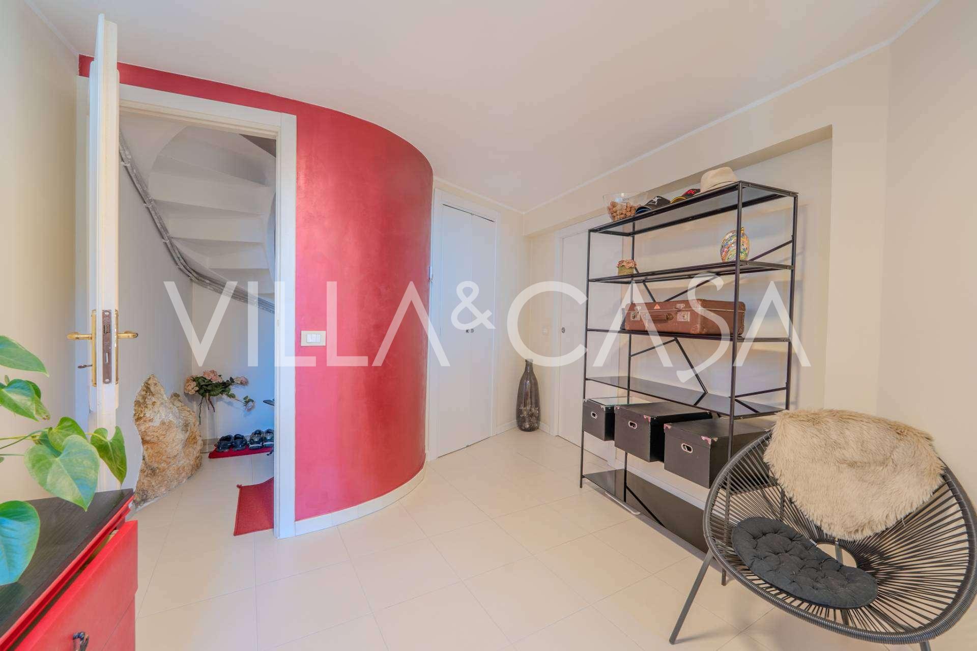 In Vallecrosia, in a sunny area just a 15-minute walk from the sea, a spacious villa with a total area of approximately 251 m² is for sale. The house has three floors and consists of two independent parts, which are currently combined into one living space.
