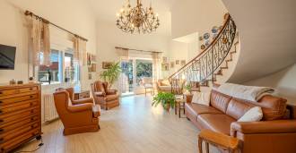 The price includes a garage. The garden is approximately 300 m². Next to the house, there is a small building with a total area of about 30 m², priced at 65,000 euros, which can be used as a rental unit. The villa is in excellent condition, with autonomous heating. Additionally, a garage with an area of 60 m² can be purchased separately for 120,000 euros.